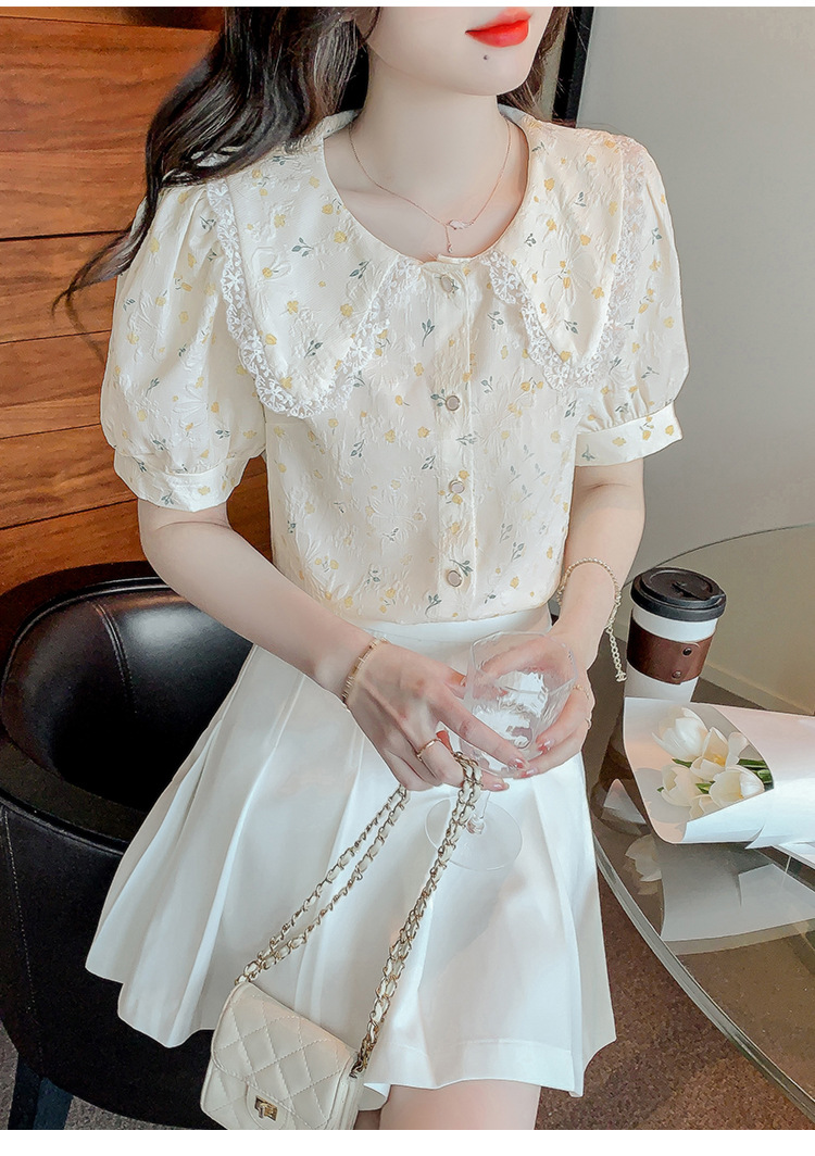 봄과 여름 꽃 거품 반팔 셔츠 디자인 센스 프랑스 달콤한 외국 스타일 인형 칼라 탑 여성용 셔츠