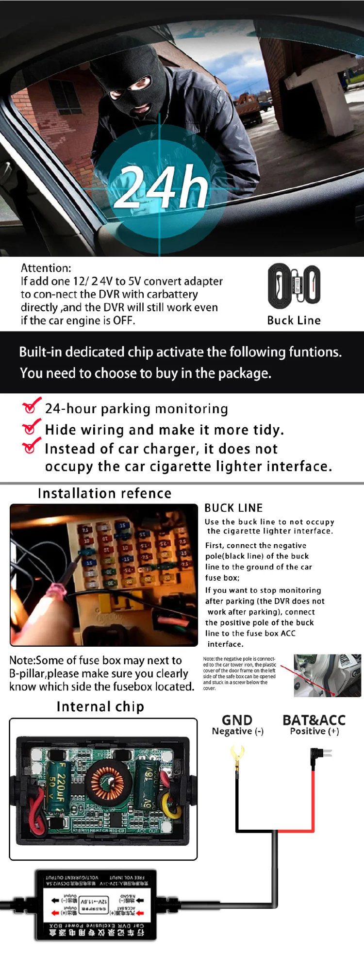 • 2.5D 스크린 + 4.5 스토리지(듀얼 녹화) + 스텝다운 케이블 + 차량용 충전기(주차 모니터링)
