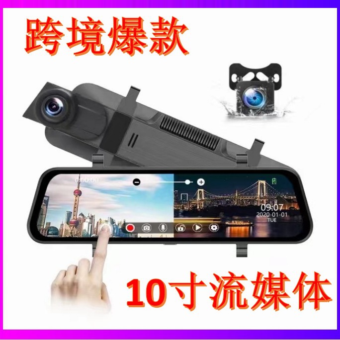 V10 9.66 인치 자동차 스트리밍 미디어 운전 레코더 HD 전체 화면 음성 제어 듀얼 카메라 국경스토어 가기