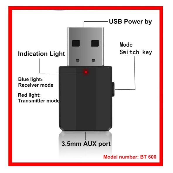 BT600 블루투스 usb 수신기 자동차 오디오 수신기 어댑터 5.0 블루투스 송신기는 두 가지를 하나로 받아들인다
