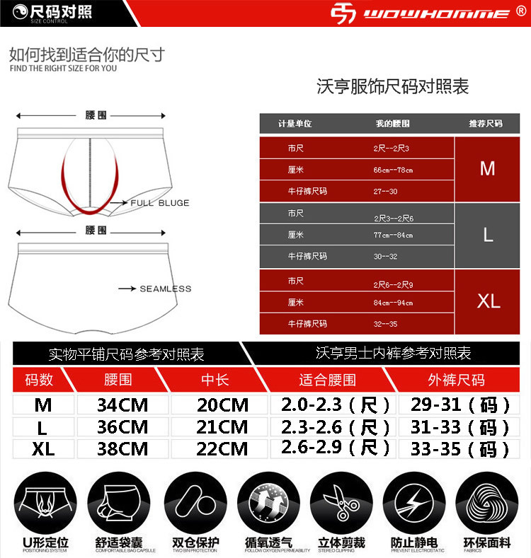 内裤有很好的贴身感, 穿久也不会松垮变型,特别设计加宽的裤脚贴护大腿根部,舒适并显大气,合适的松紧程度不会有松垮和紧勒感。