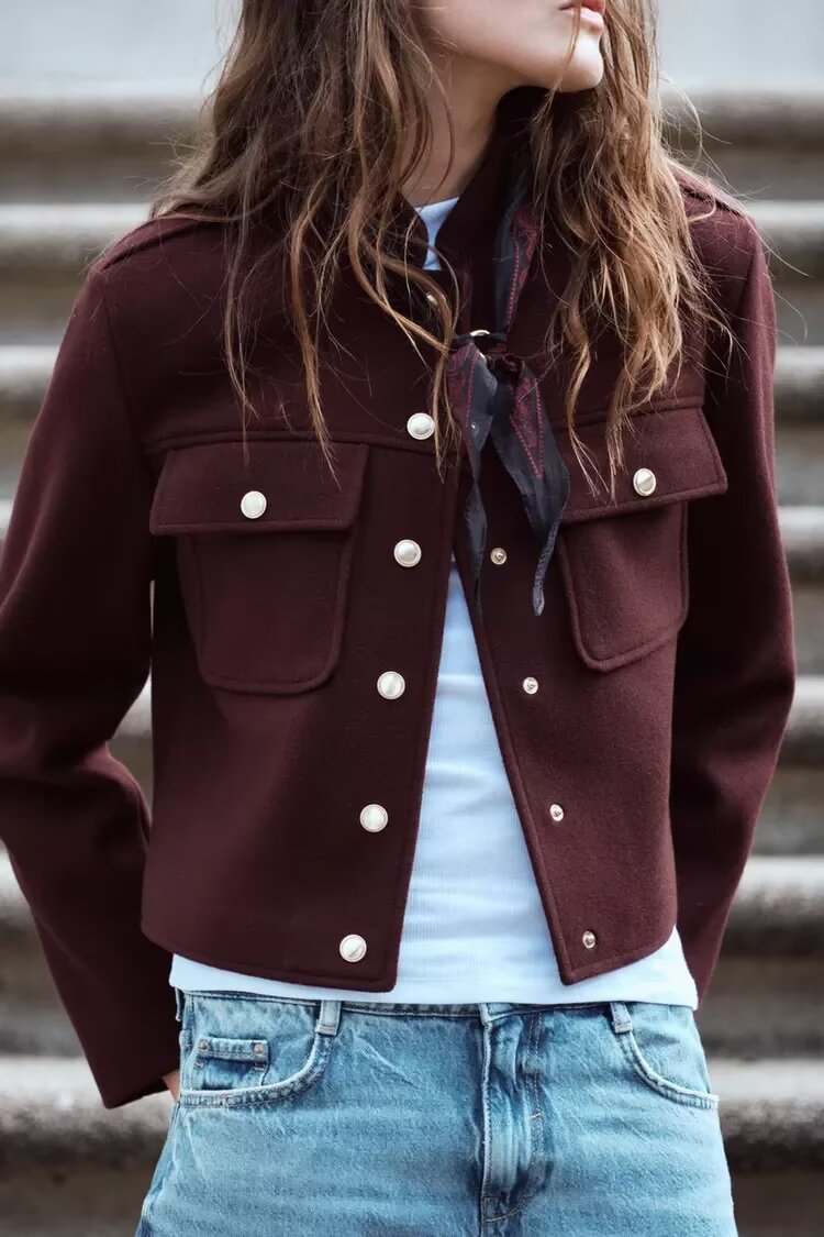 국경 2025 가을과 겨울 여성 의류 유럽과 미국의 새로운 패션 싱글 브레스트 칼라 포켓 재킷 코트 D56118
