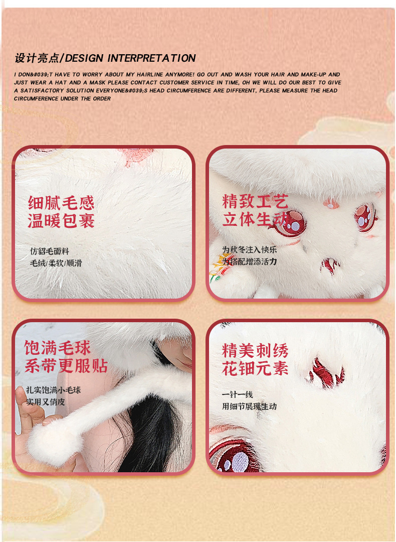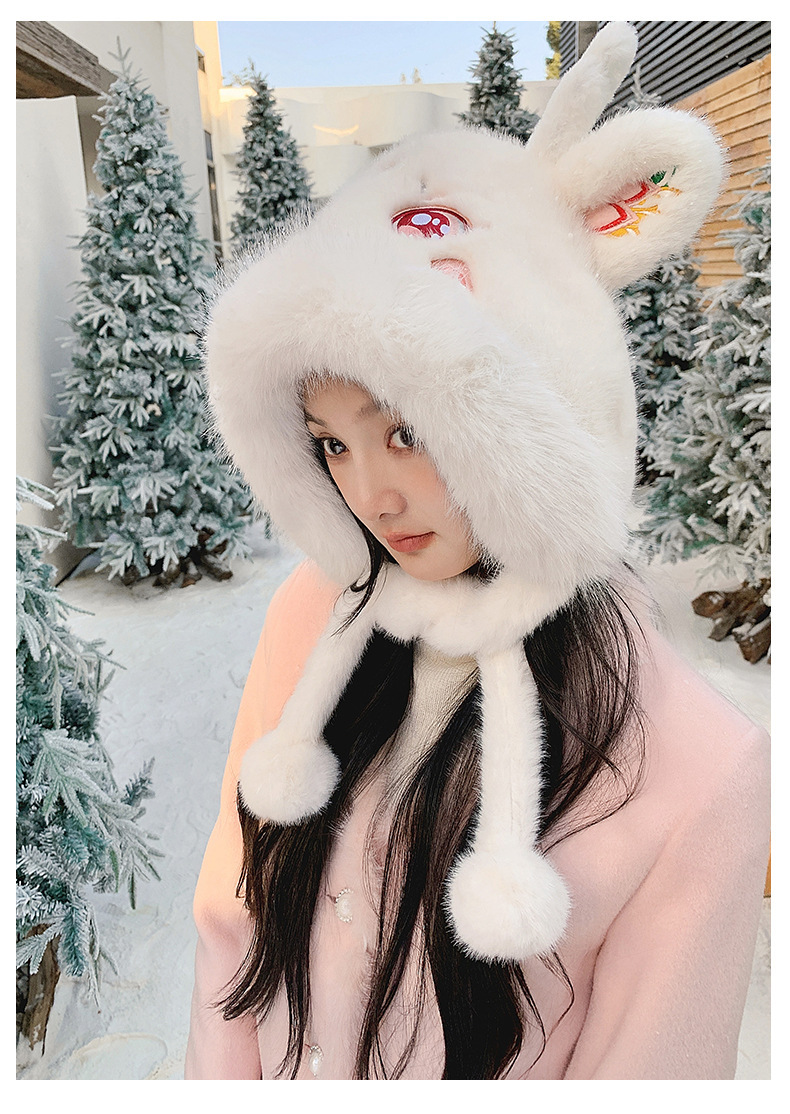• [창롱 화이트] 귀 보호 모자 밍크 플러시 천