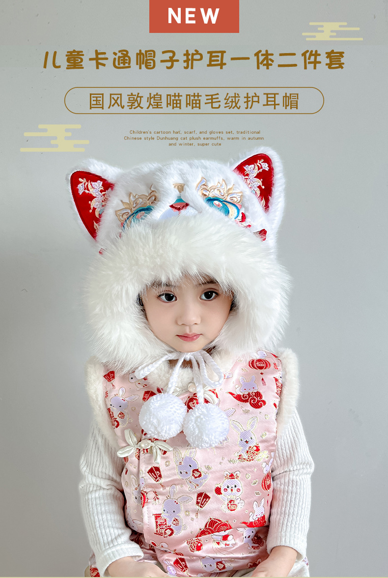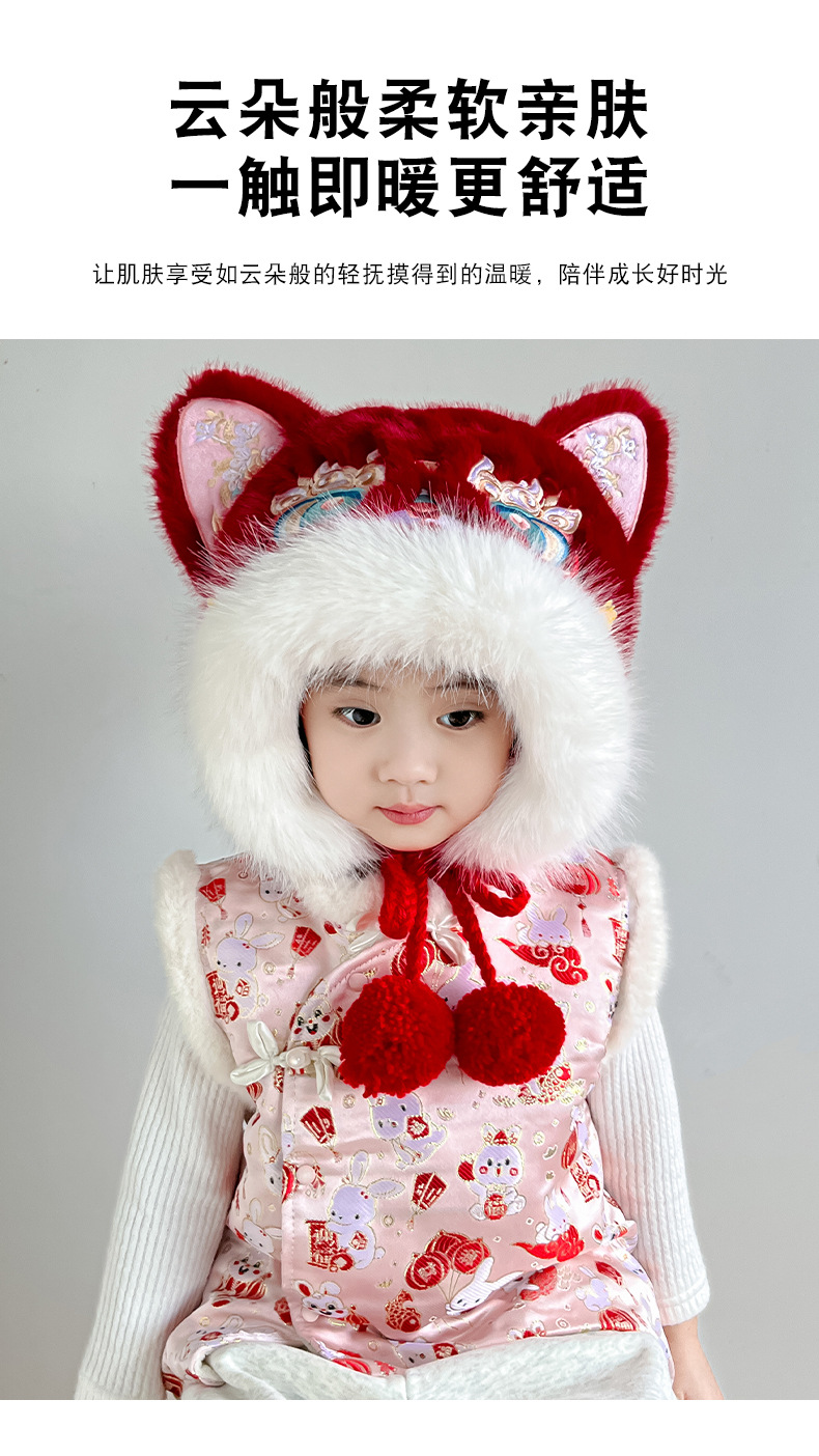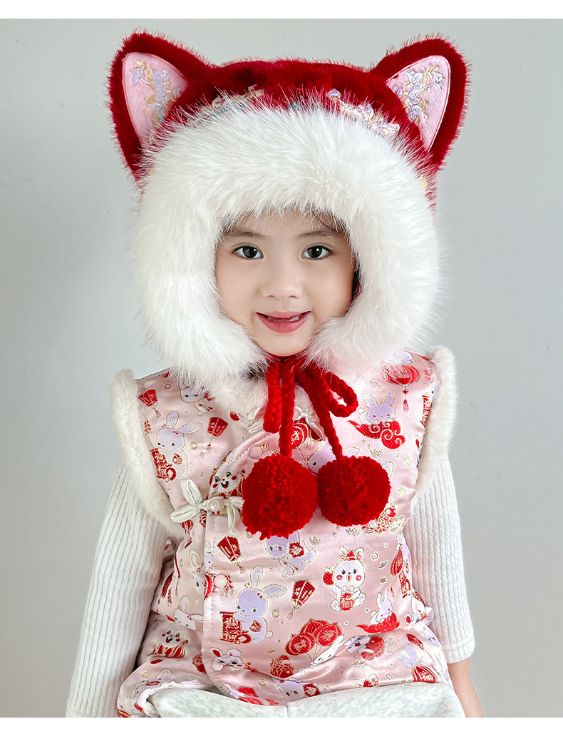 • 국가 트렌드 시리즈 [태슬 레드 사자춤] 밍크 플러시 귀 보호 모자