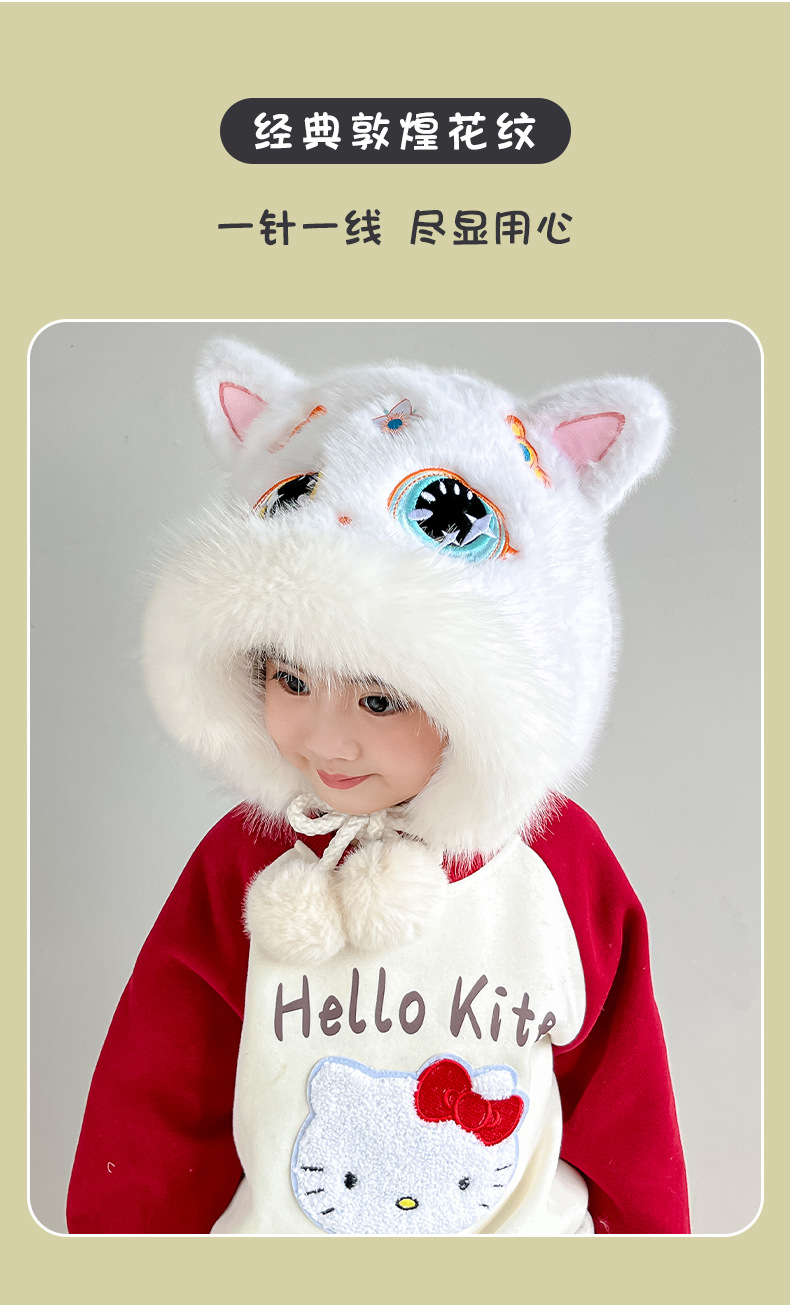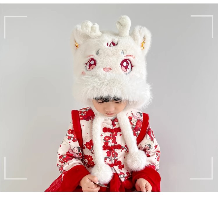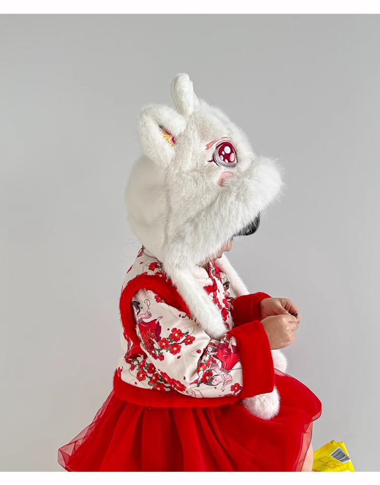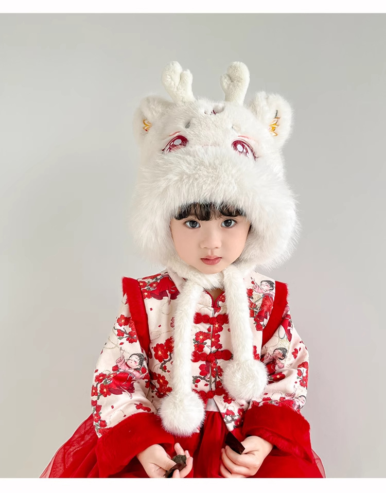 • 국가 트렌드 시리즈 [태슬 화이트 사자춤] 밍크 플러시 귀 보호 모자