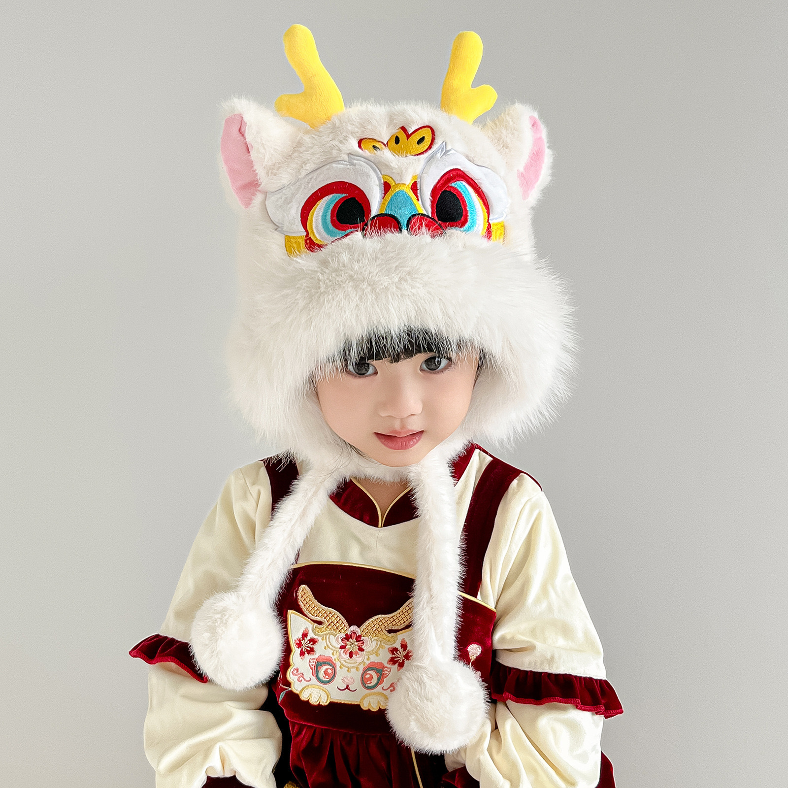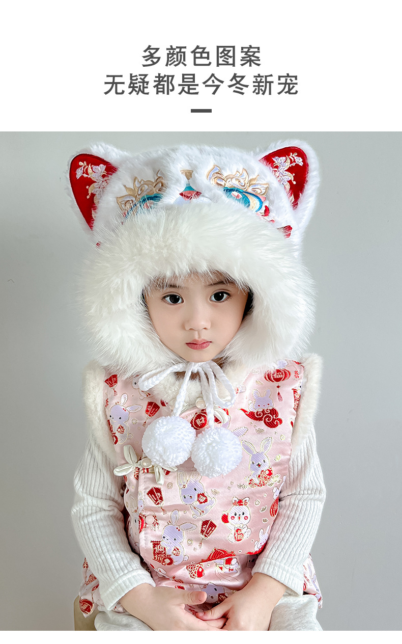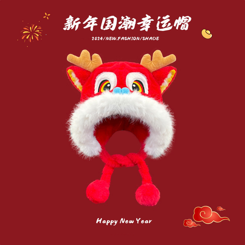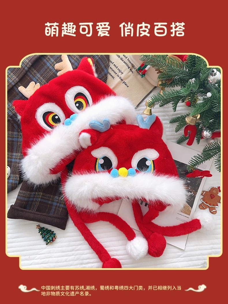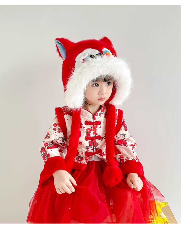 전국 조수 바람 Longjiao 어린이 아기 모자 새해 귀여운 새해 축제 붉은 봉제 사자 춤 모자 가을과 겨울스토어 가기