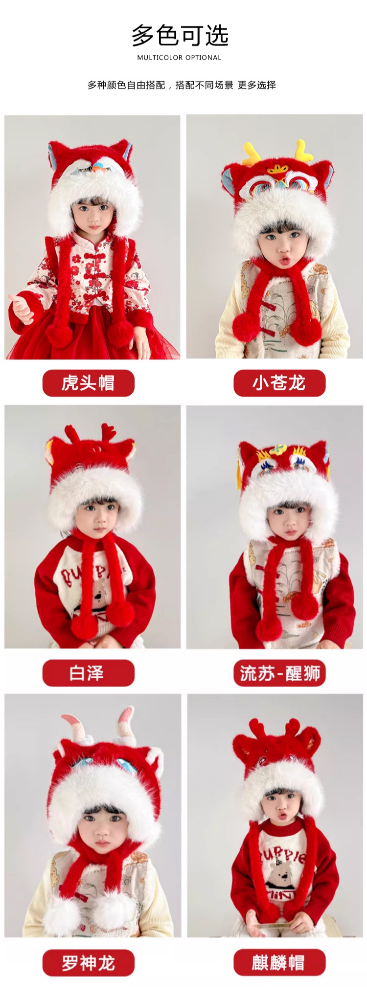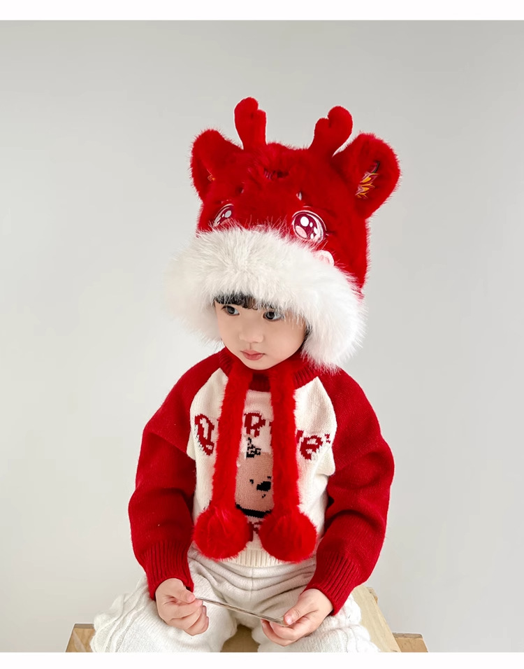 전국 조수 바람 Longjiao 어린이 아기 모자 새해 귀여운 새해 축제 붉은 봉제 사자 춤 모자 가을과 겨울