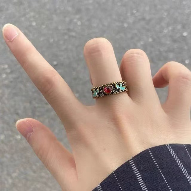 사랑의 새 모양 오픈형 구리 반지, 레트로 스타일, 다용도, 럭셔리, 고급스러운 느낌의 반지, 검지 반지, 커플용 남녀 공용스토어 가기