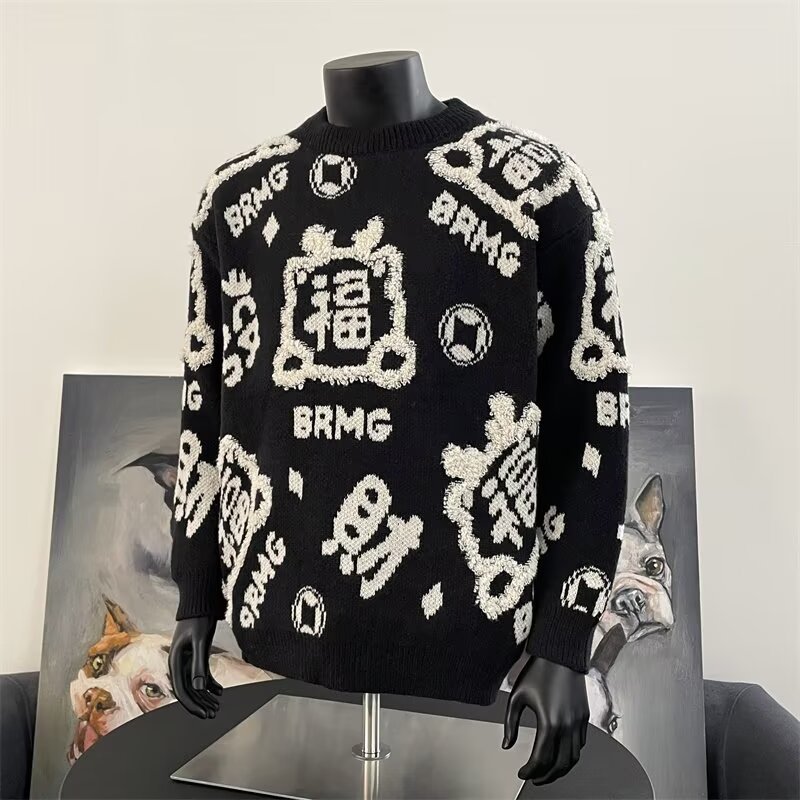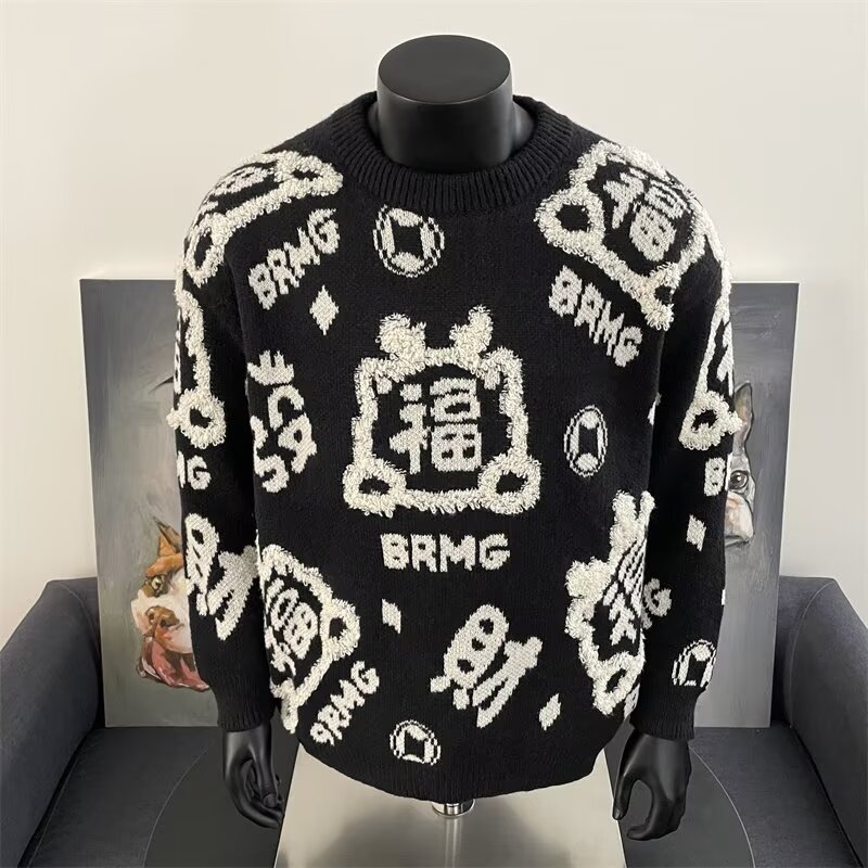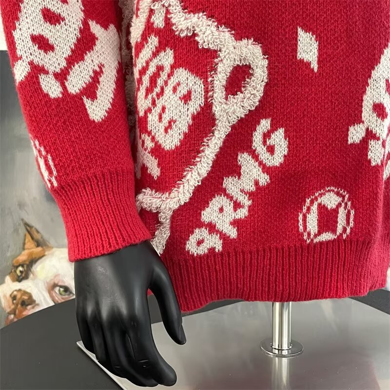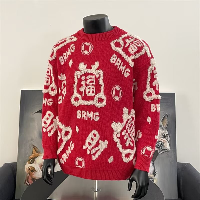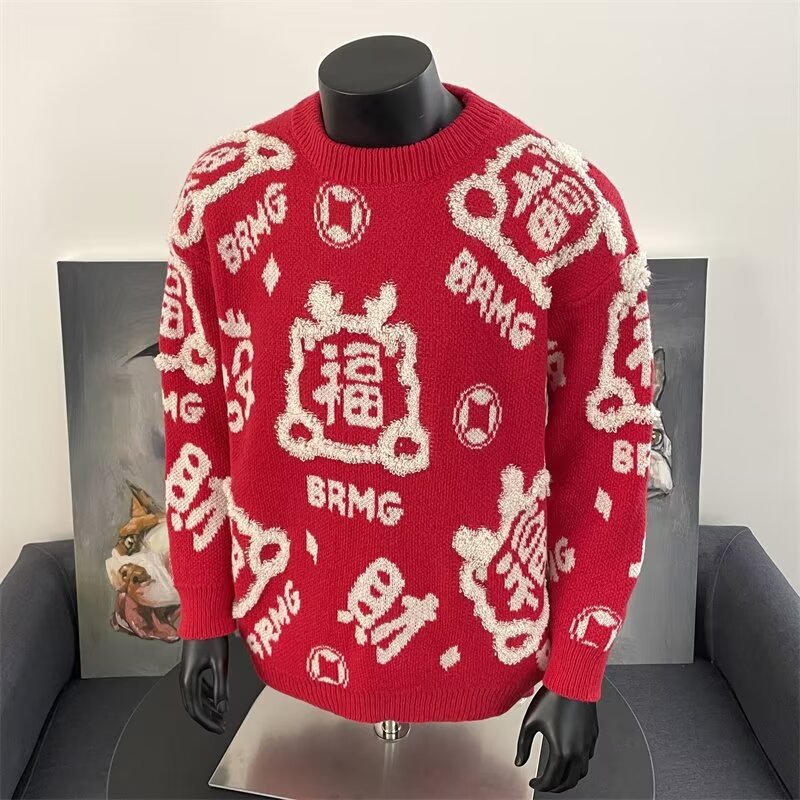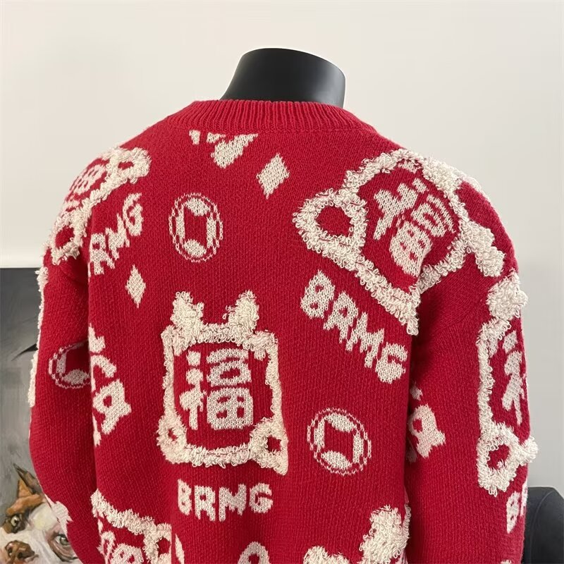 2025 년 새 붉은 해 남성과 여성을위한 니트 스웨터 봄과 가을의 틈새 내부 짠 스웨터 커플스토어 가기