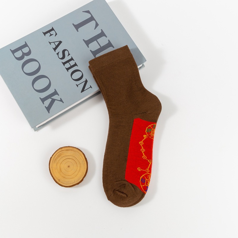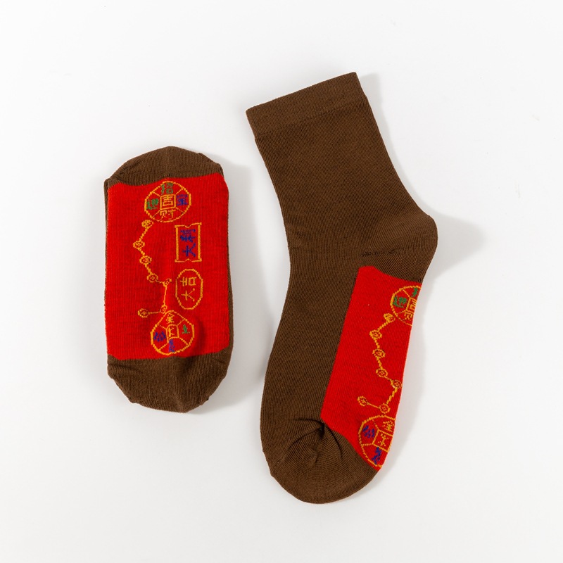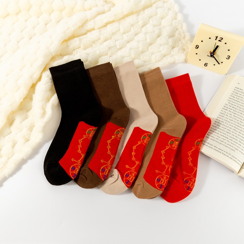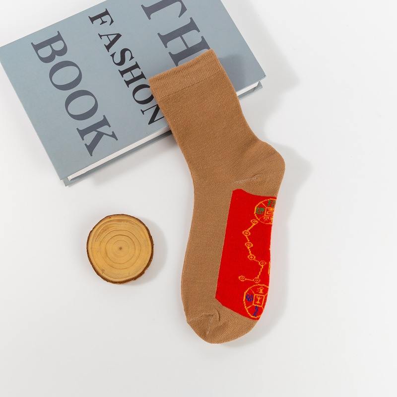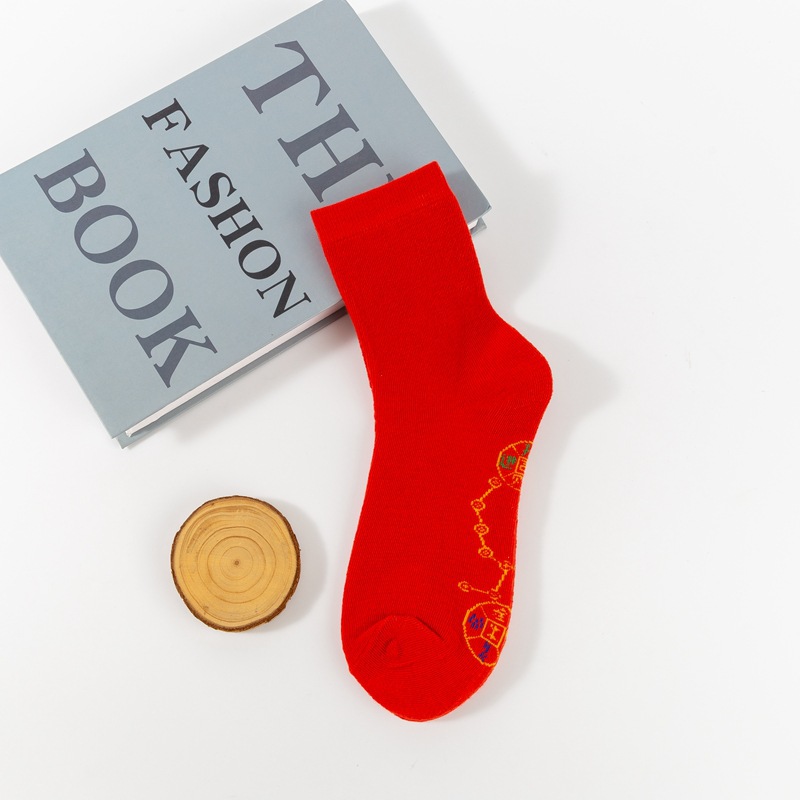 스네이크 남자와 여자의 2025 발 구리 동전 결혼식 남자 새해 양말 일곱 스타 빨간 양말 순면 년스토어 가기