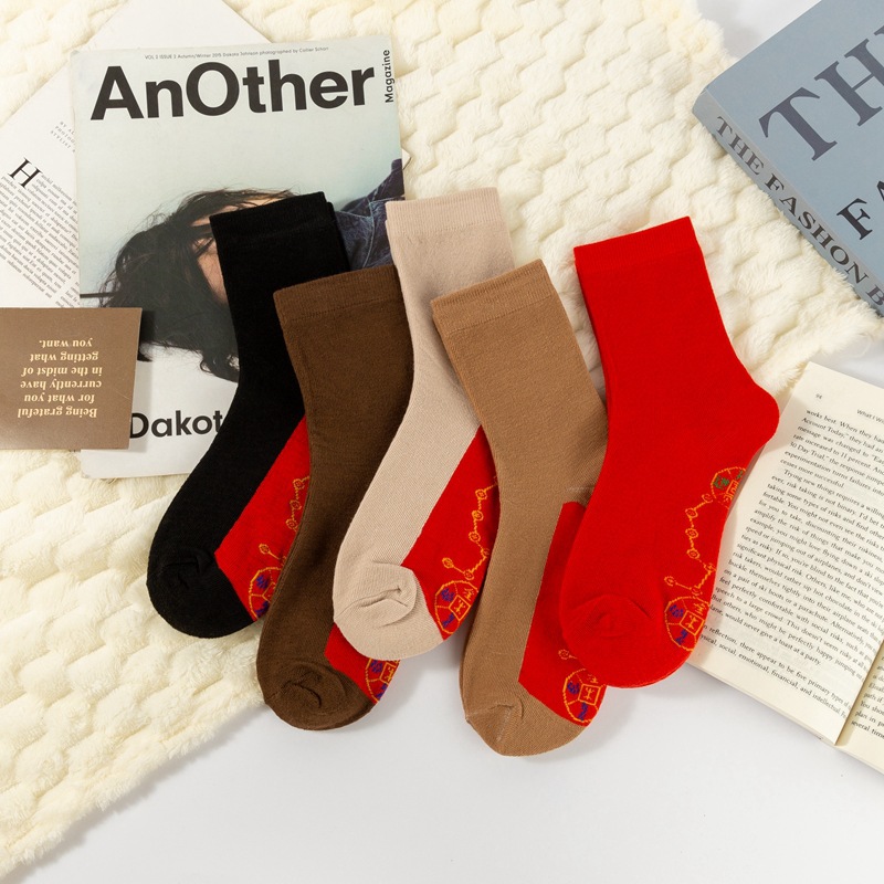 스네이크 남자와 여자의 2025 발 구리 동전 결혼식 남자 새해 양말 일곱 스타 빨간 양말 순면 년