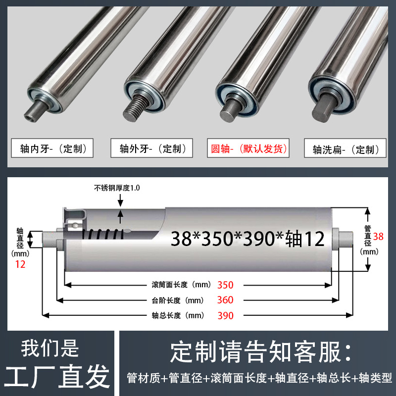 • Φ38-350-390*샤프트 Φ12 롤링 스테인레스 스틸 + 샤프트 철