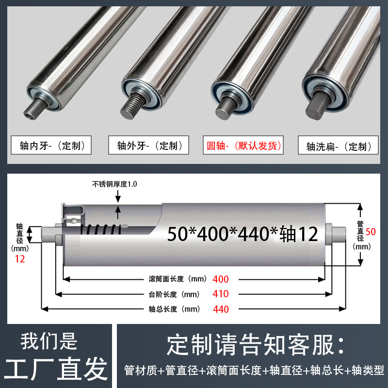 • Φ50-400-440*샤프트 Φ12 롤링 스테인레스 스틸 + 샤프트 철