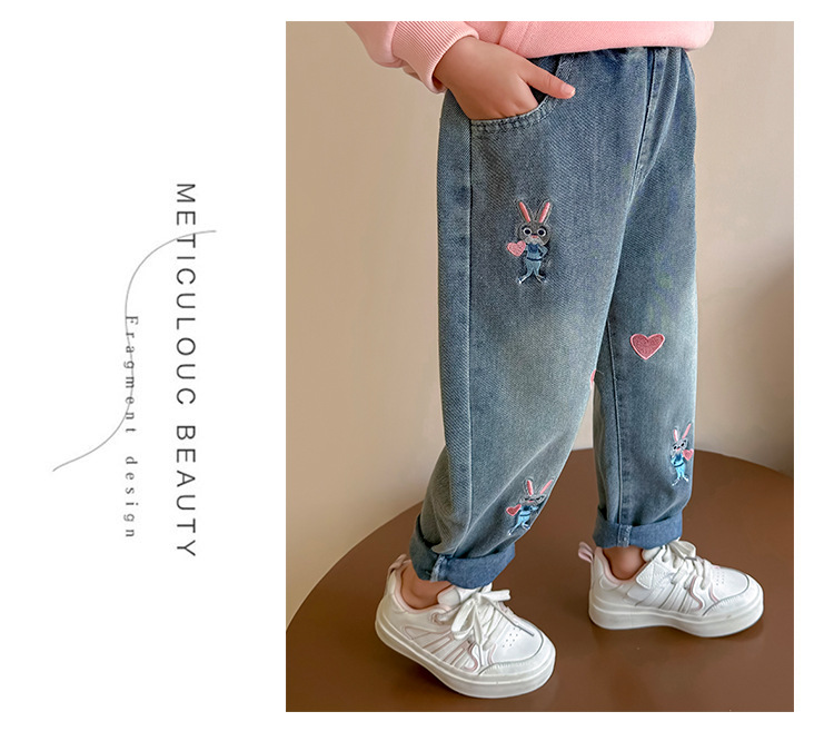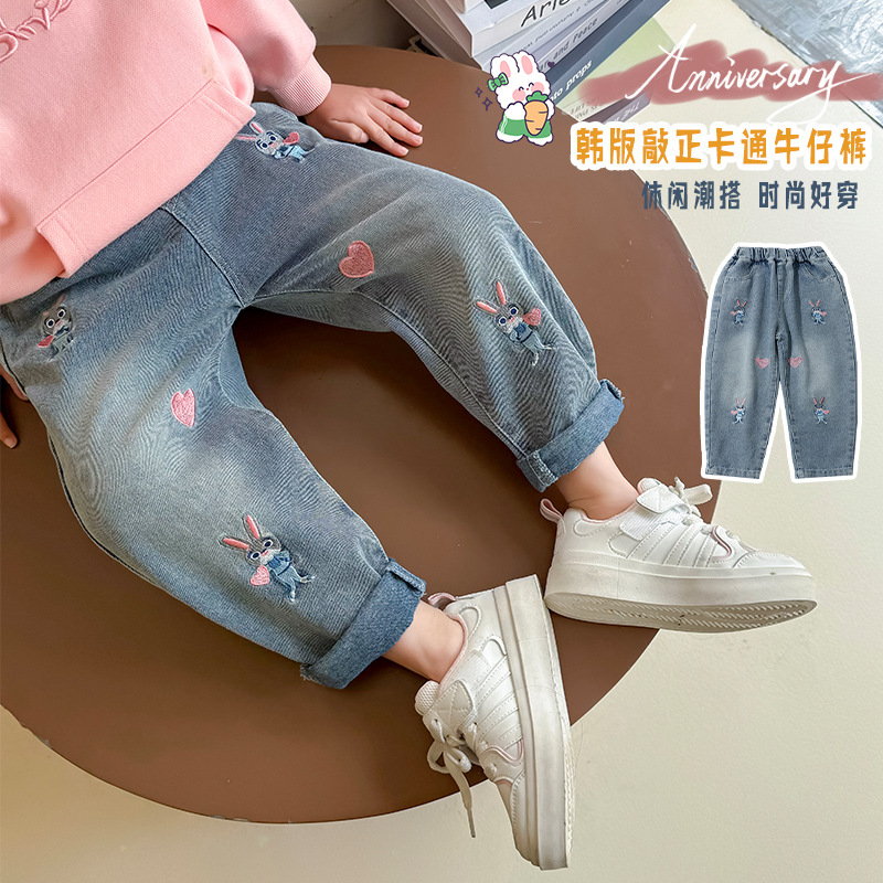 소녀 바지 봄과 가을 청바지 2025 봄 새로운 유행 한국 스타일 아기 소녀 어린이 복장 바지스토어 가기