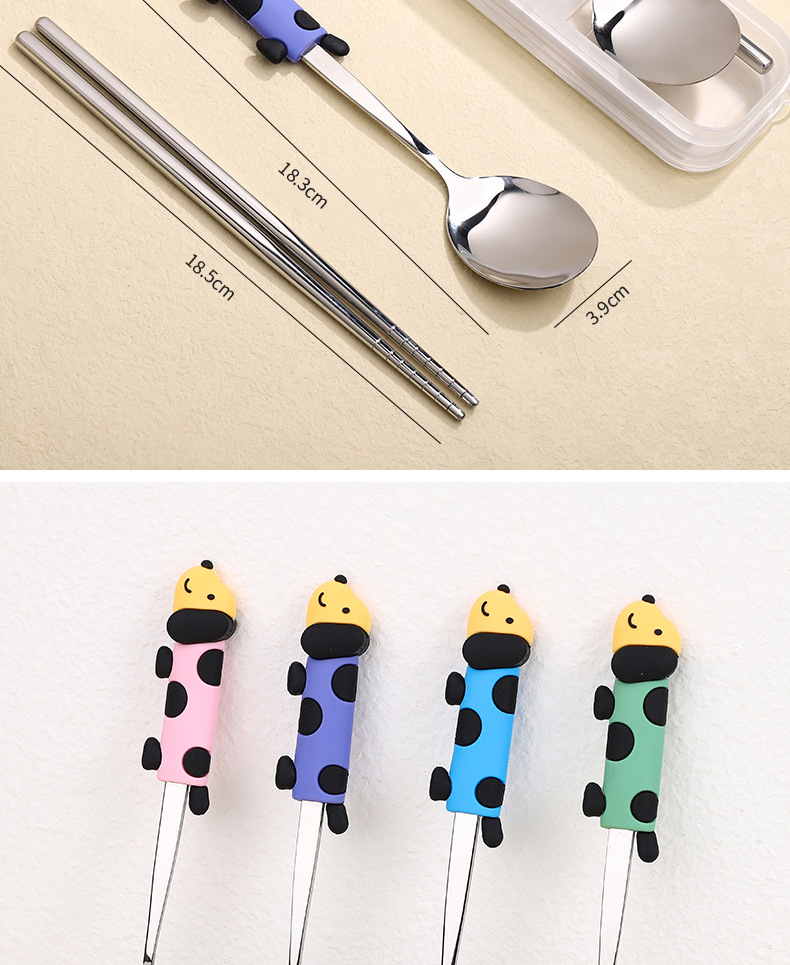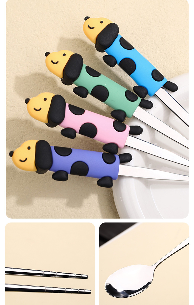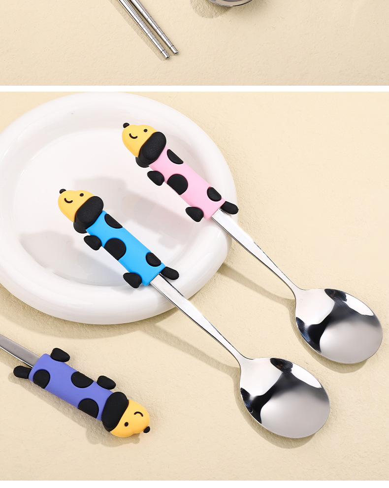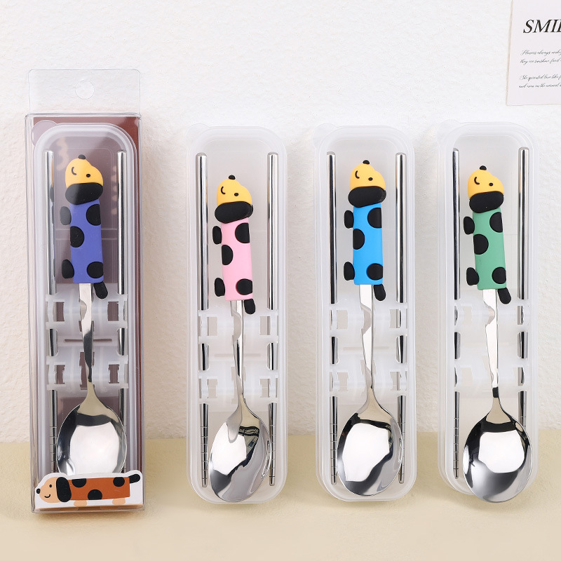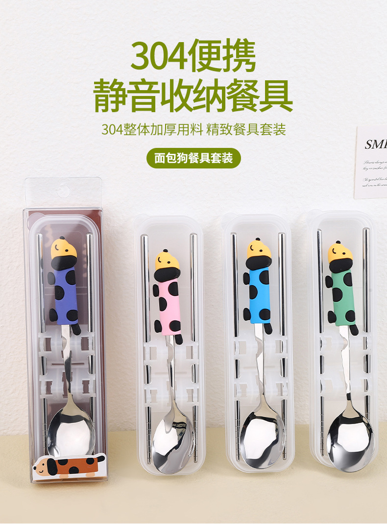 귀여운 개 식기 304 스테인레스 스틸 스푼 젓가락 세트 휴대용 기내 식기 학생스토어 가기