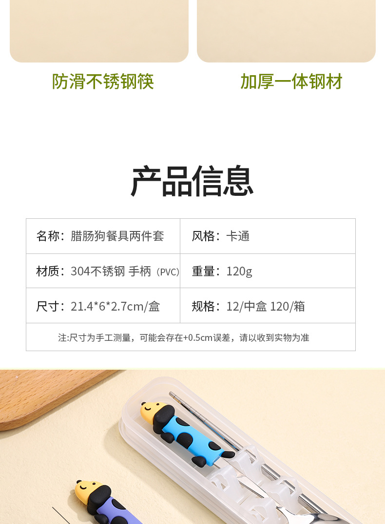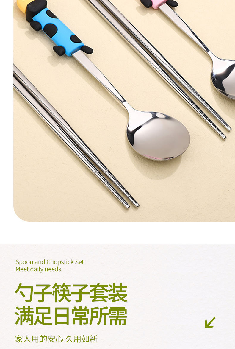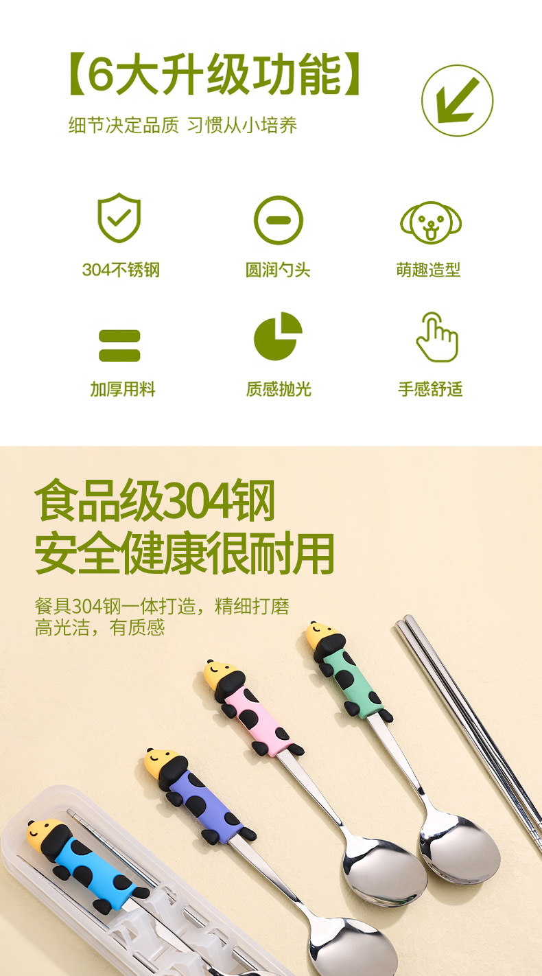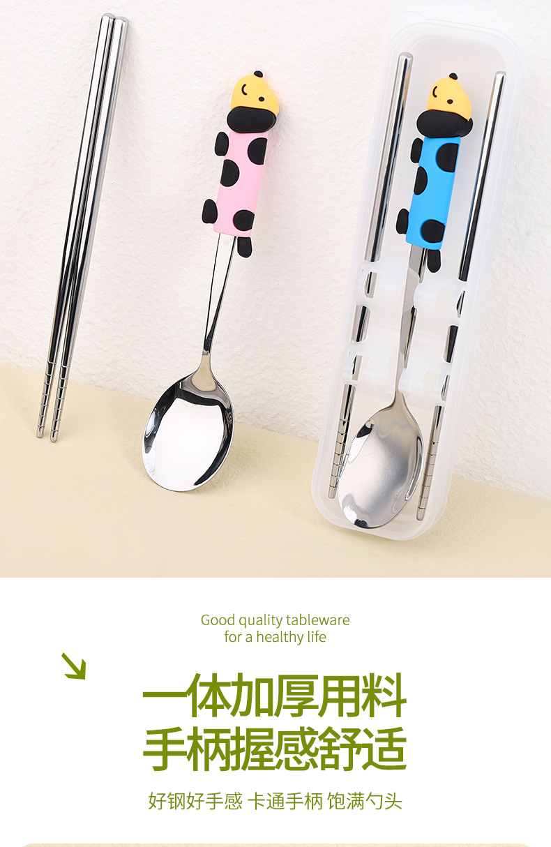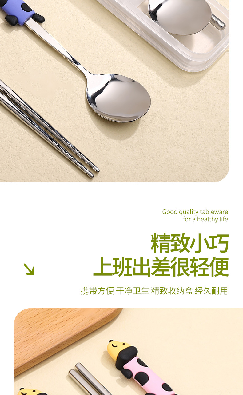 귀여운 개 식기 304 스테인레스 스틸 스푼 젓가락 세트 휴대용 기내 식기 학생스토어 가기