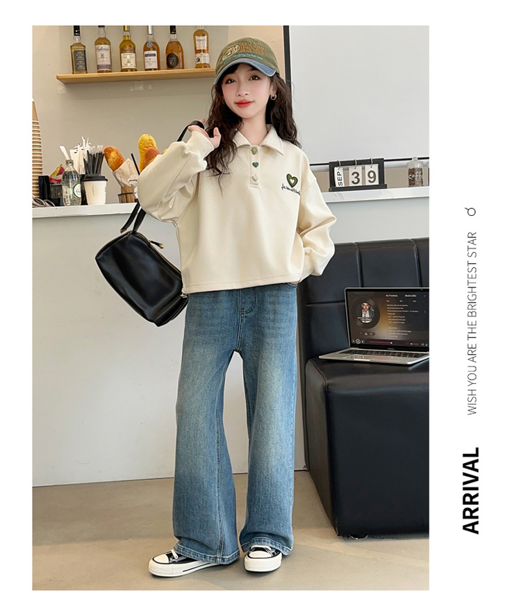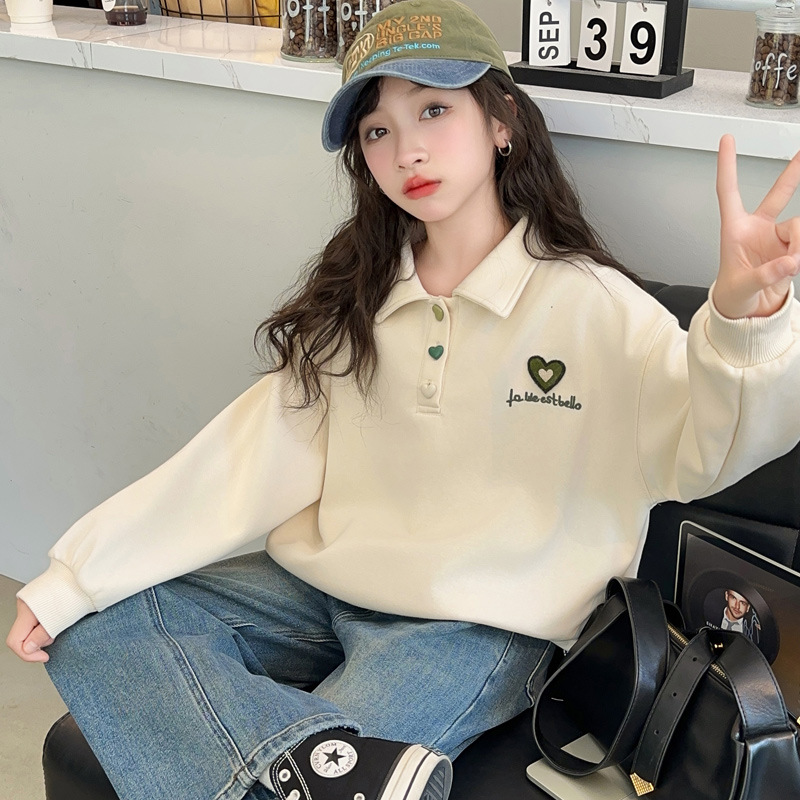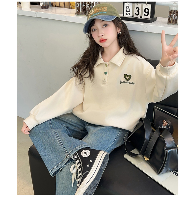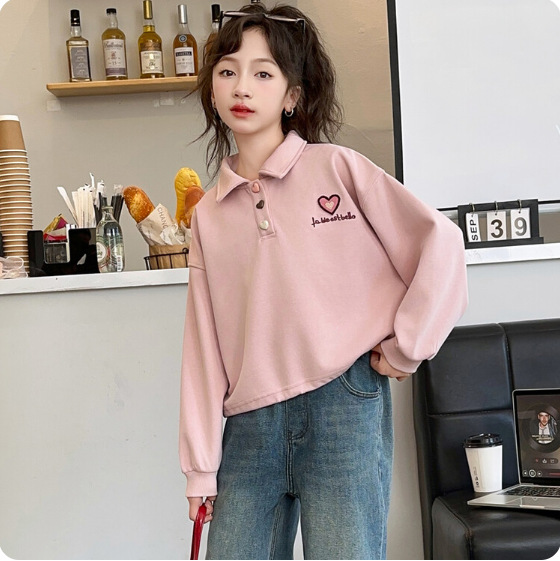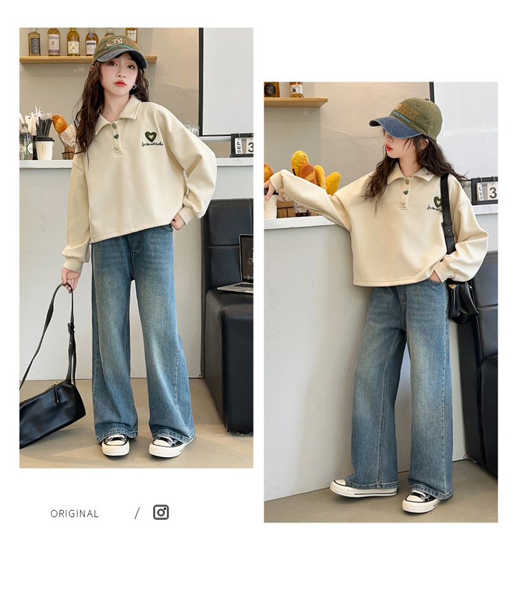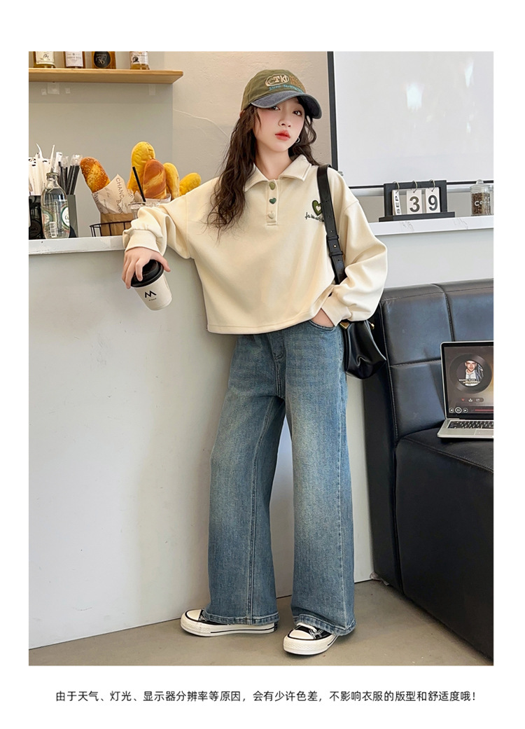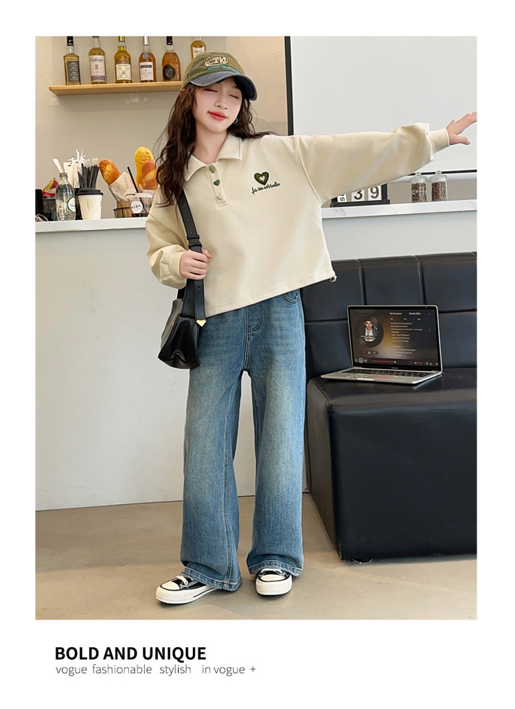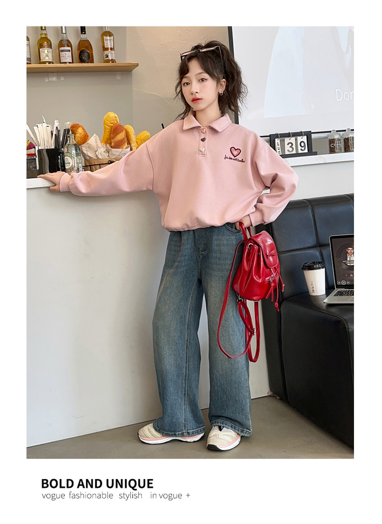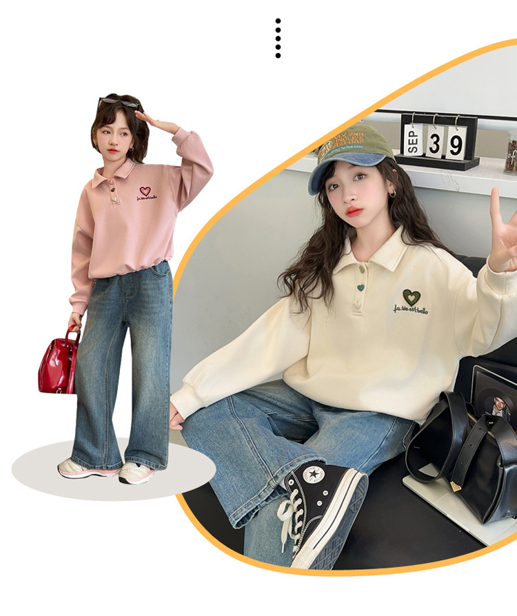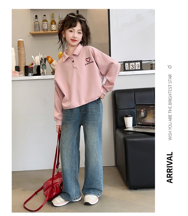 소녀의 봄 폴로 셔츠 세트 2025 새로운 스타일 어린이 청바지 스웨트 셔츠 소녀의 봄과 가을 투피스 세트스토어 가기