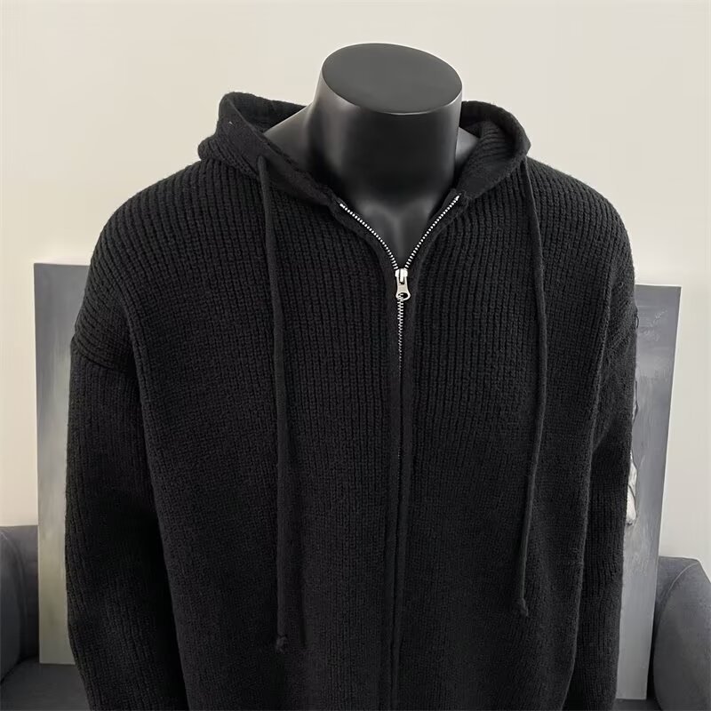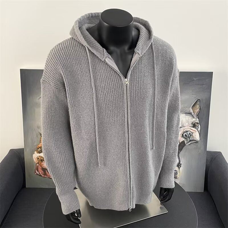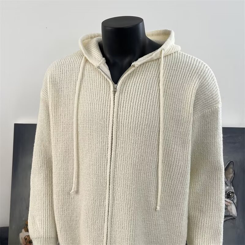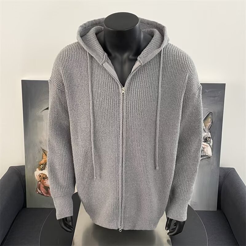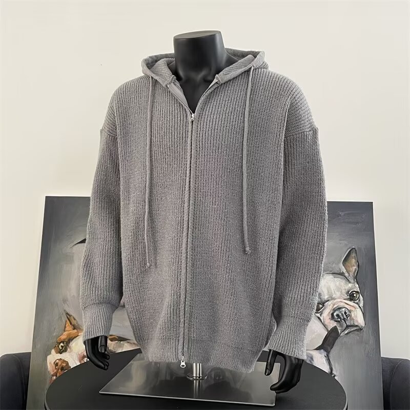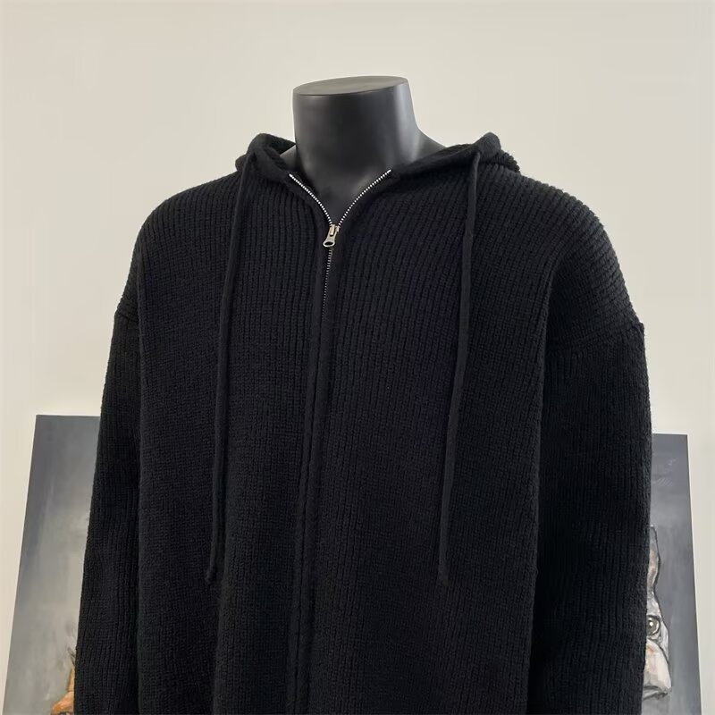 가을과 겨울 두꺼운 스웨터 코트 유행 솔리드 컬러 느슨한 후드 양면 스플릿 핏 니트 카디건 탑스토어 가기