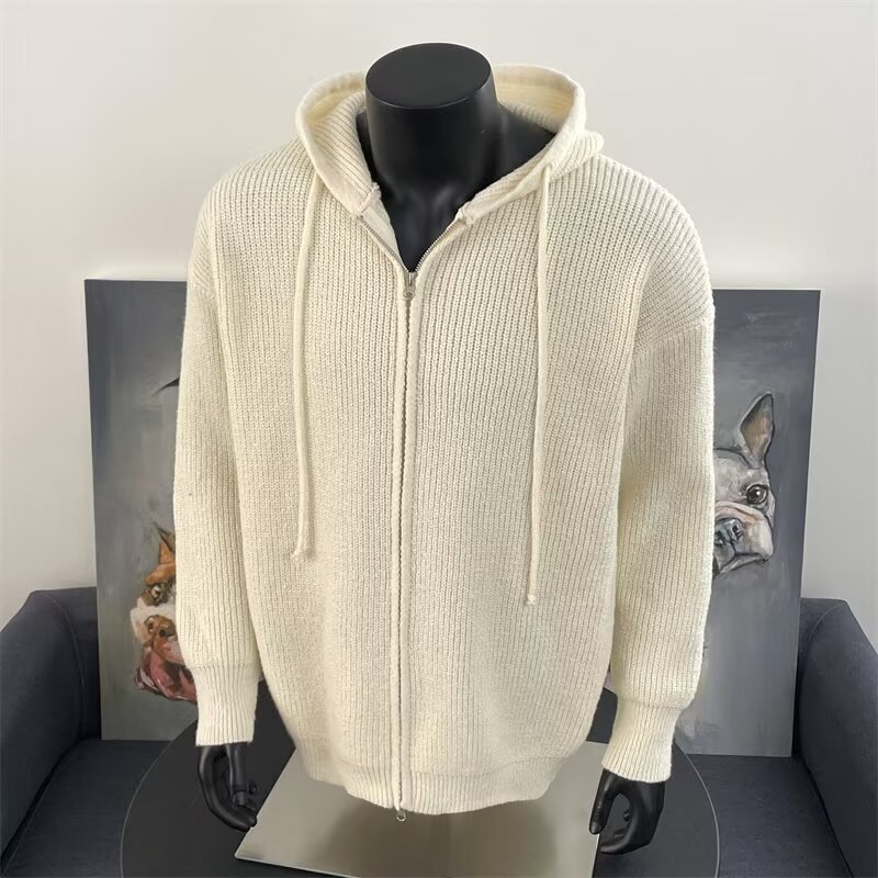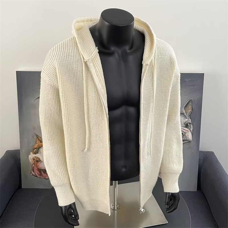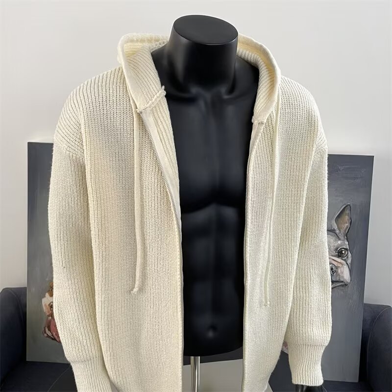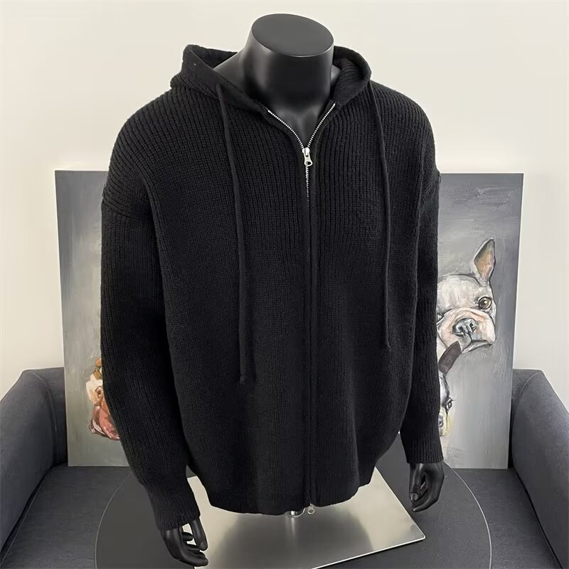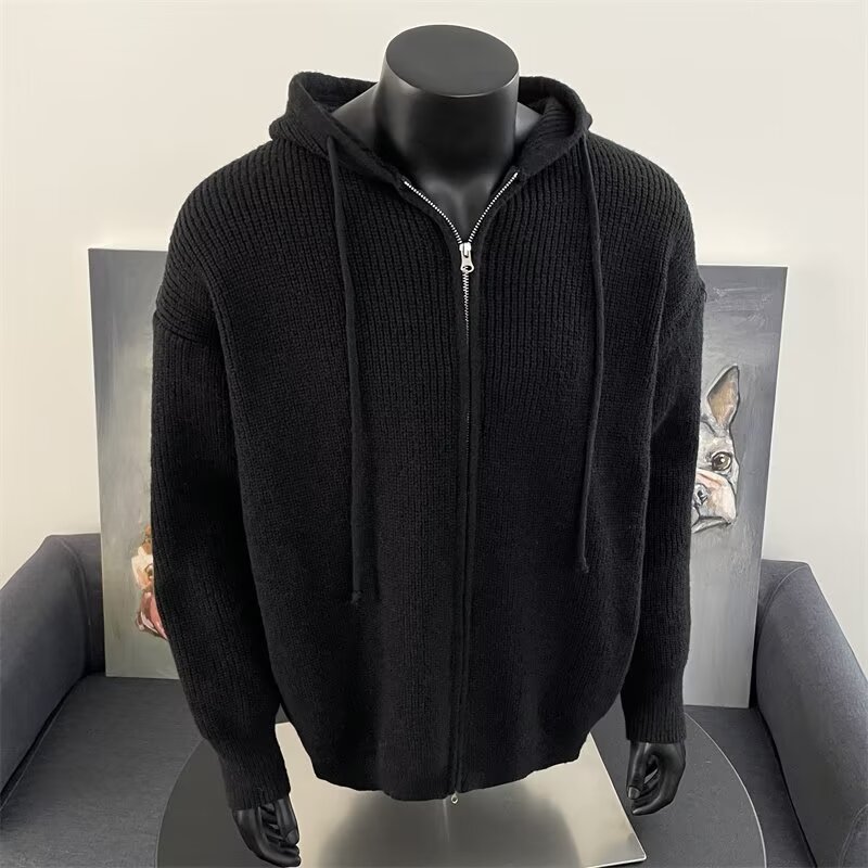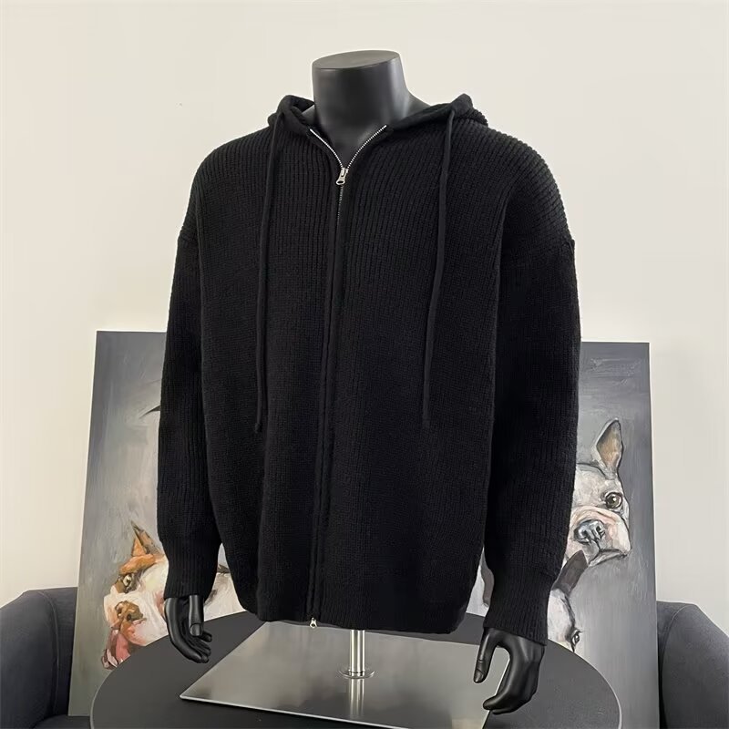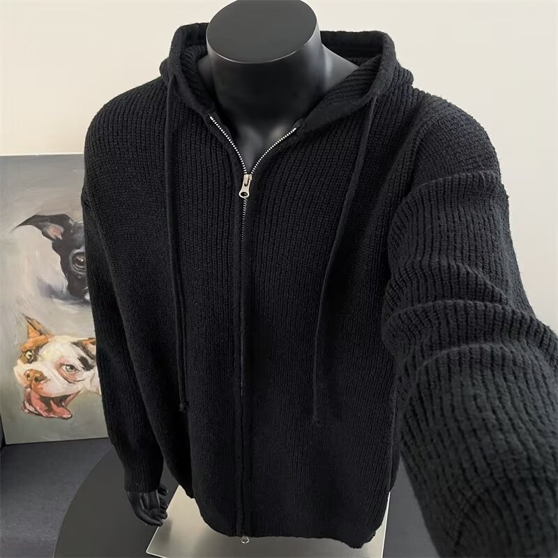 가을과 겨울 두꺼운 스웨터 코트 유행 솔리드 컬러 느슨한 후드 양면 스플릿 핏 니트 카디건 탑스토어 가기