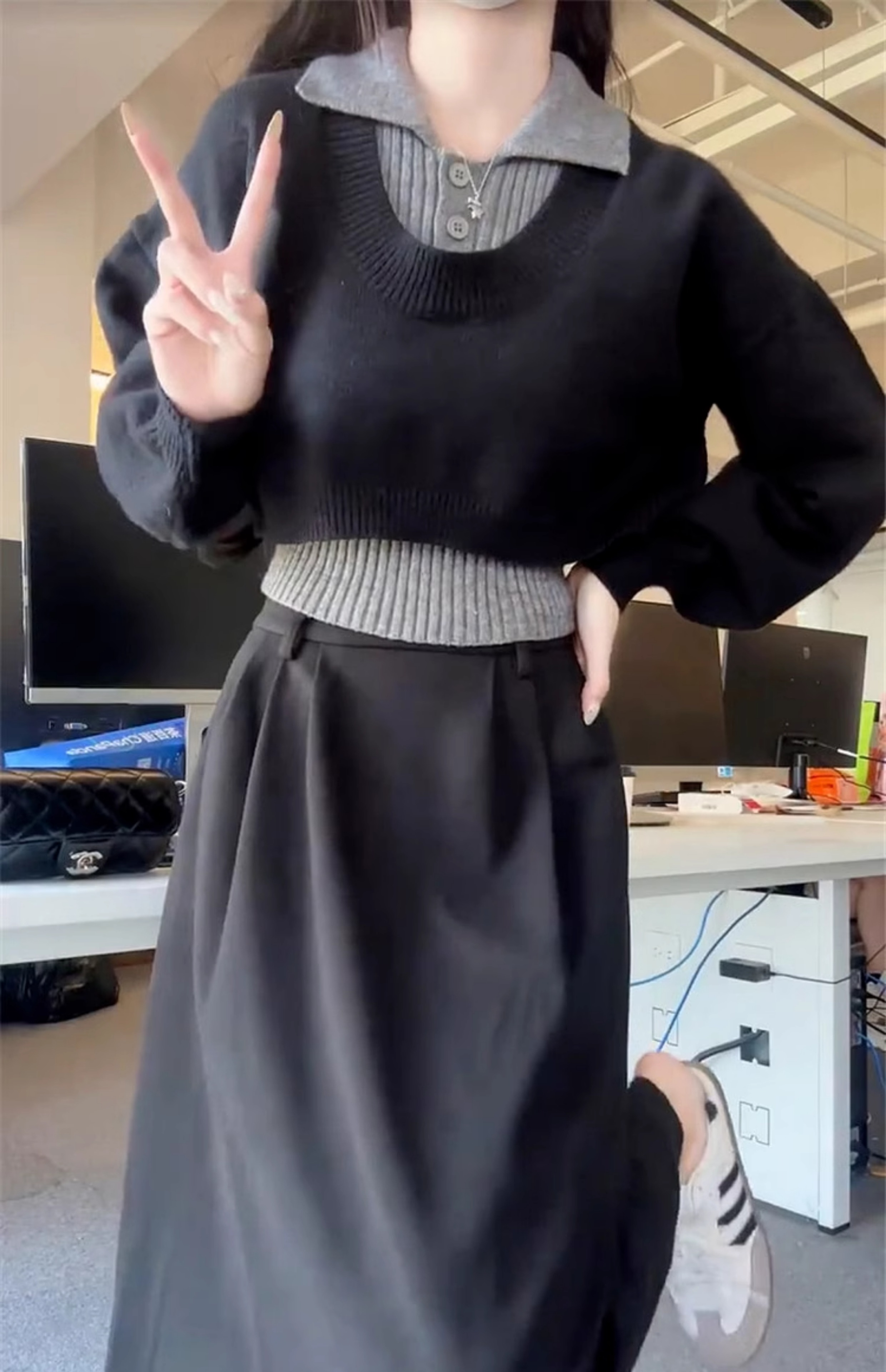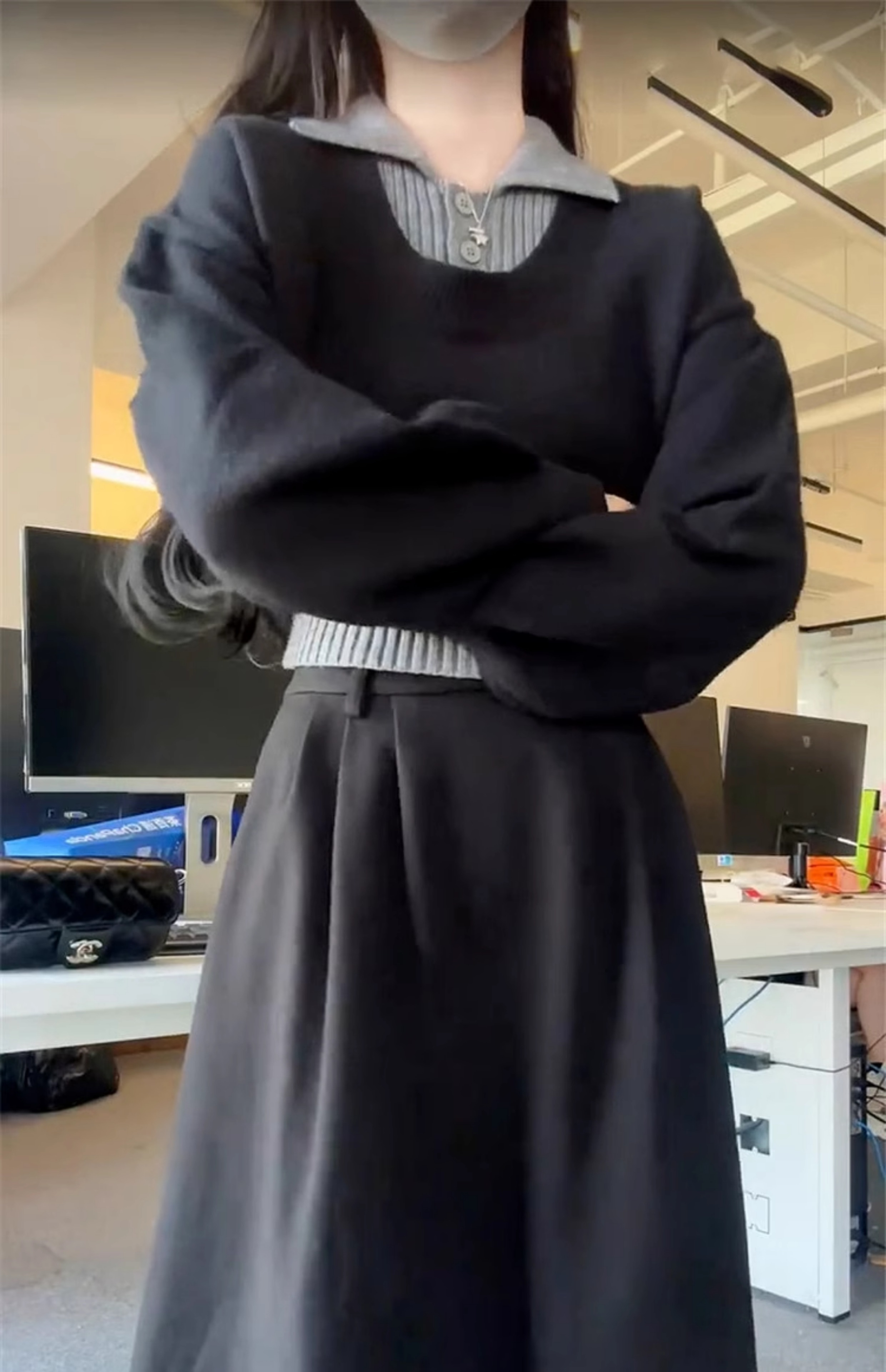 • 70/75kg/XXXL [초가을 느낌의 한국적인 분위기의 코디, 차가운 시크 스커트, 초가을 여성 2024 신작 낚시 데이트 스커트]