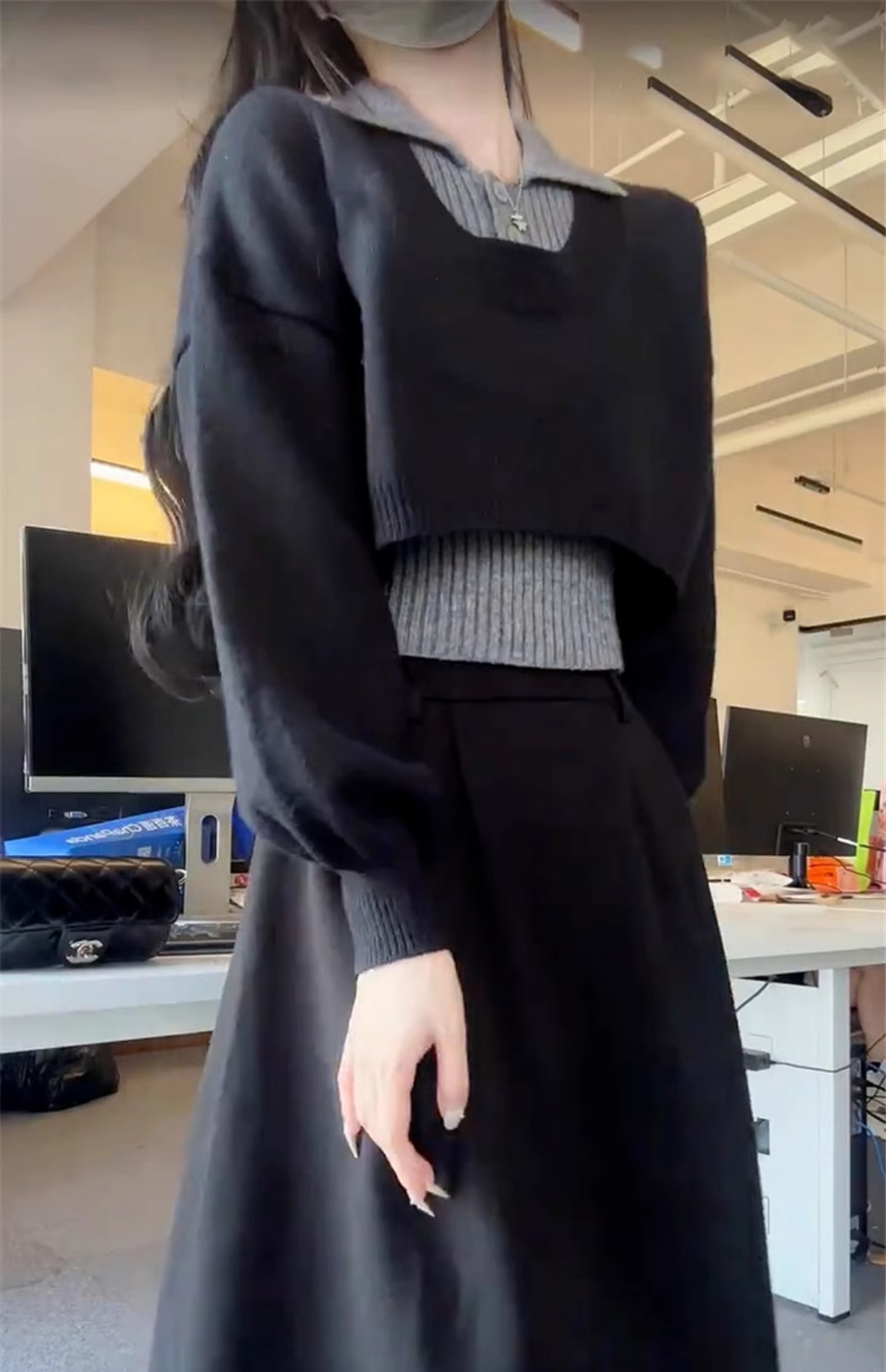 겨울은 작은 향기로운 검은 색 원피스 여성의 가을과 겨울 2024 새로운 투피스 세트 착용합니다.스토어 가기