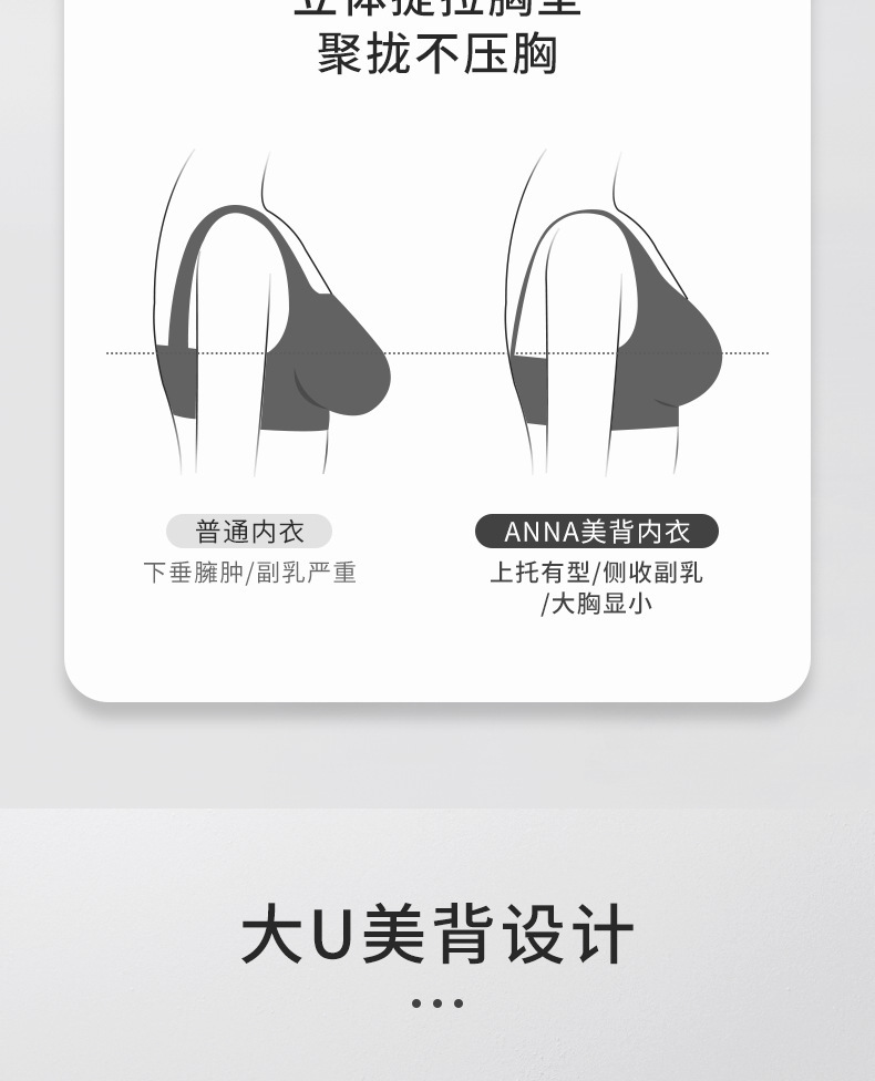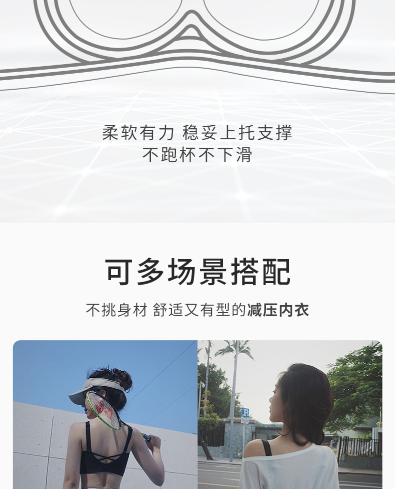 大胸显小内衣女美背夏季大U背运动文胸薄款防震防下垂无钢圈胸罩