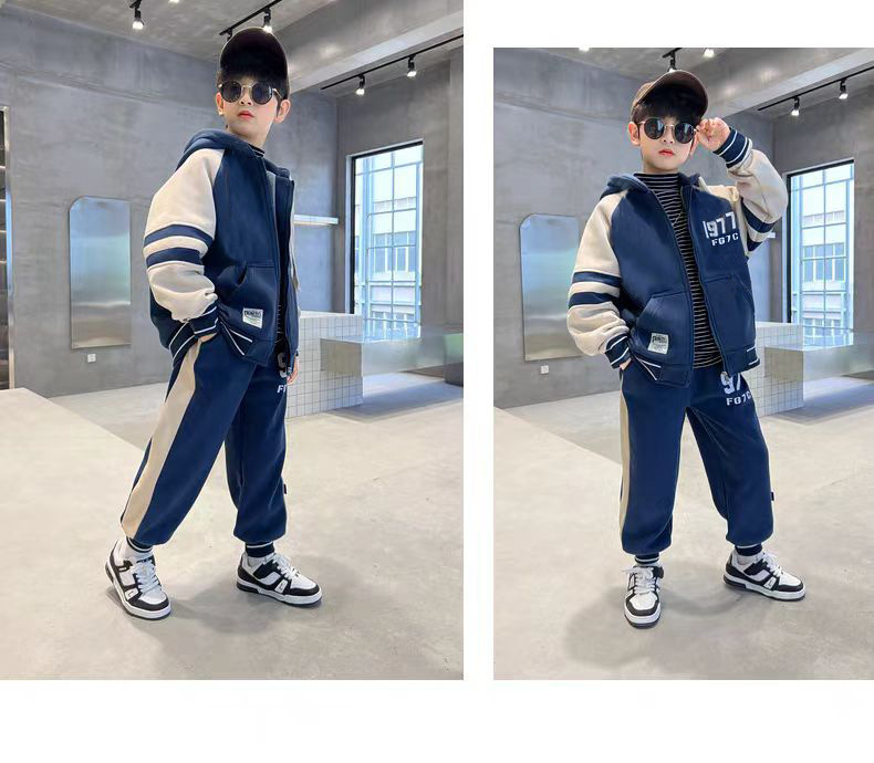 남학생 겨울복 세트 2024 새로운 중다 어린이 소년 겨울 기모 두꺼운 시원한 가을과 겨울 스포츠 패션스토어 가기