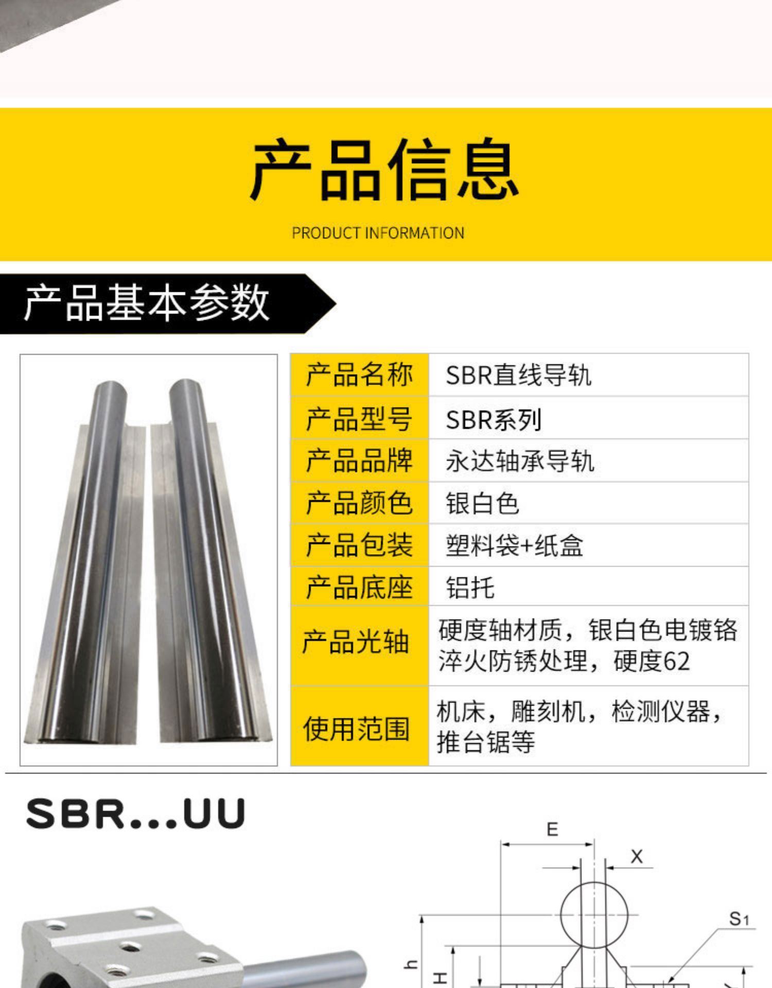SBR 선형 원통형 가이드 레일 알루미늄 트레이 슬라이드 레일 무거운 목공 슬라이드 레일 슬라이드 크롬 도금 광학 축 완전한 세트