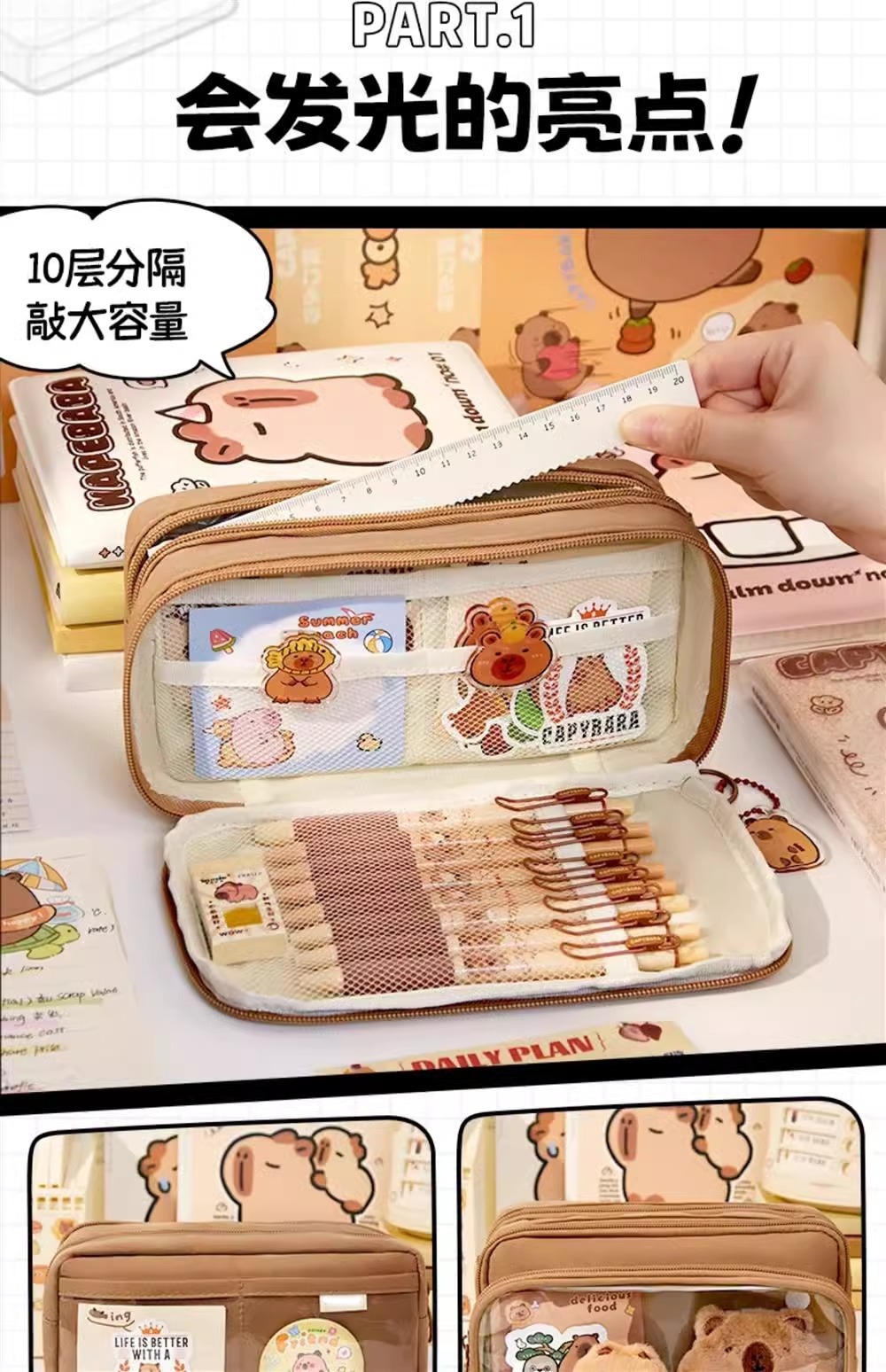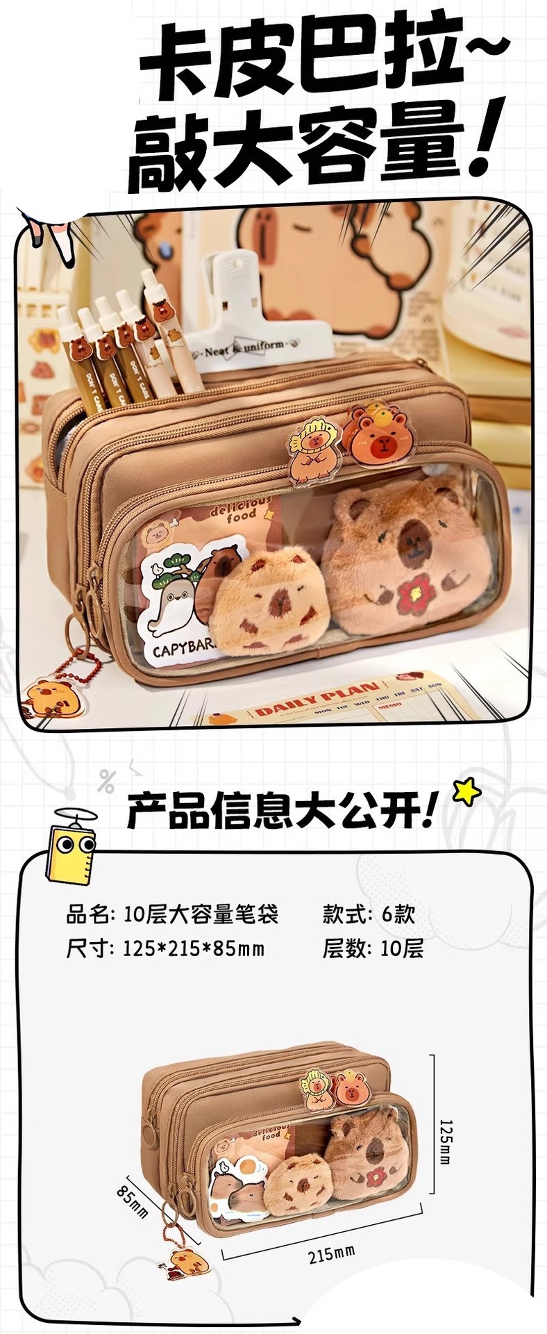 • 필통+스티커*5+스티커+크고 작은 카피바라 봉제인형+PP클립*2