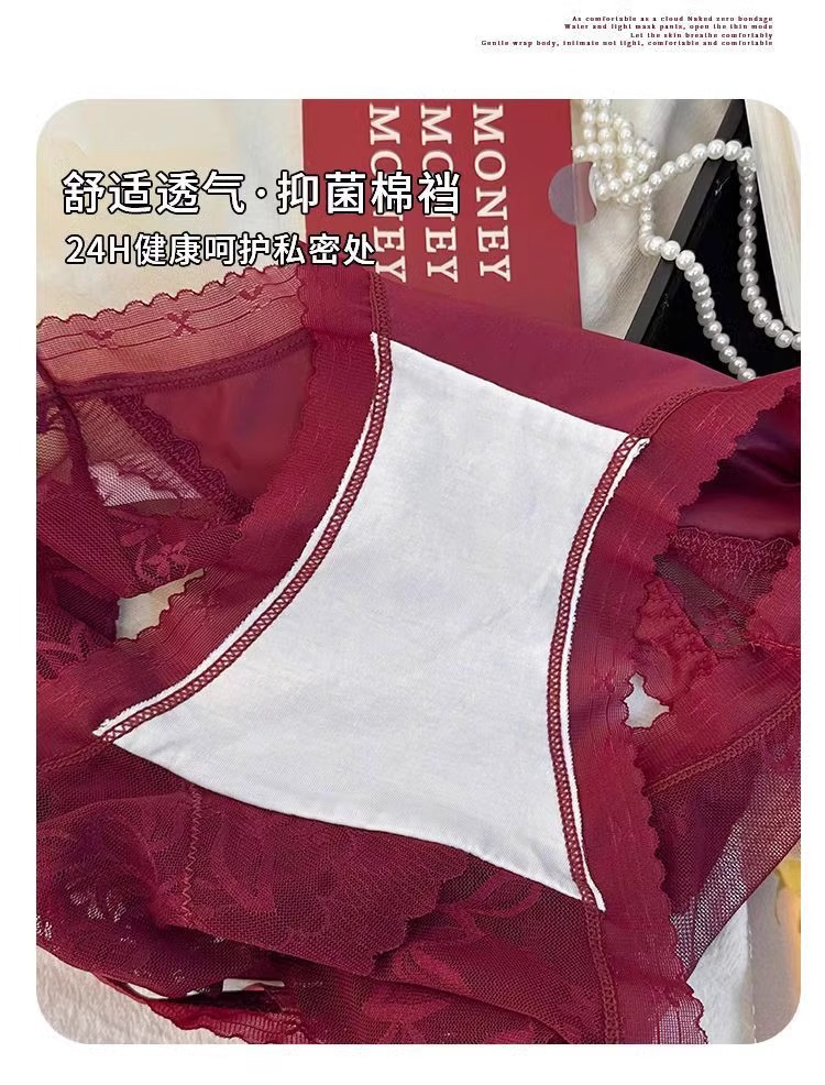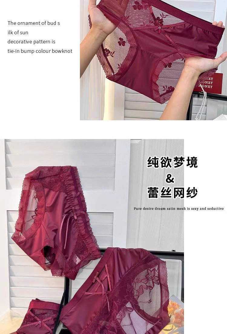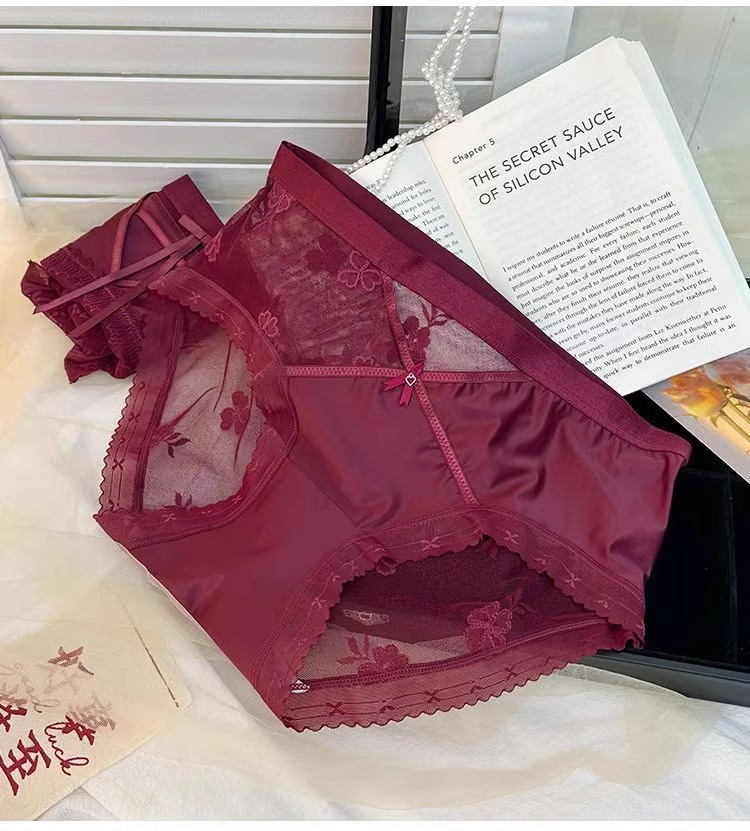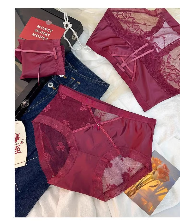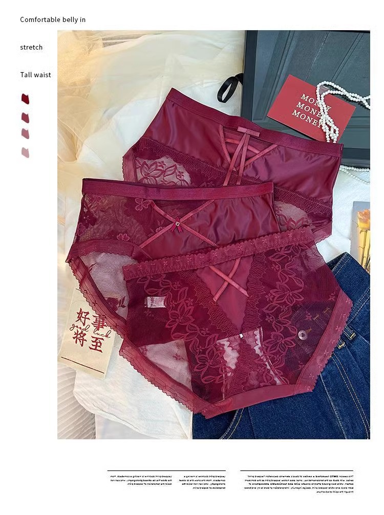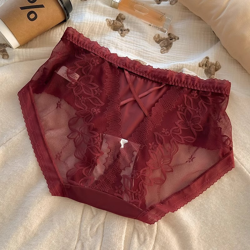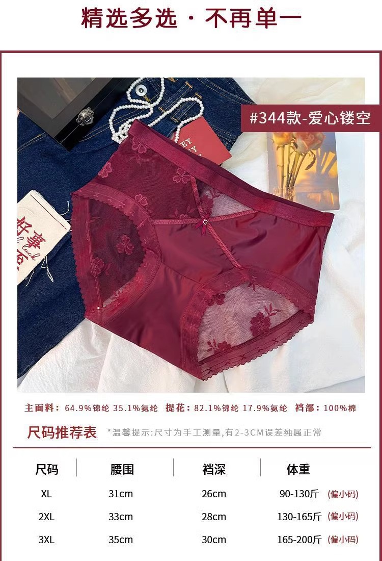 인기있는 인터넷 뜨거운 섹시한 레이스 속옷 여성의 순수한 면 7A 항균 지방 자매 플러스 사이즈 100.00kg 중고 허리 버건디