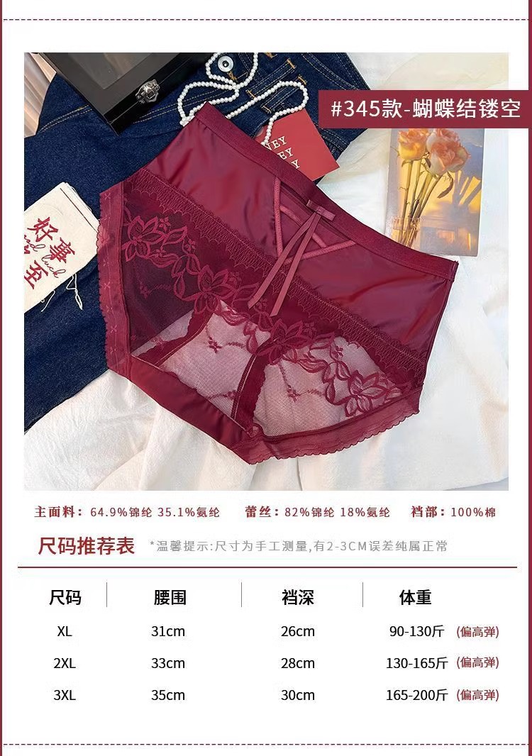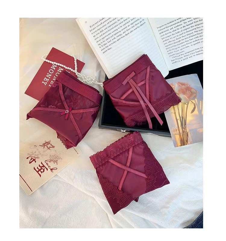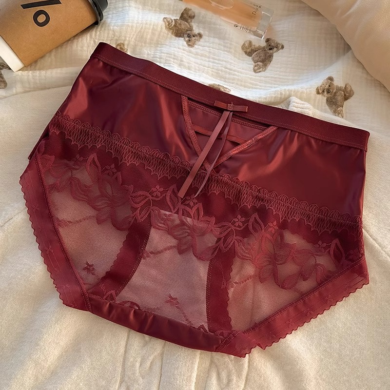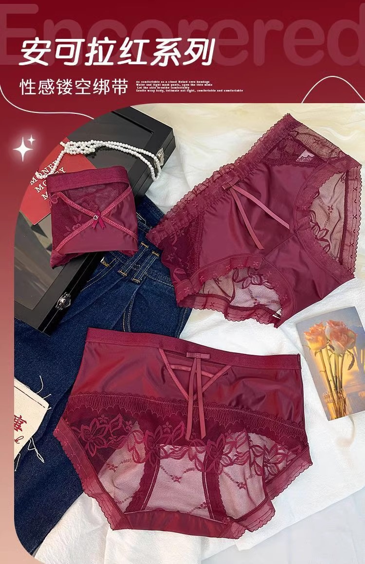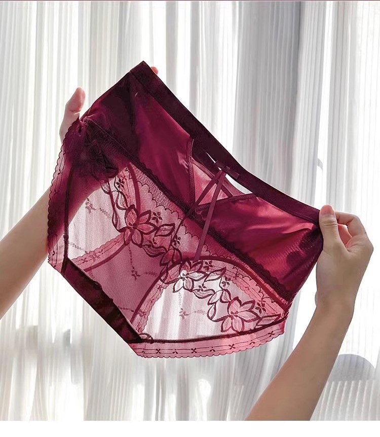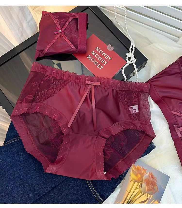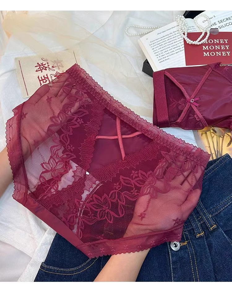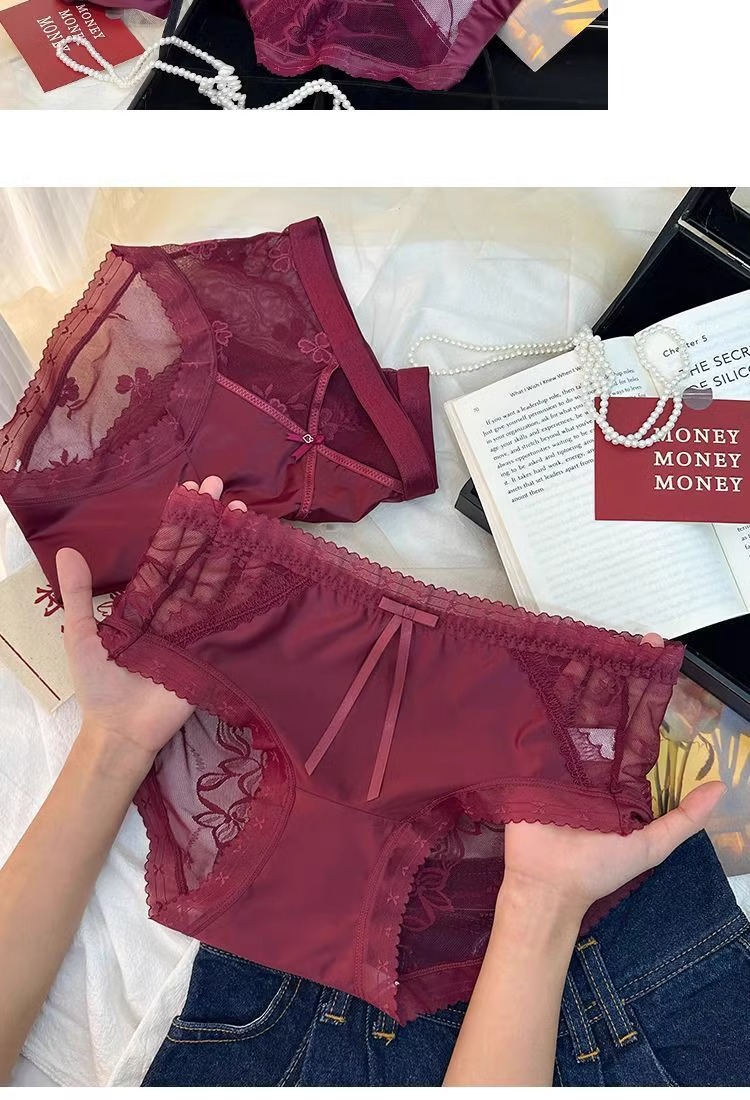 인기있는 인터넷 뜨거운 섹시한 레이스 속옷 여성의 순수한 면 7A 항균 지방 자매 플러스 사이즈 100.00kg 중고 허리 버건디