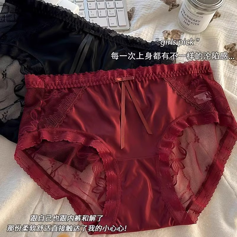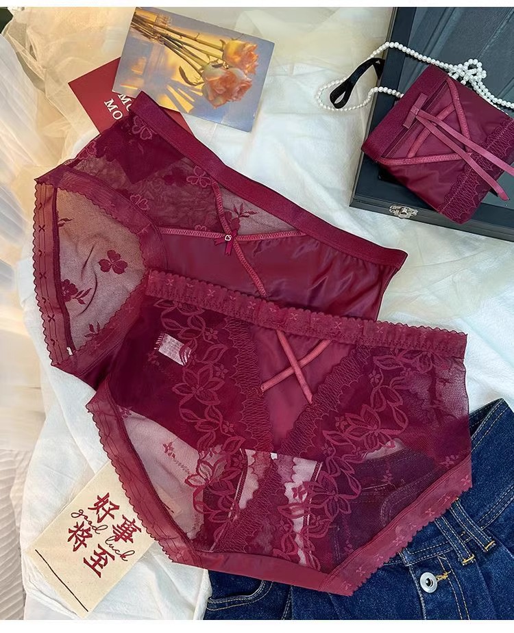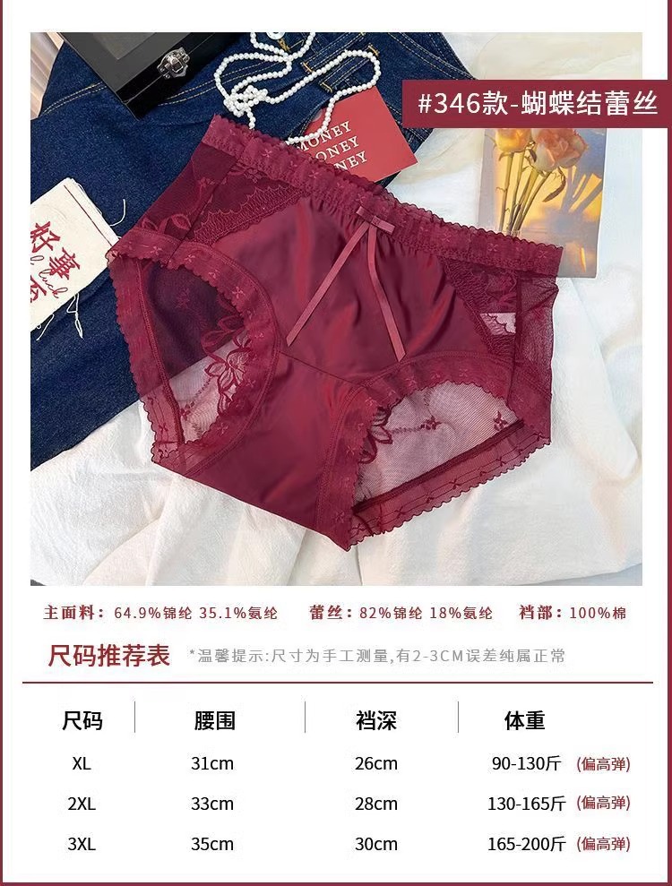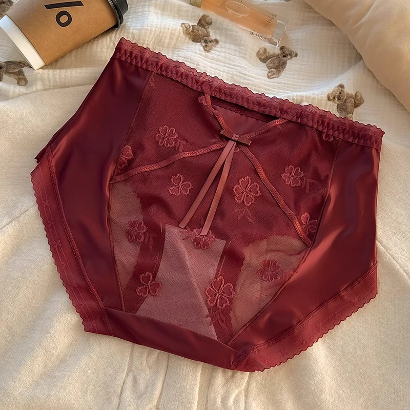 인기있는 인터넷 뜨거운 섹시한 레이스 속옷 여성의 순수한 면 7A 항균 지방 자매 플러스 사이즈 100.00kg 중고 허리 버건디스토어 가기