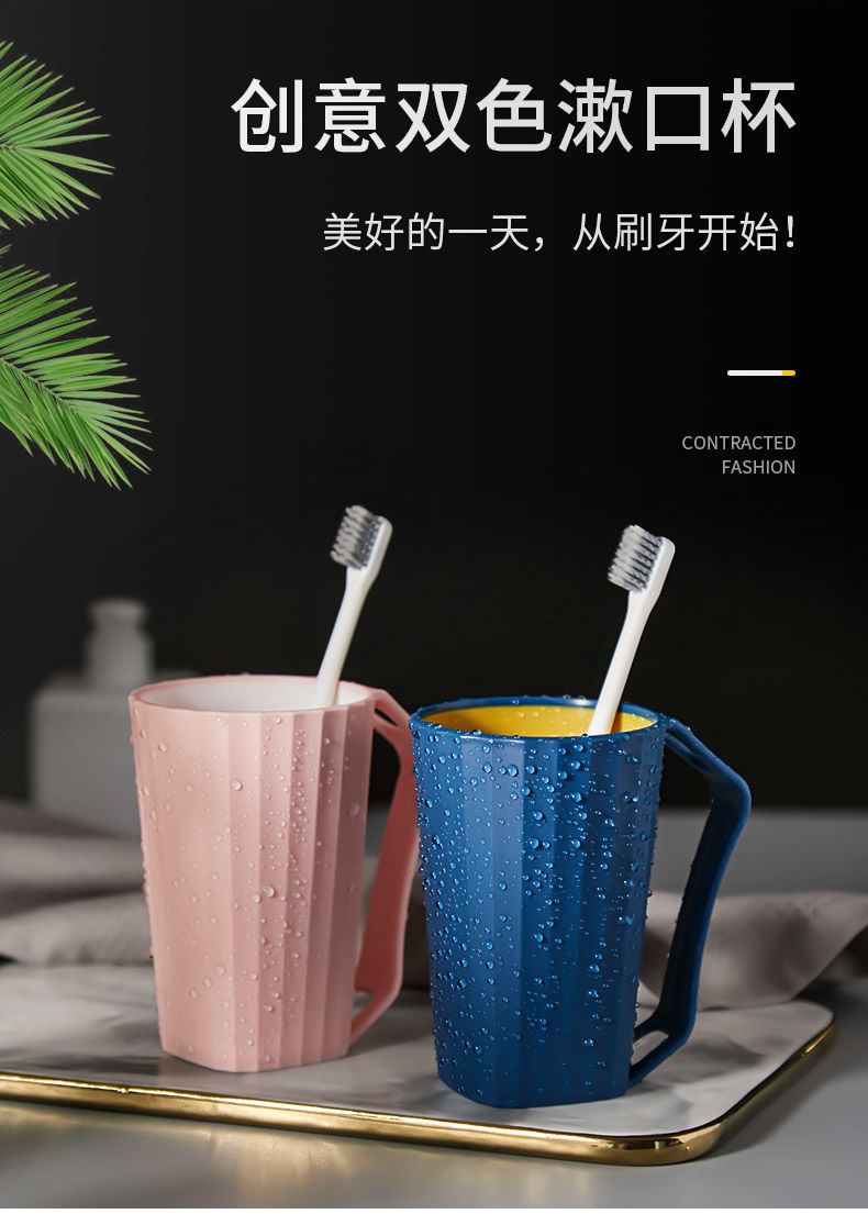 워시 컵 가정용 단순 대비 컬러 커플 성인 마우스 워시 컵 북유럽 칫솔 컵 배수 더블 레이어 두꺼운 워시 컵