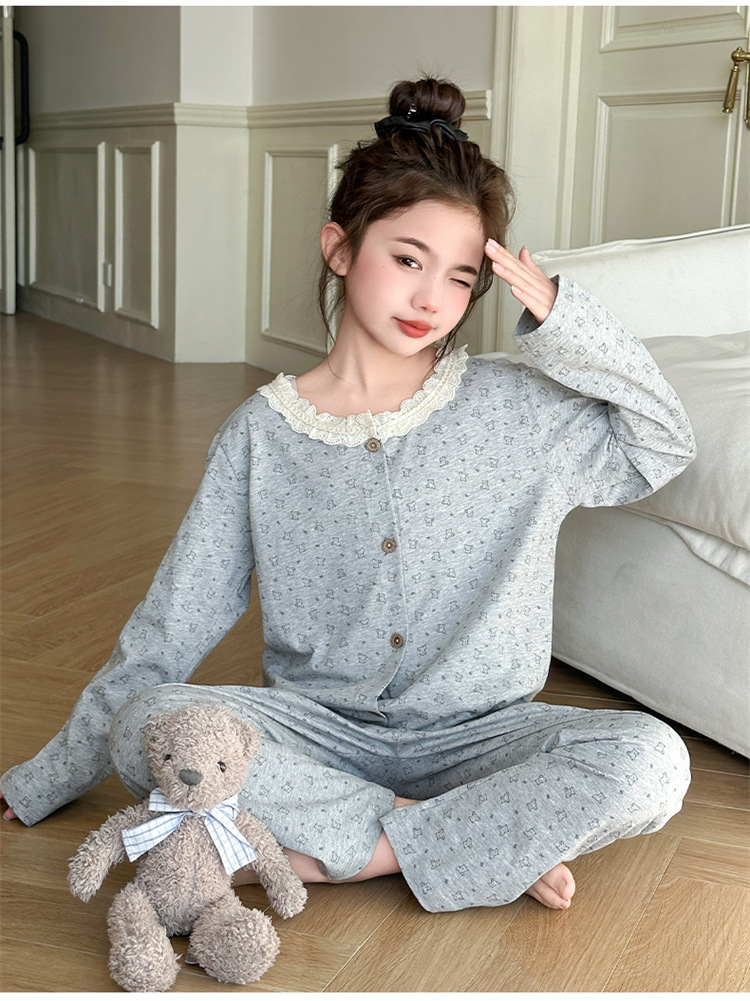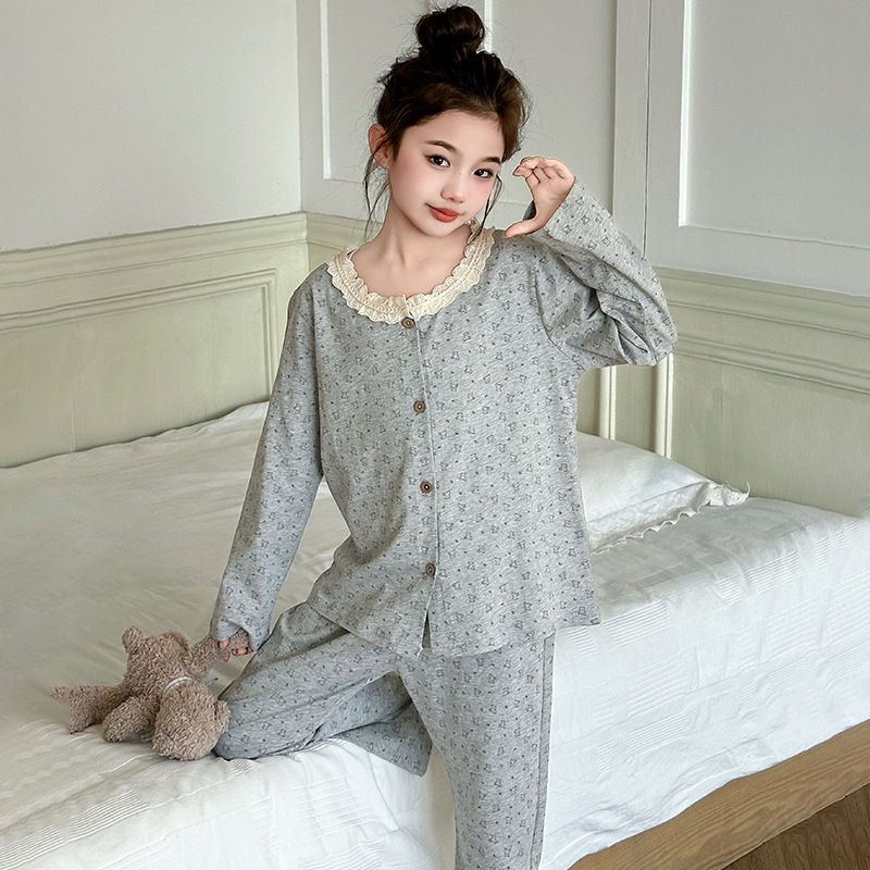 어린이 잠옷 봄과 가을 꽃 2025 새로운 큰 소녀의 가정 옷 봄 긴팔 어린이 레이스 공주 정장스토어 가기