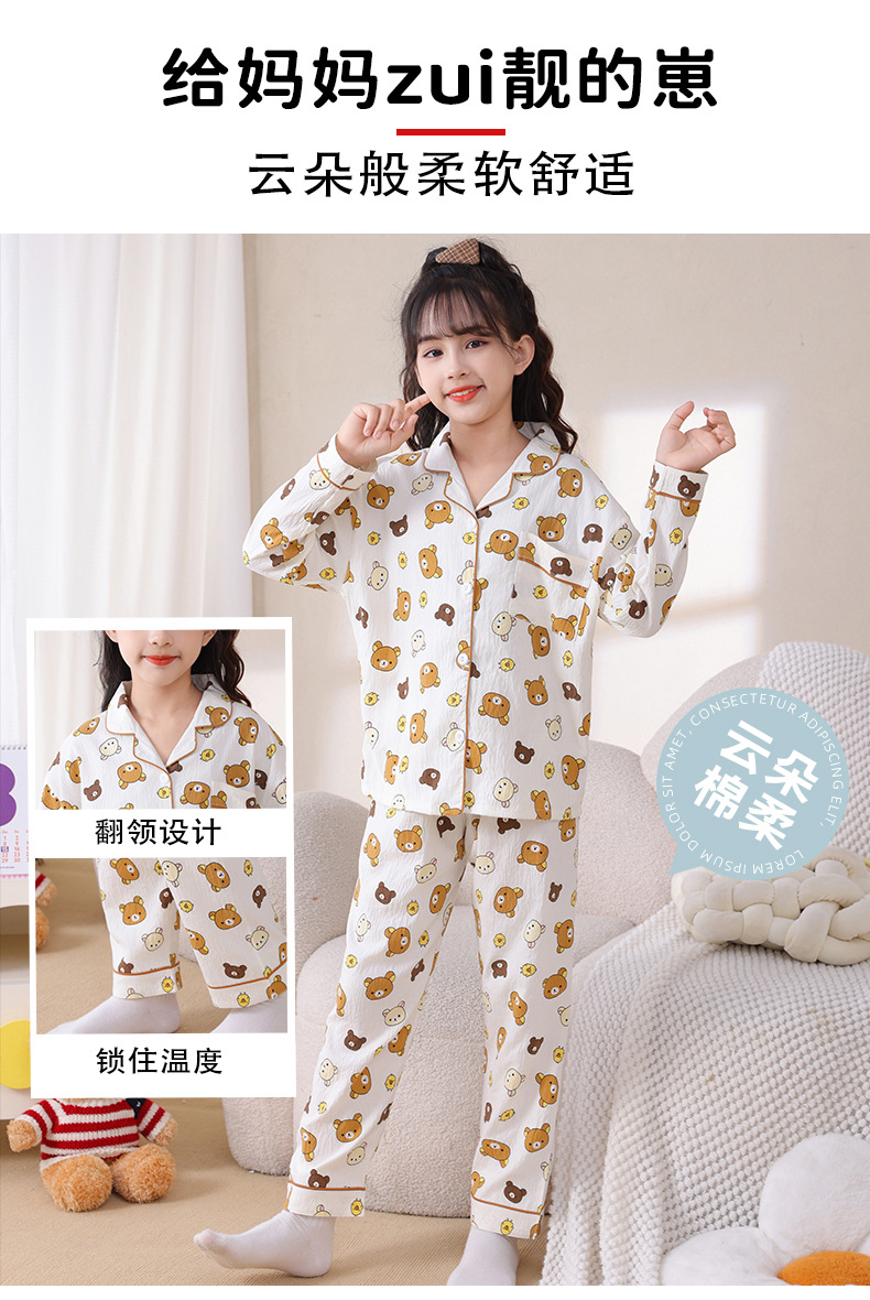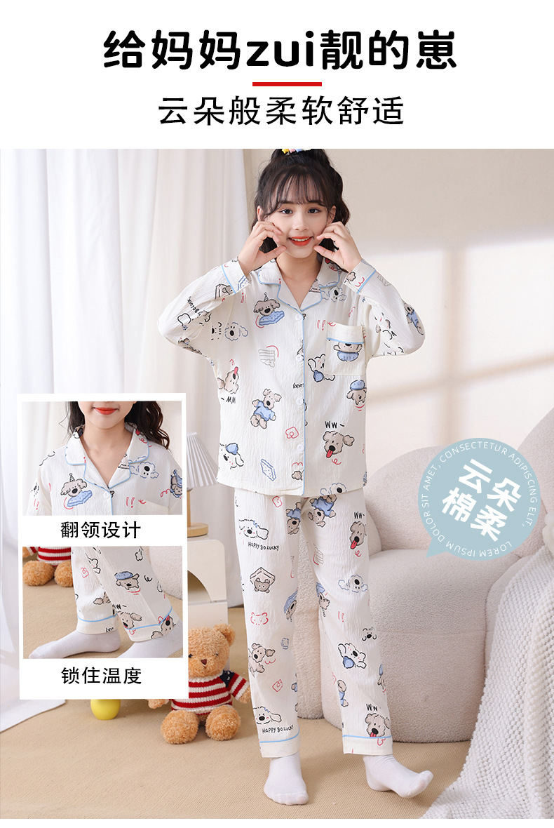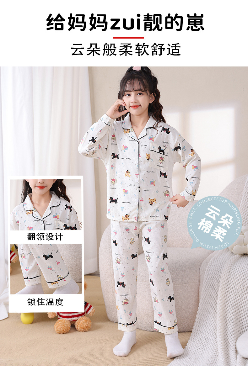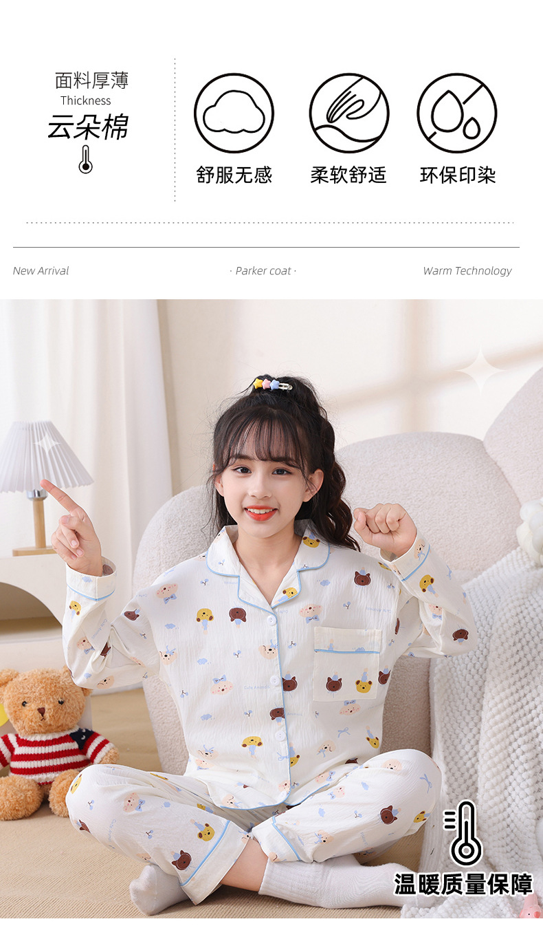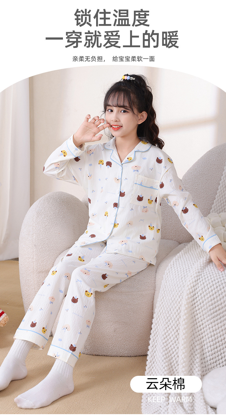 어린이 잠옷 구름 면 긴 소매 카디건 봄과 가을 달콤한 귀여운 만화 인쇄 어린이 에어컨 방 옷