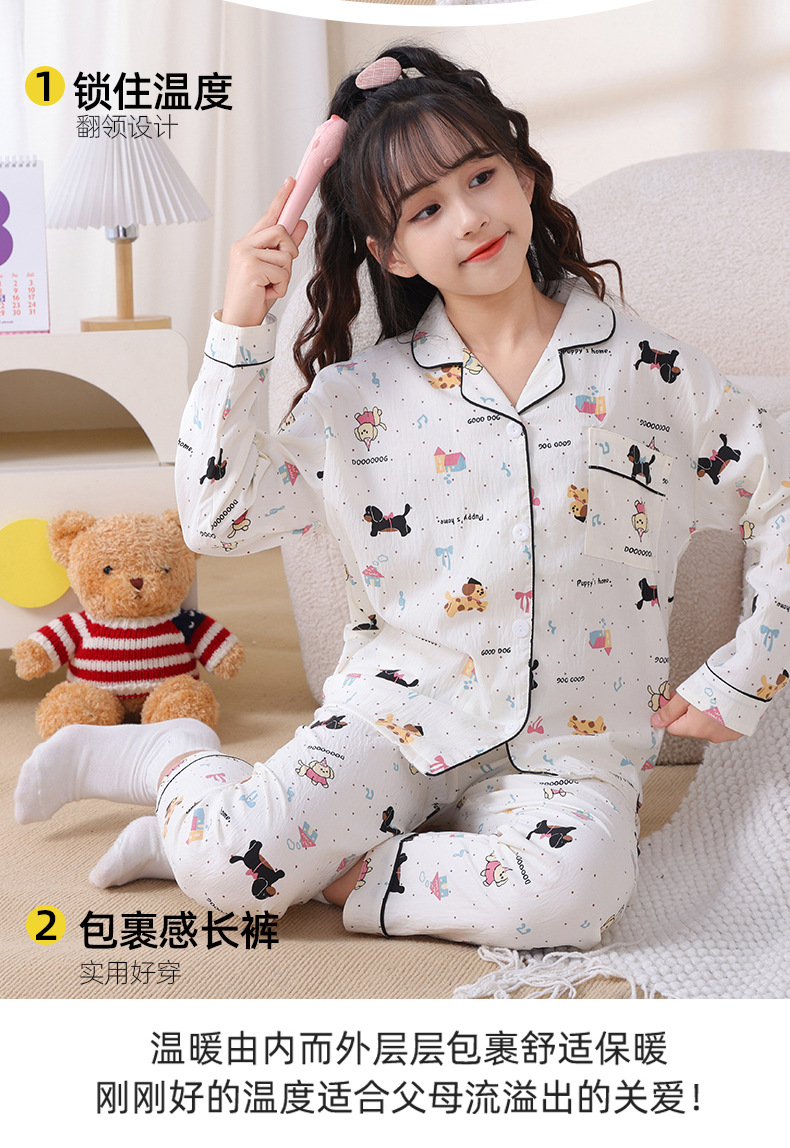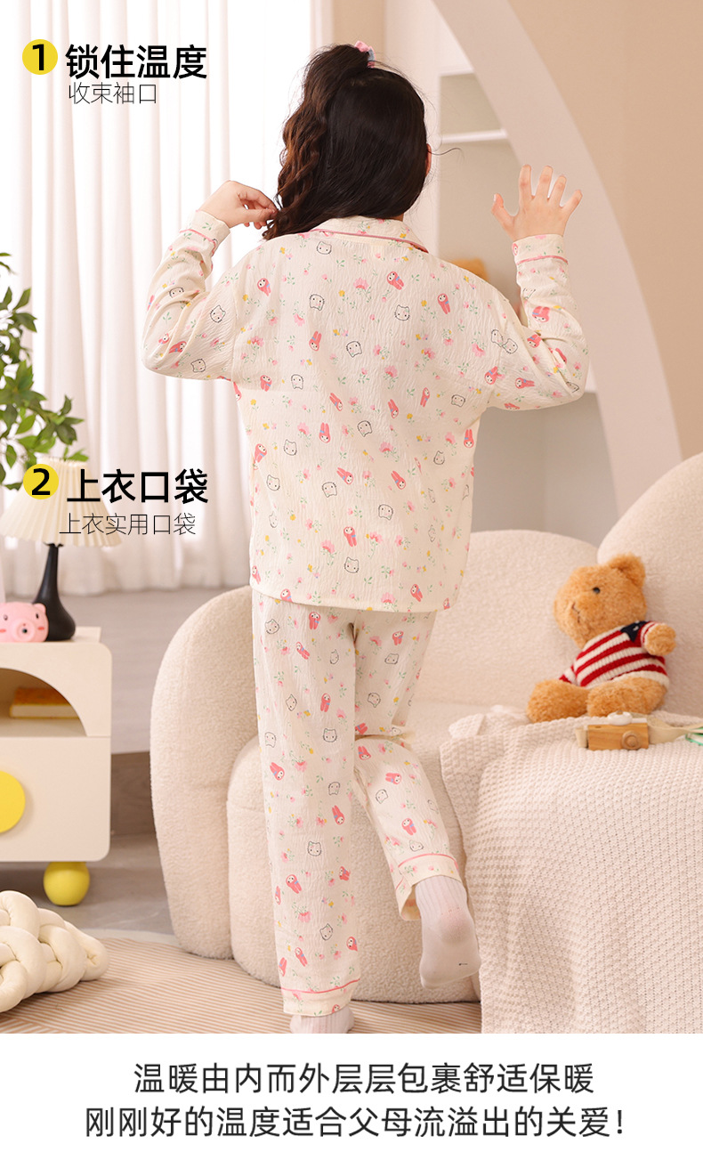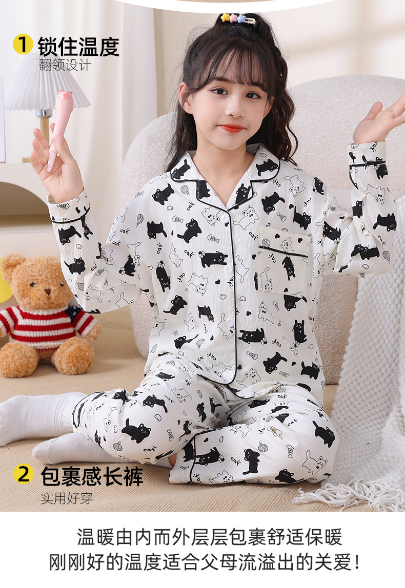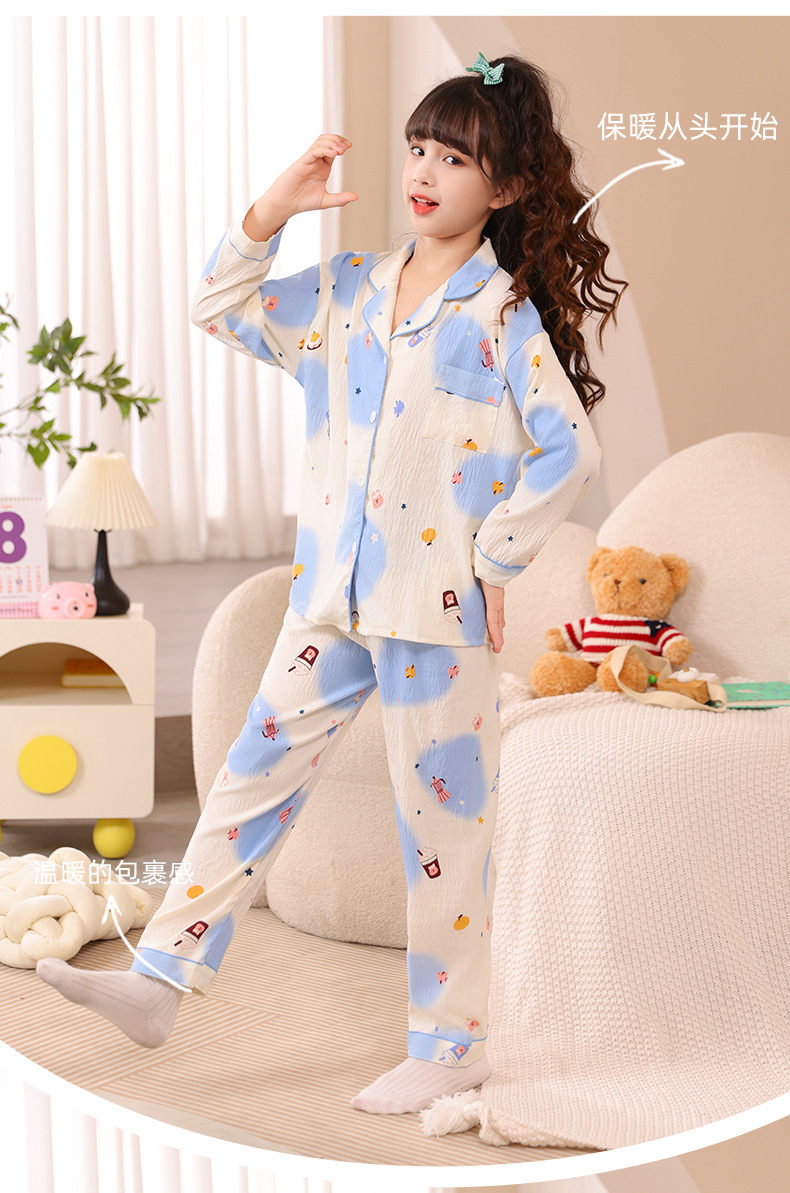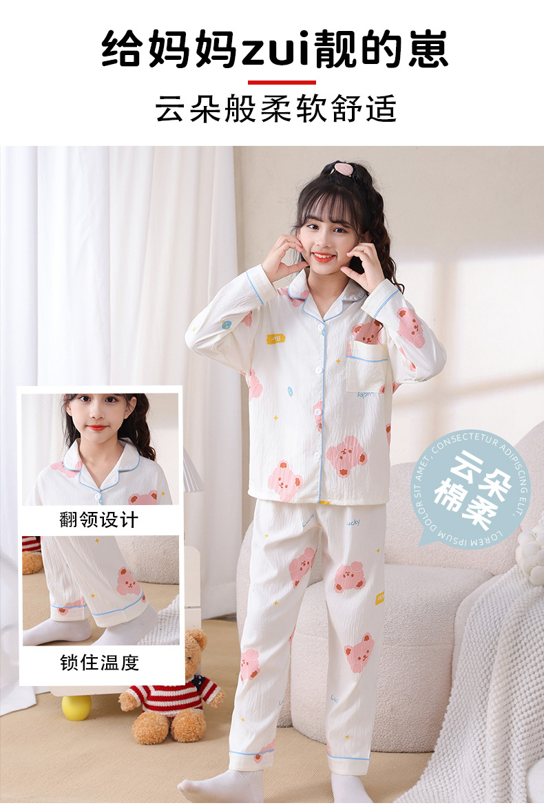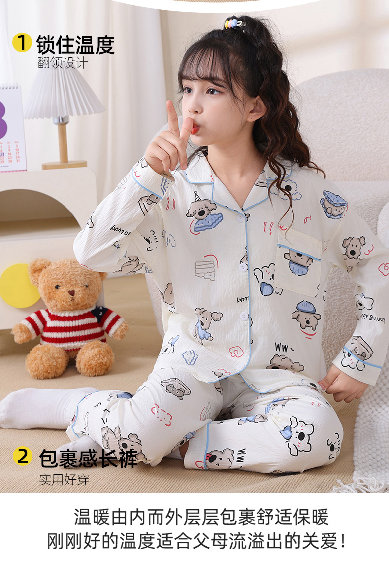 어린이 잠옷 구름 면 긴 소매 카디건 봄과 가을 달콤한 귀여운 만화 인쇄 어린이 에어컨 방 옷