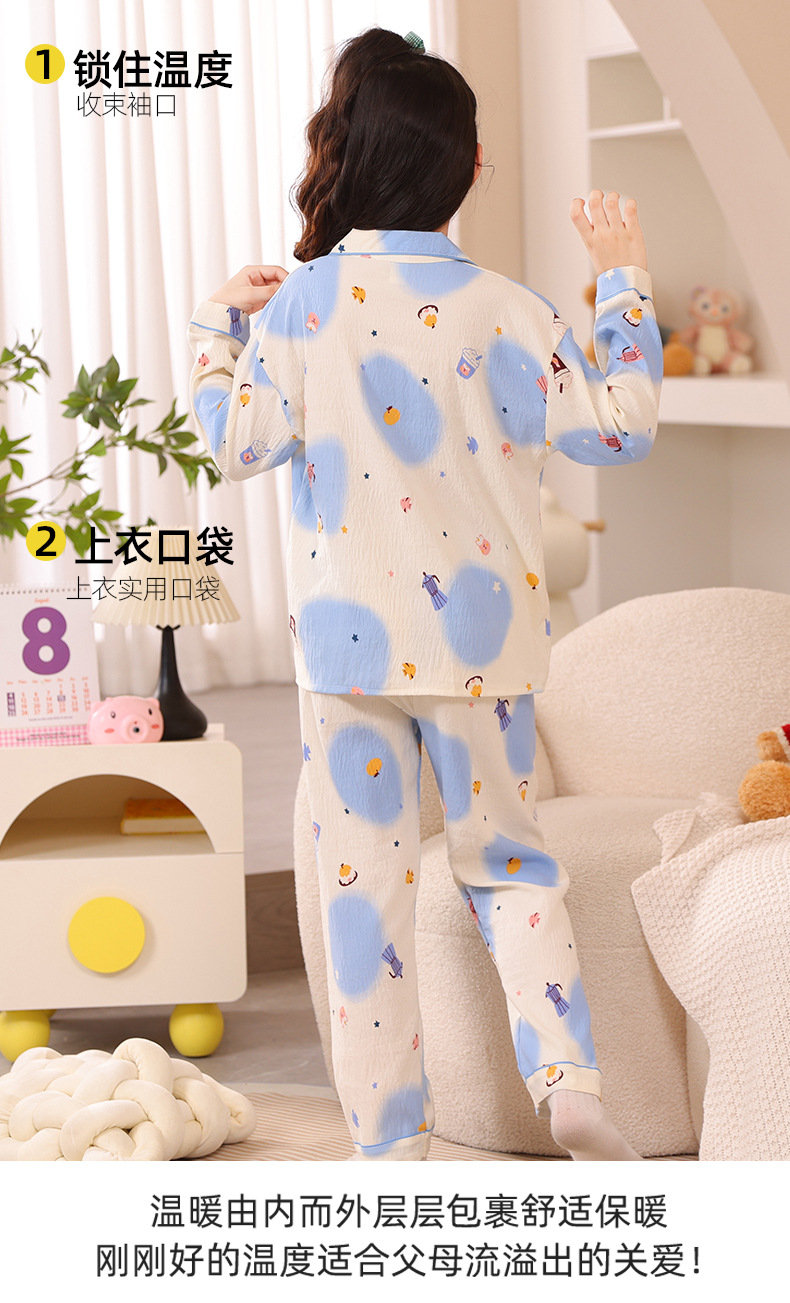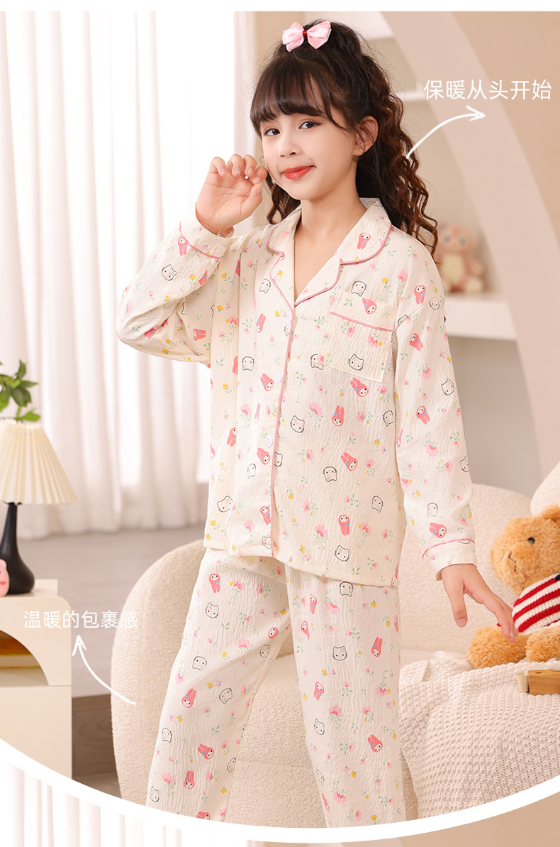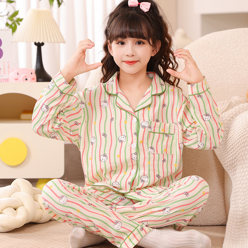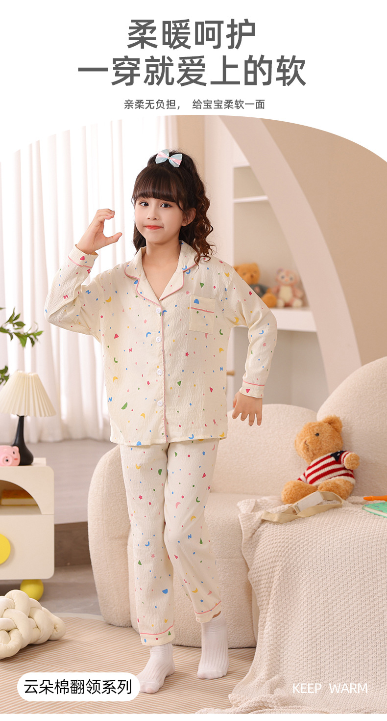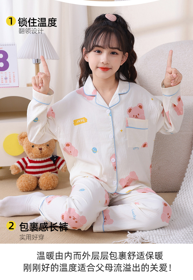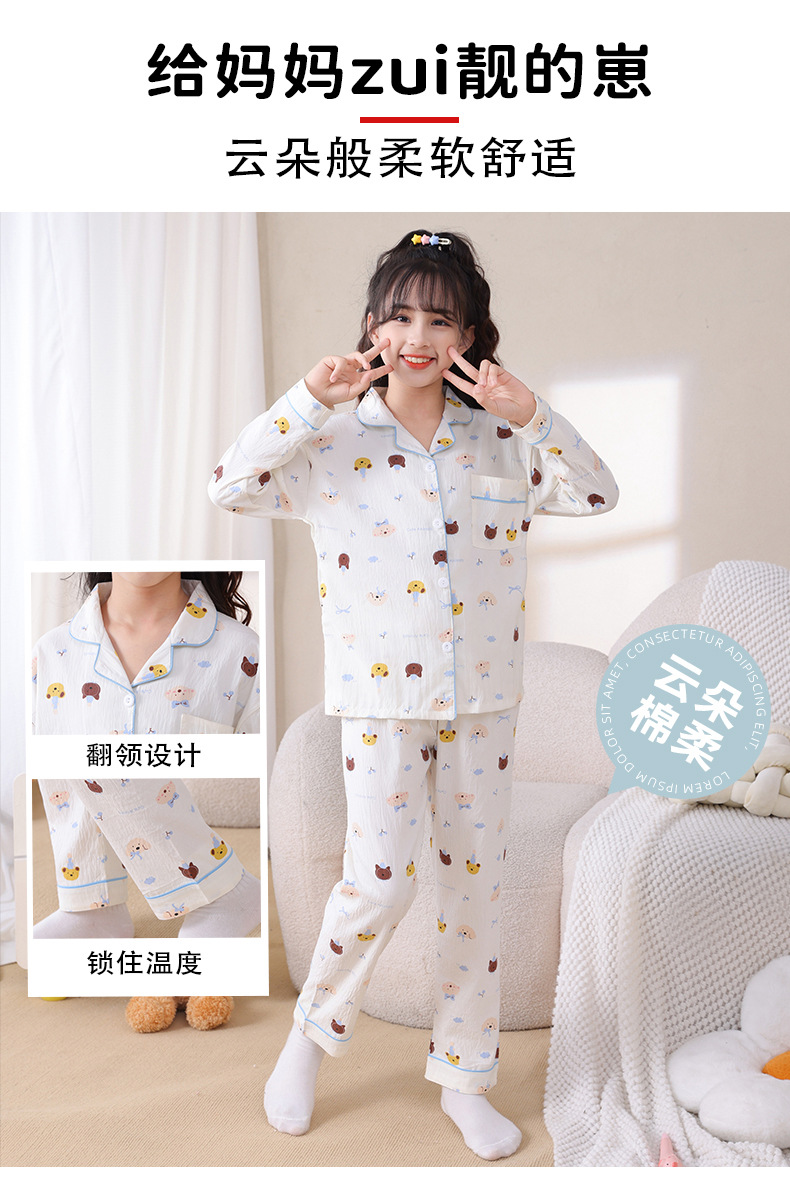어린이 잠옷 구름 면 긴 소매 카디건 봄과 가을 달콤한 귀여운 만화 인쇄 어린이 에어컨 방 옷