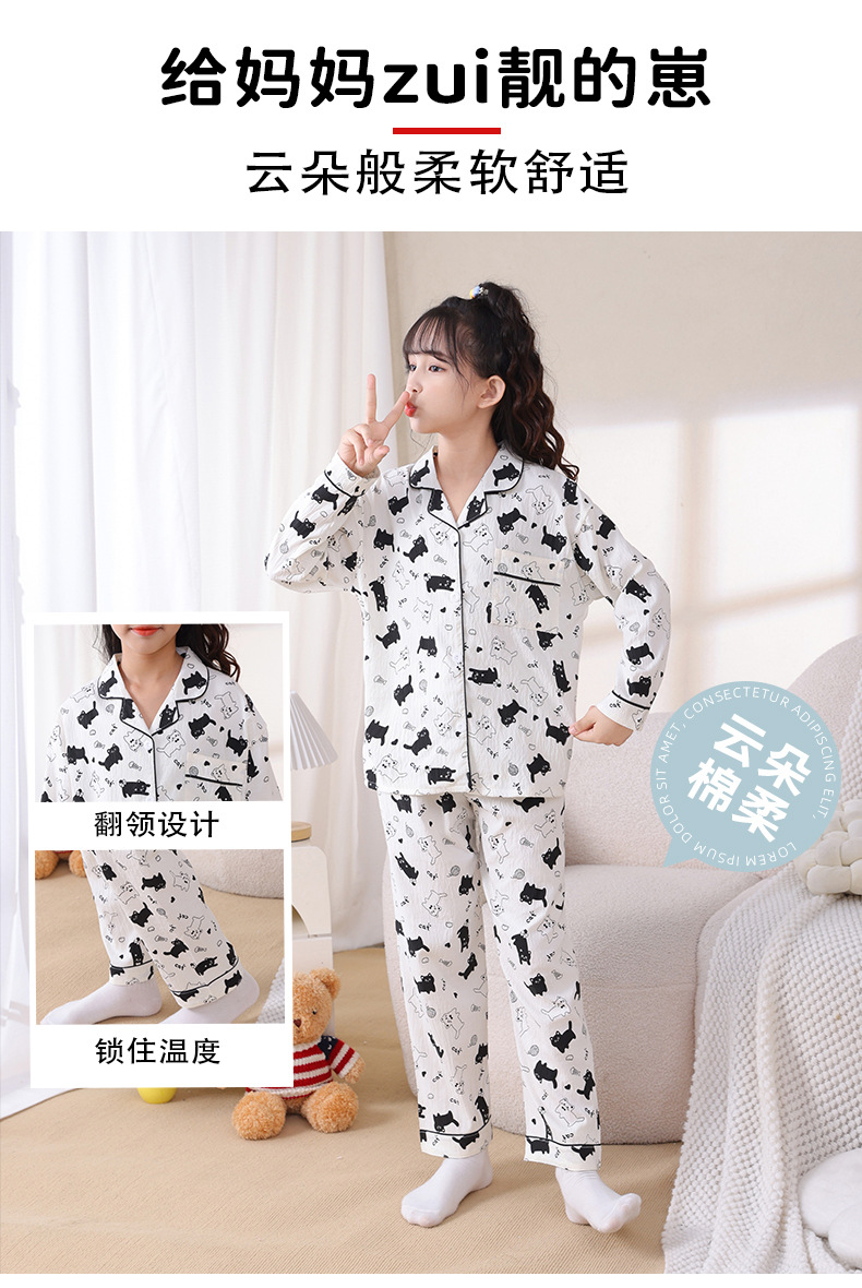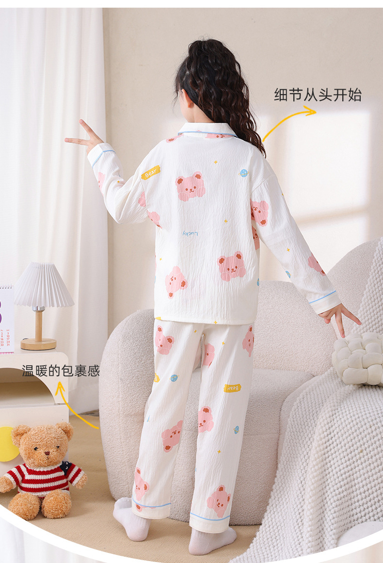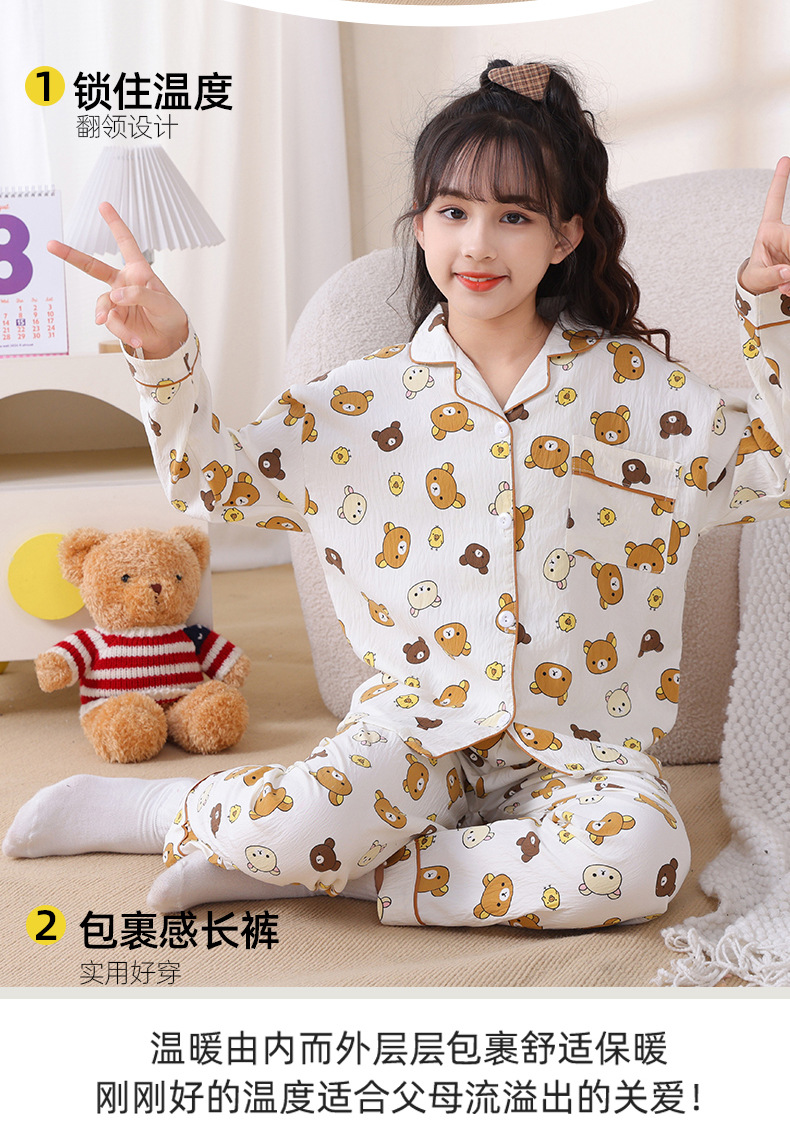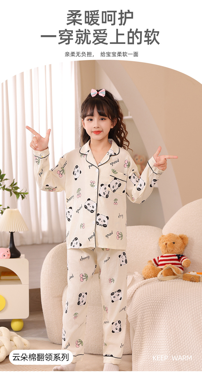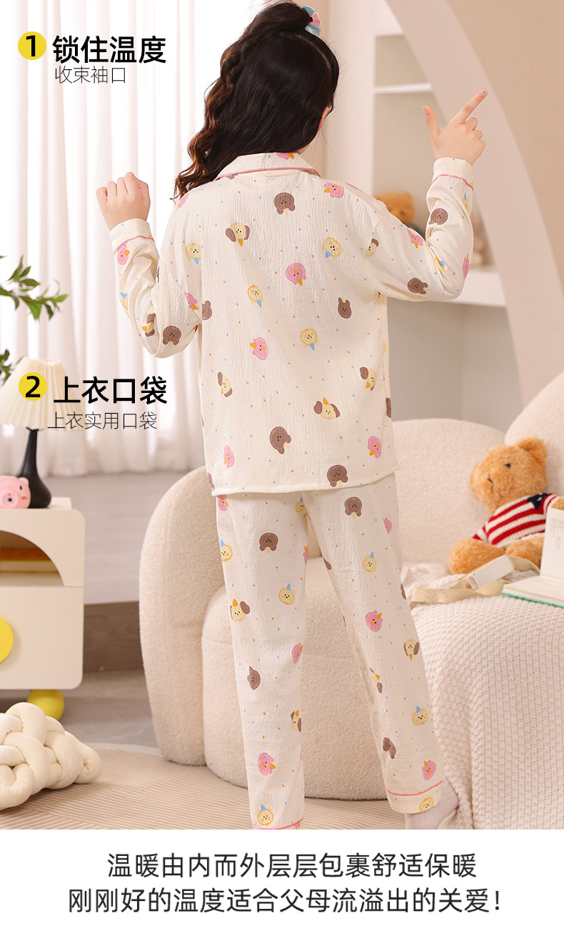 어린이 잠옷 구름 면 긴 소매 카디건 봄과 가을 달콤한 귀여운 만화 인쇄 어린이 에어컨 방 옷