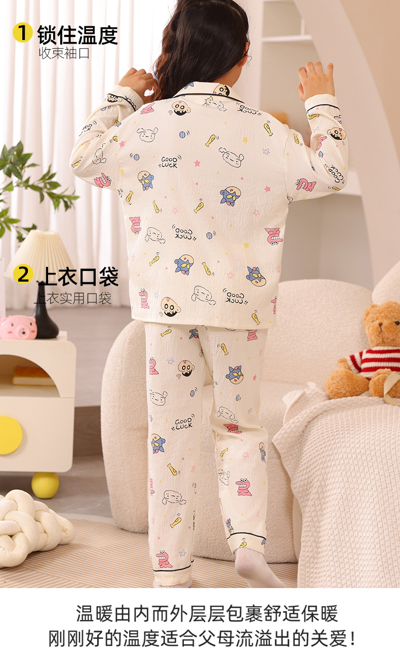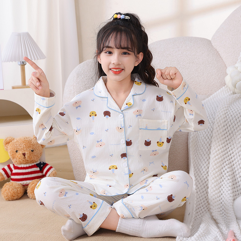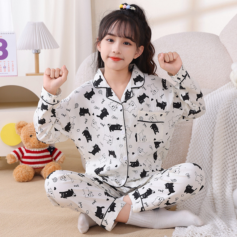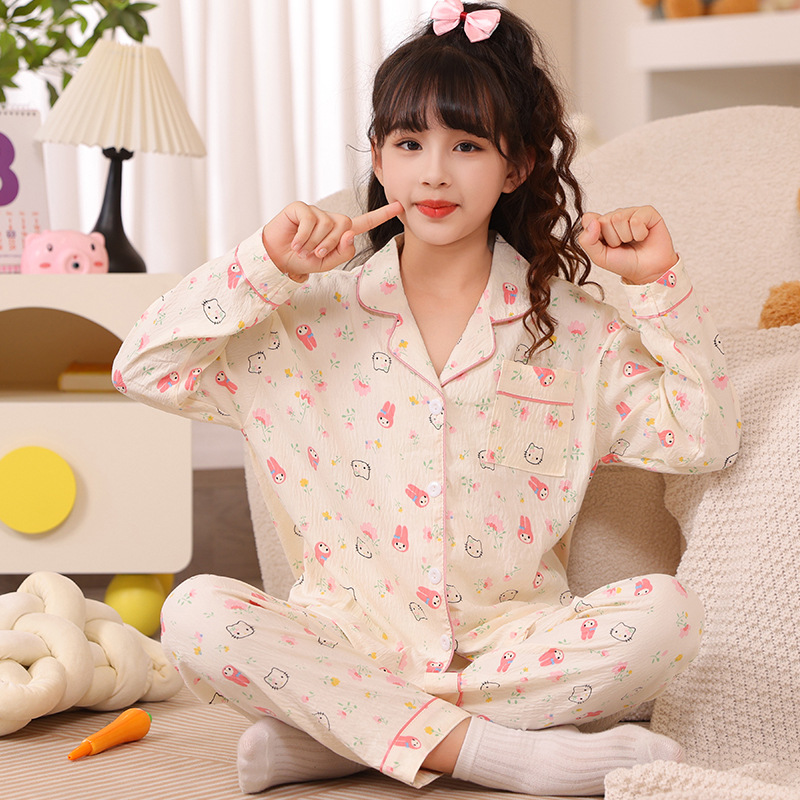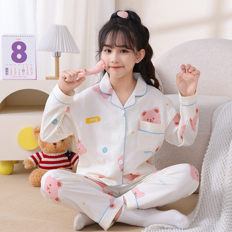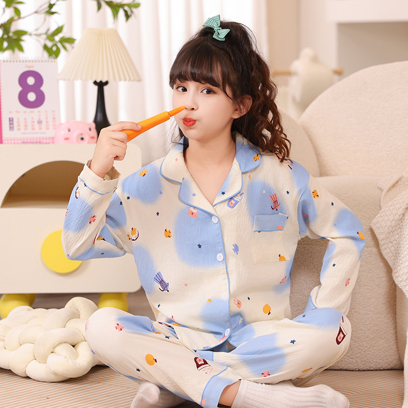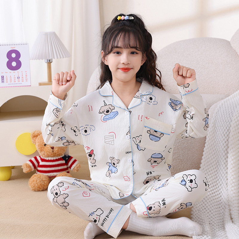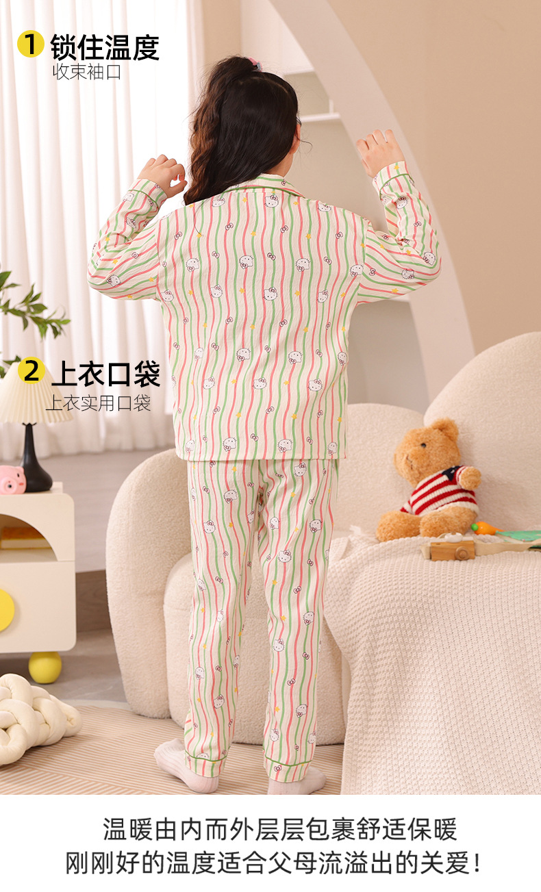 어린이 잠옷 구름 면 긴 소매 카디건 봄과 가을 달콤한 귀여운 만화 인쇄 어린이 에어컨 방 옷
