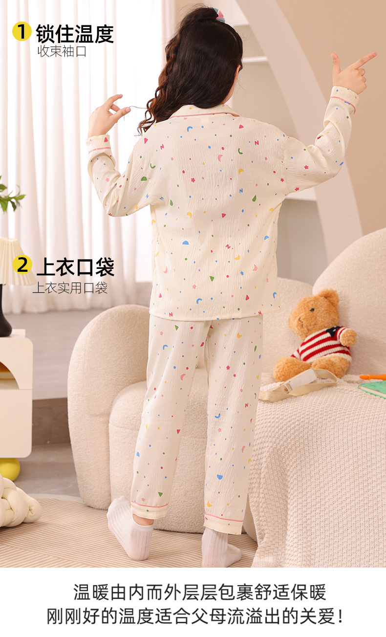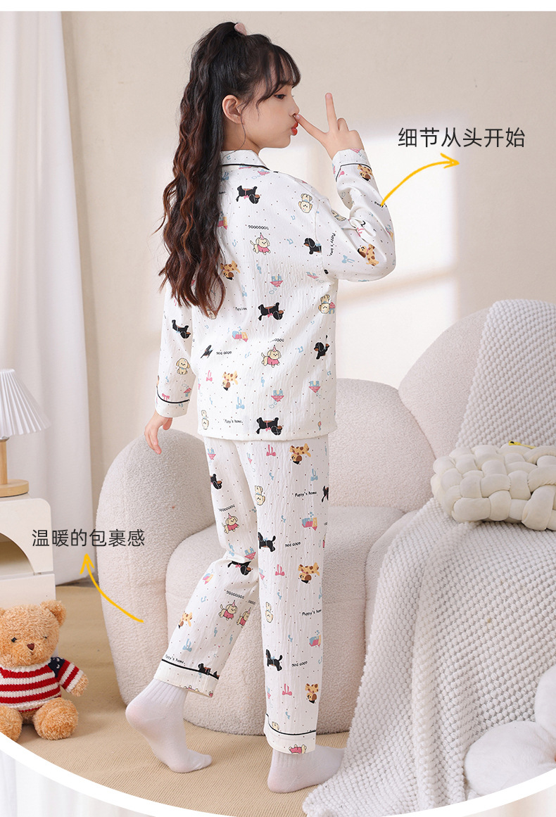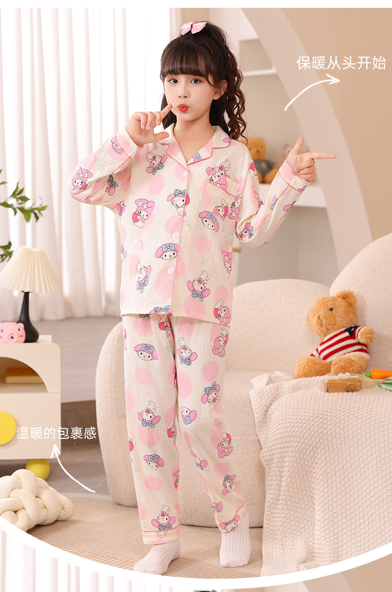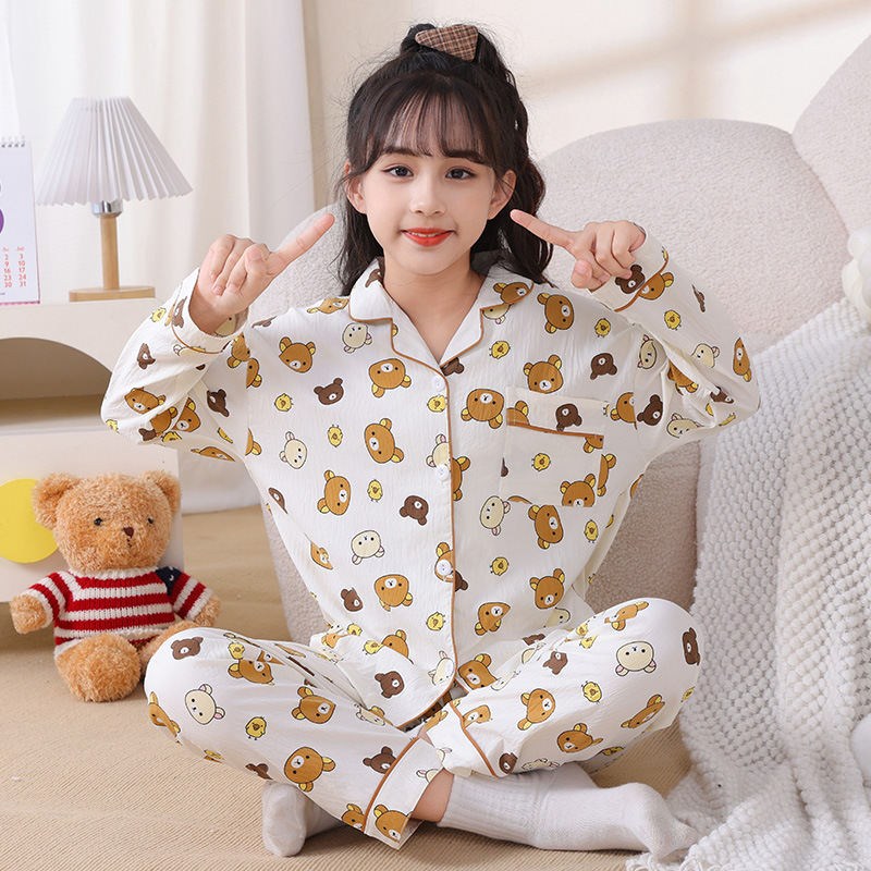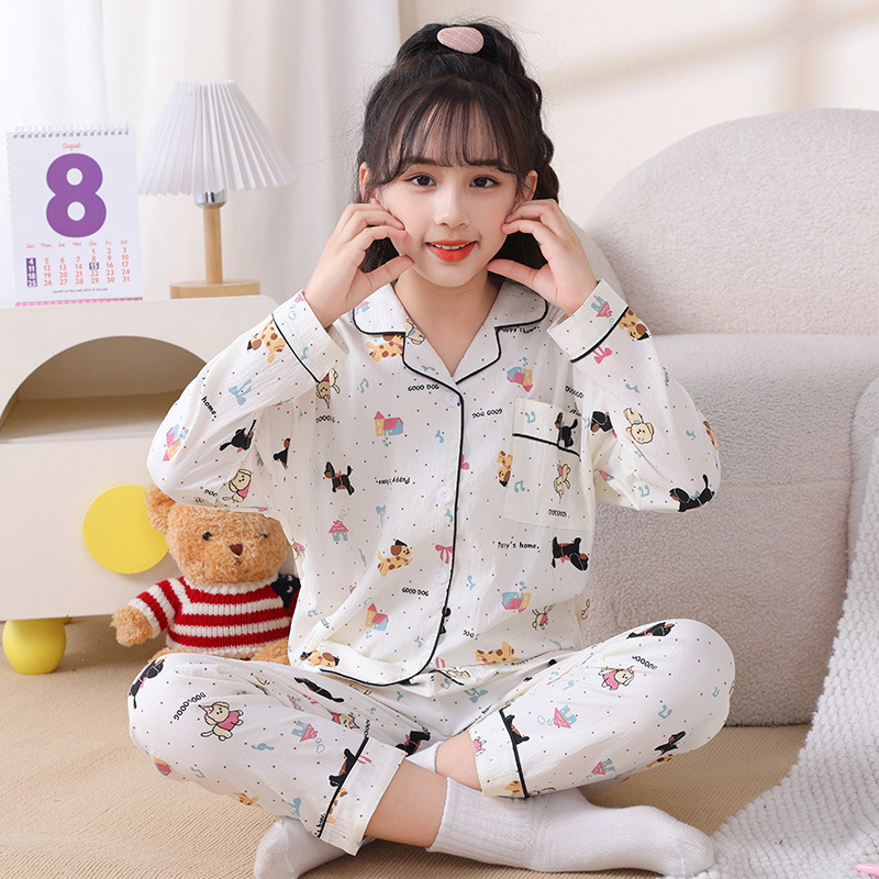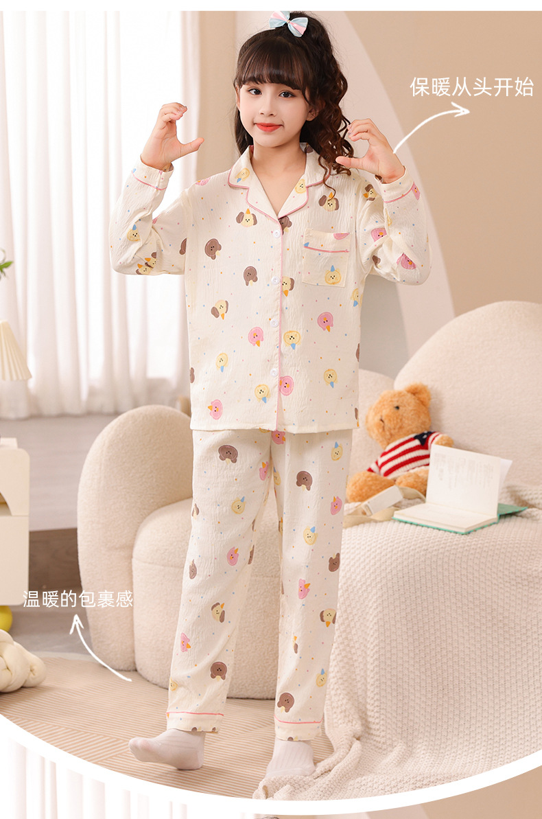 어린이 잠옷 구름 면 긴 소매 카디건 봄과 가을 달콤한 귀여운 만화 인쇄 어린이 에어컨 방 옷
