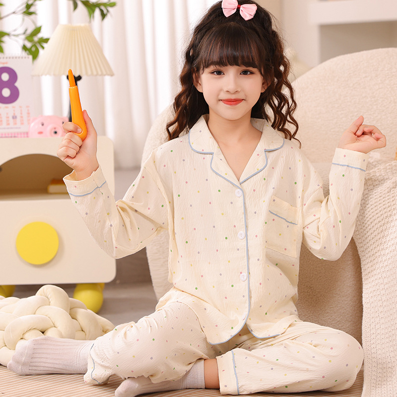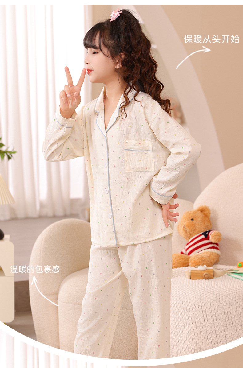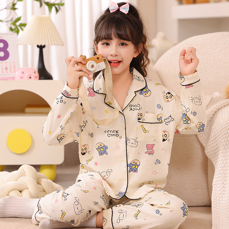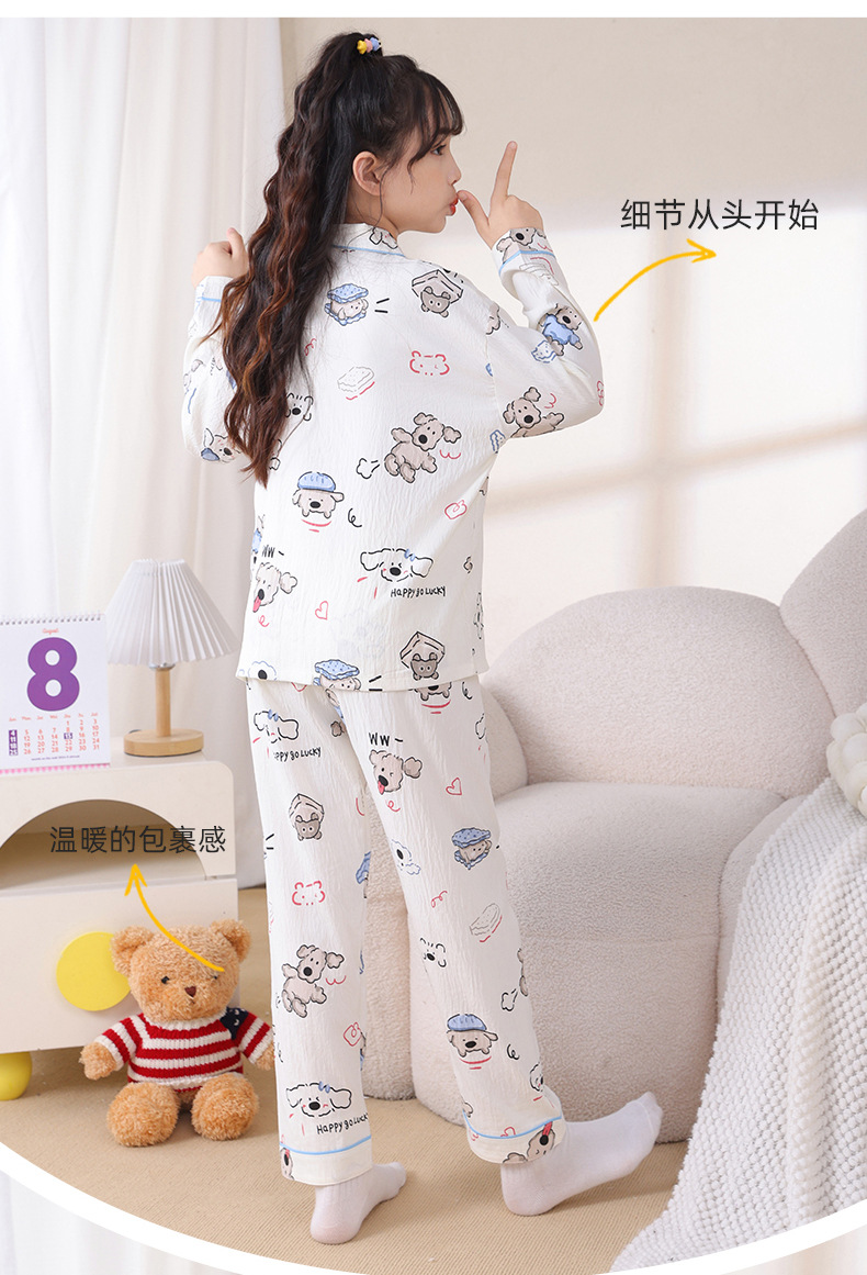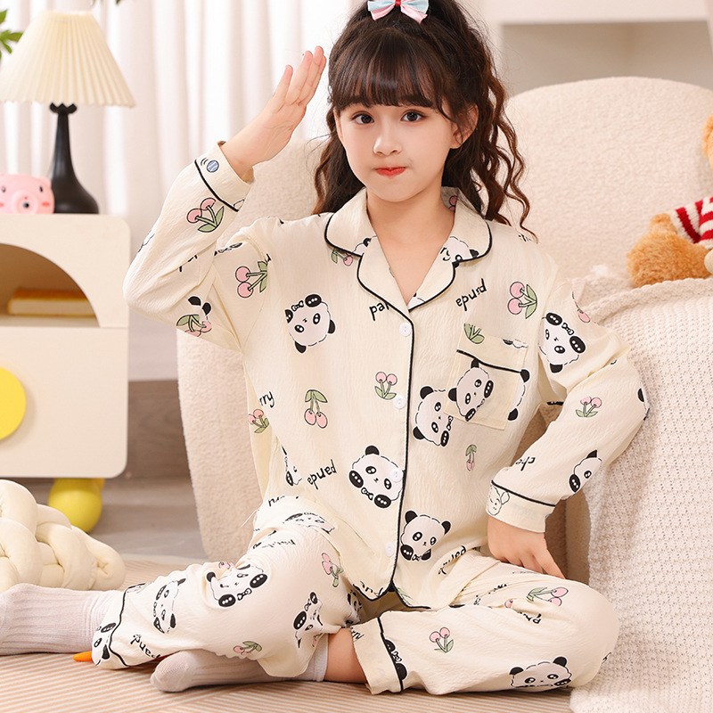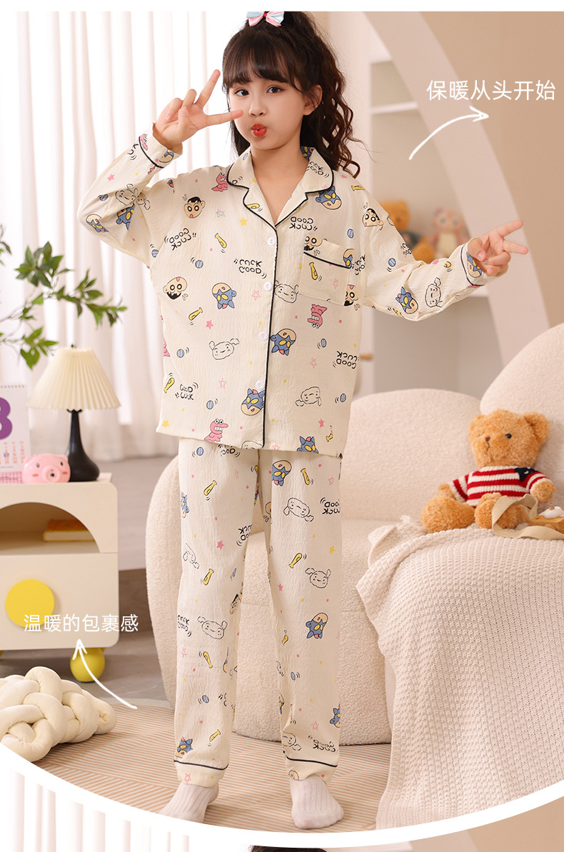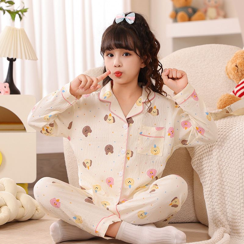 어린이 잠옷 구름 면 긴 소매 카디건 봄과 가을 달콤한 귀여운 만화 인쇄 어린이 에어컨 방 옷