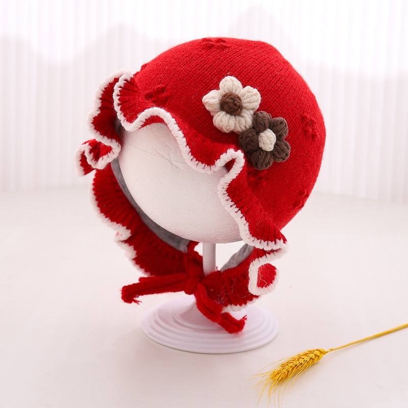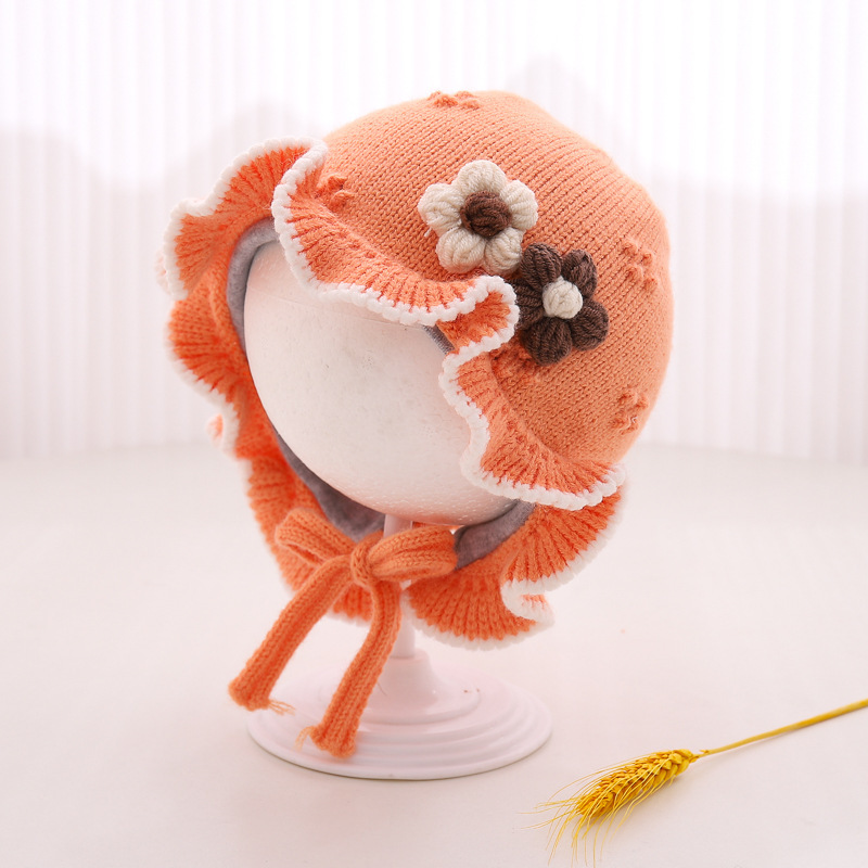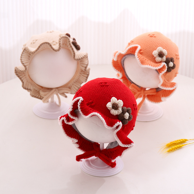풀오버 모자 여성 귀 보호자 공주 모자 따뜻한 소녀 귀여운 아기 모자 달콤한 가을과 겨울 아기 울 모자