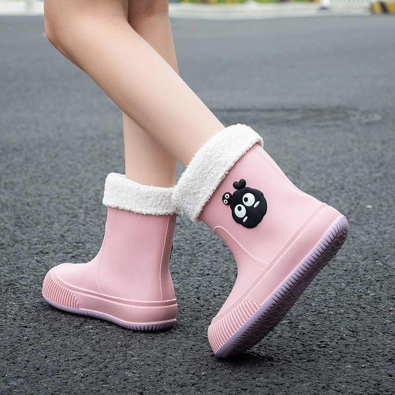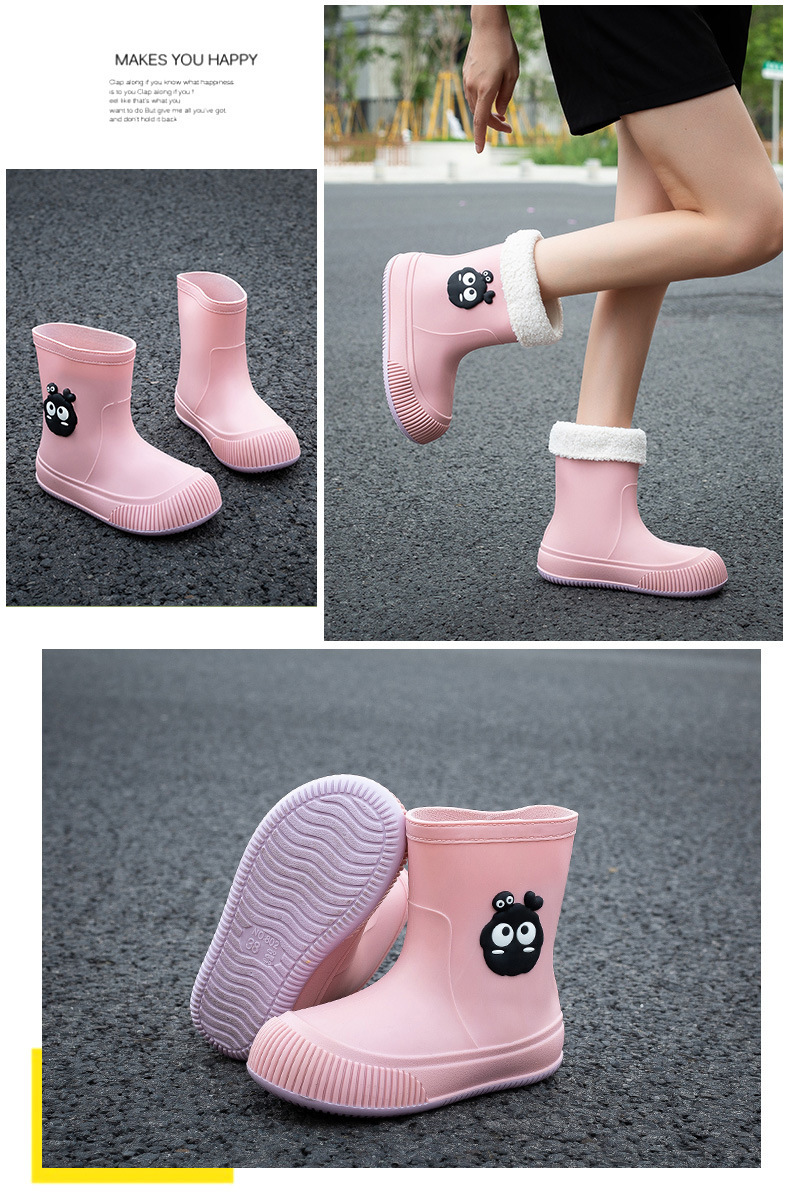 일본 스타일 석탄 공 비 신발 여성 유행 아웃웨어 저층 장화 작업 부드러운 바닥 고무 신발 귀여운 성인 물 신발 미끄럼 방지