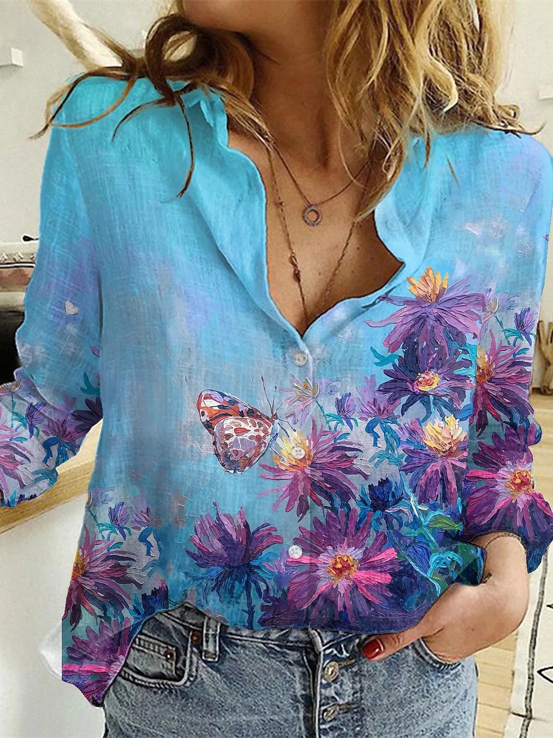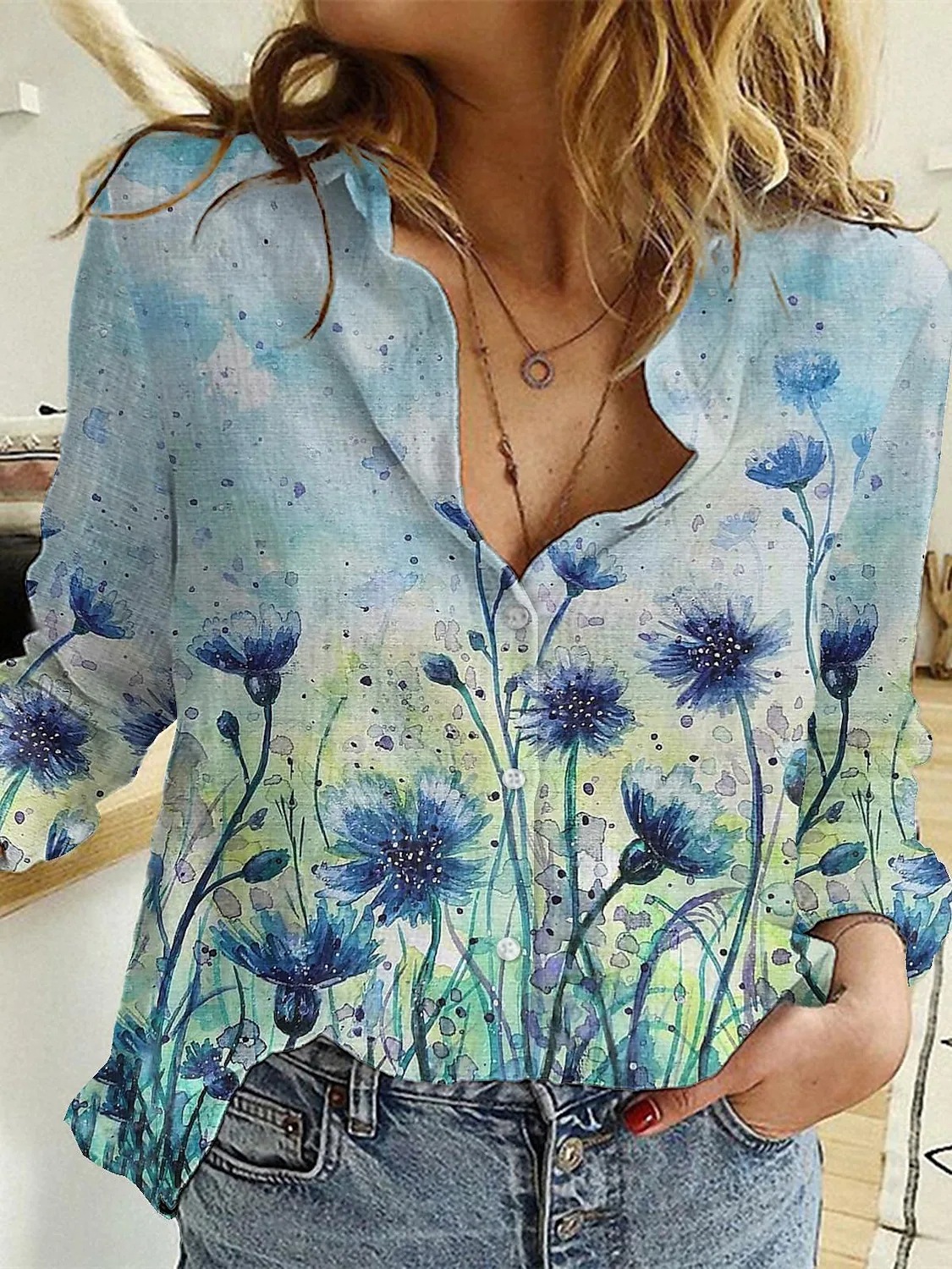 대외 무역 국경 2024 유럽과 미국 여자 카디건 3D 꽃 긴 소매 셔츠 여자의 하이 엔드 올 매치 탑 인쇄스토어 가기