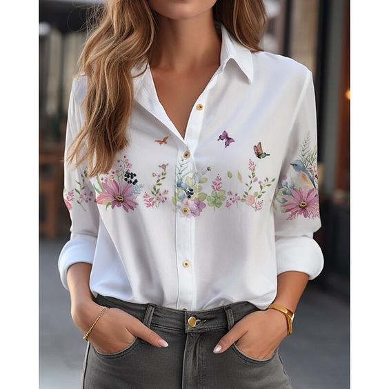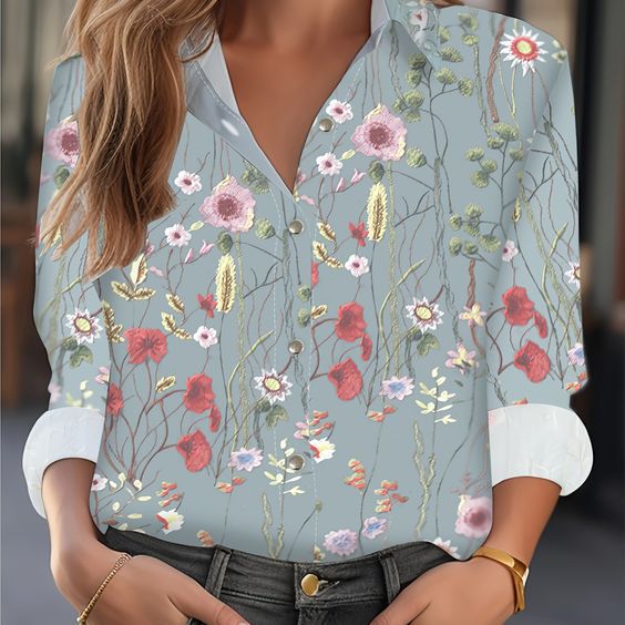 대외 무역 국경 2024 유럽과 미국 여자 카디건 3D 꽃 긴 소매 셔츠 여자의 하이 엔드 올 매치 탑 인쇄
