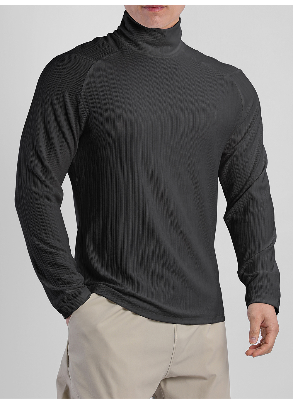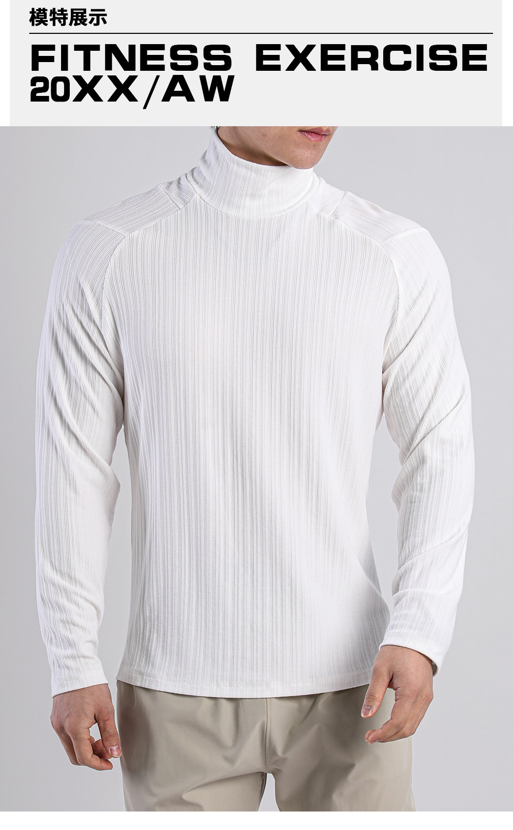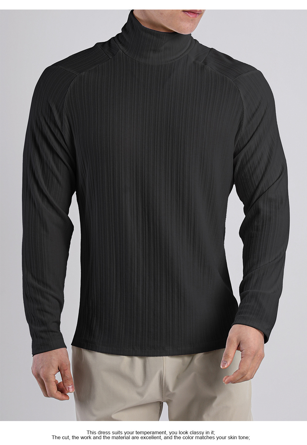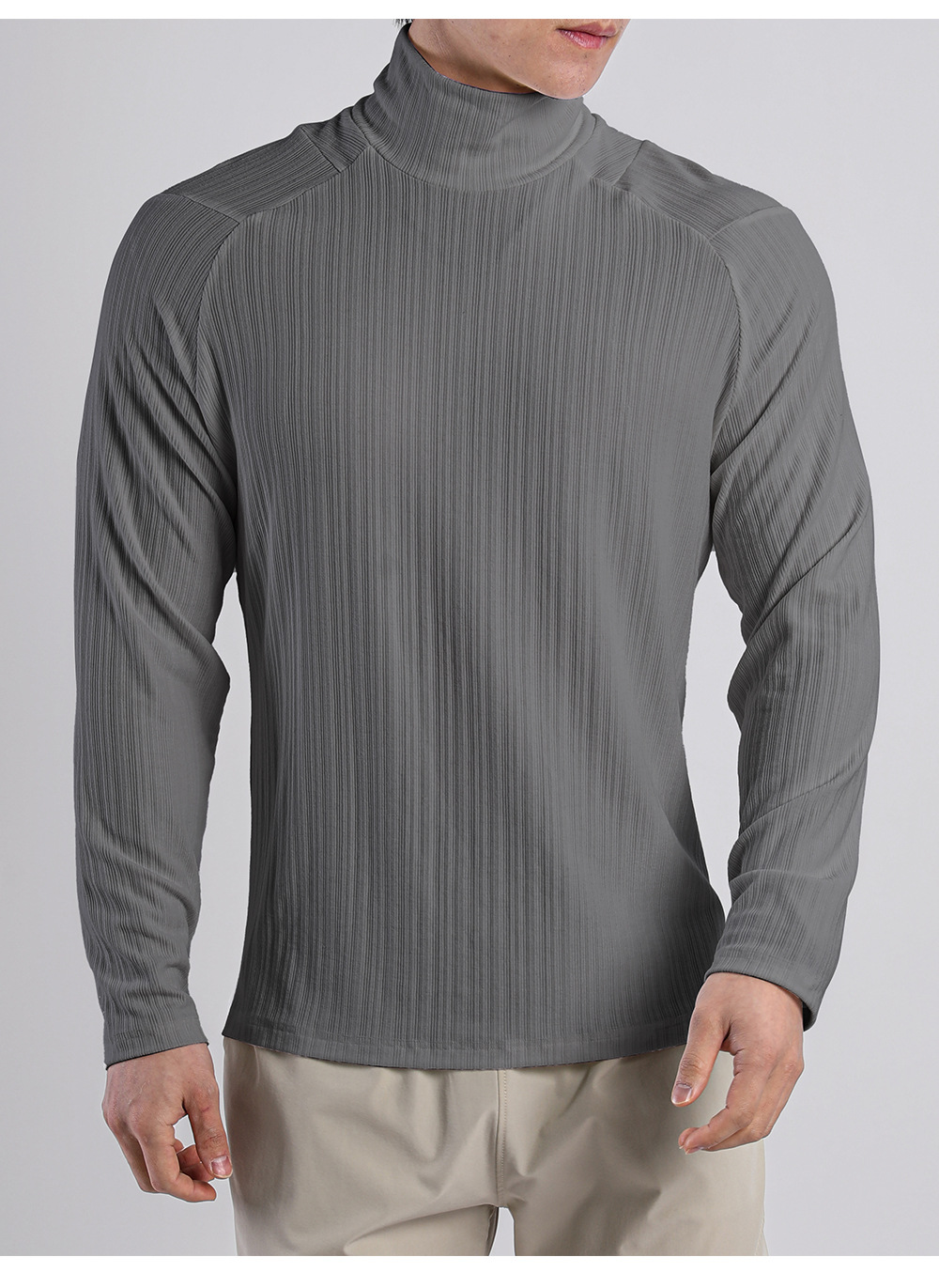 높은 칼라 티셔츠 주름 질감 느슨한 긴 소매 내베이스 셔츠 크로스 국경 최고 남자의 탄성 훈련 가을과 겨울