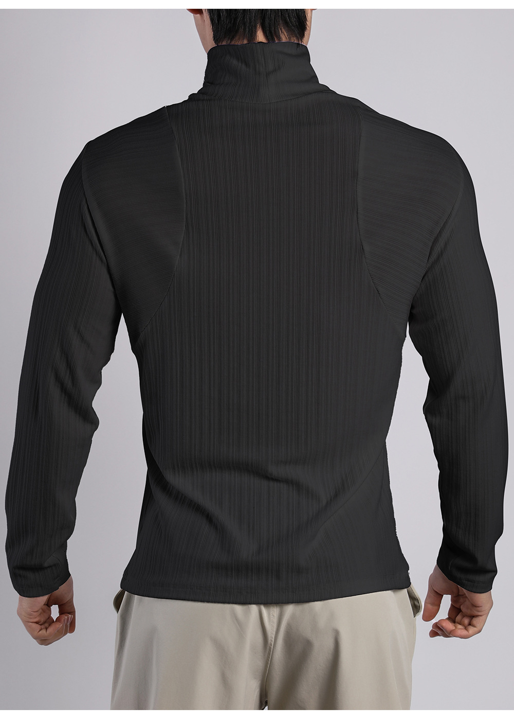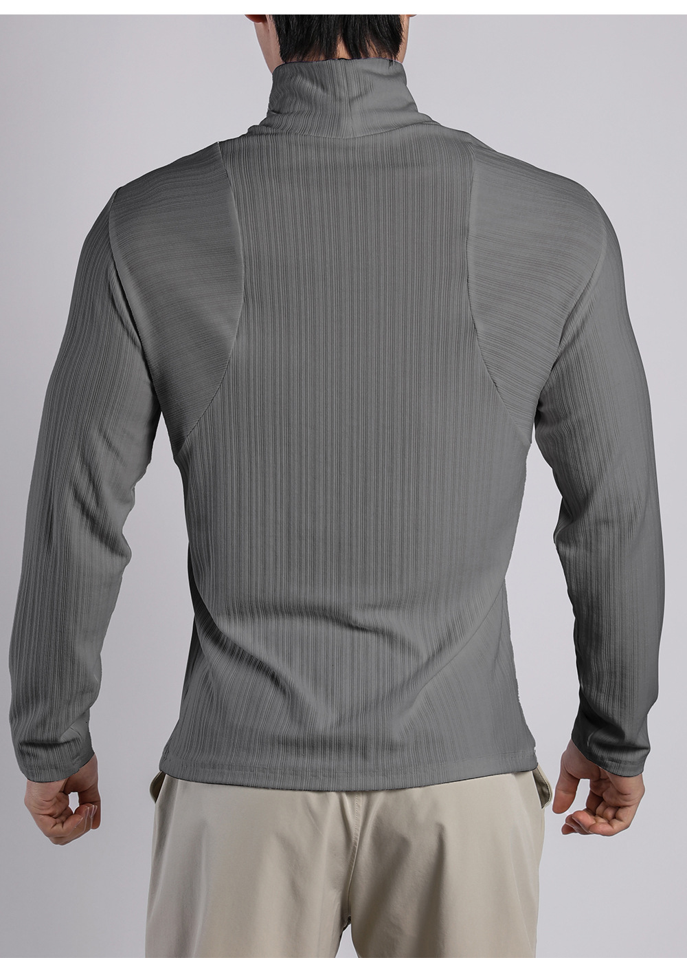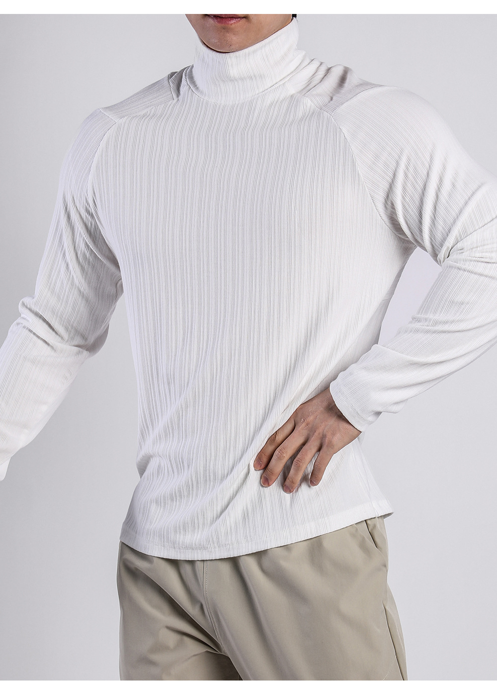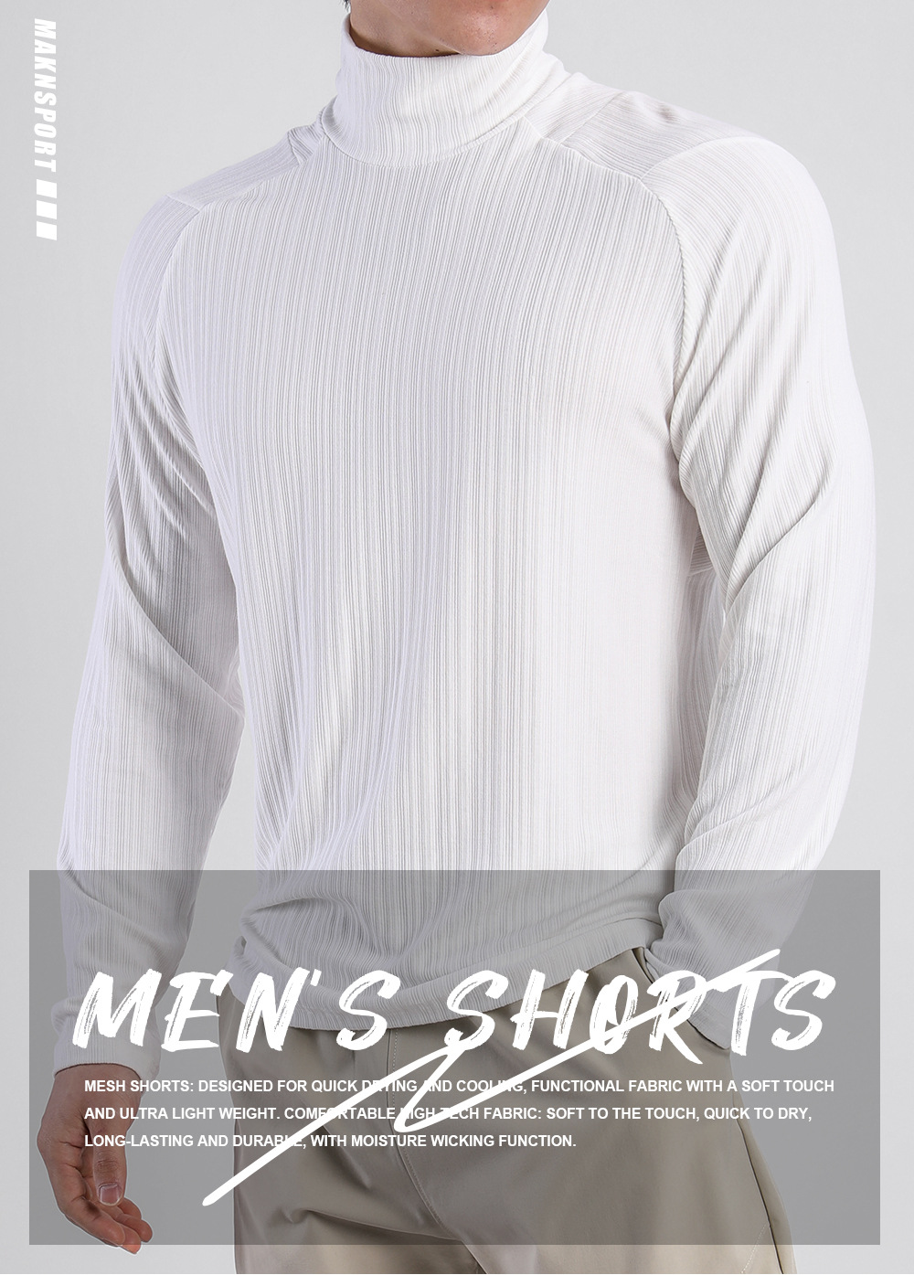 높은 칼라 티셔츠 주름 질감 느슨한 긴 소매 내베이스 셔츠 크로스 국경 최고 남자의 탄성 훈련 가을과 겨울