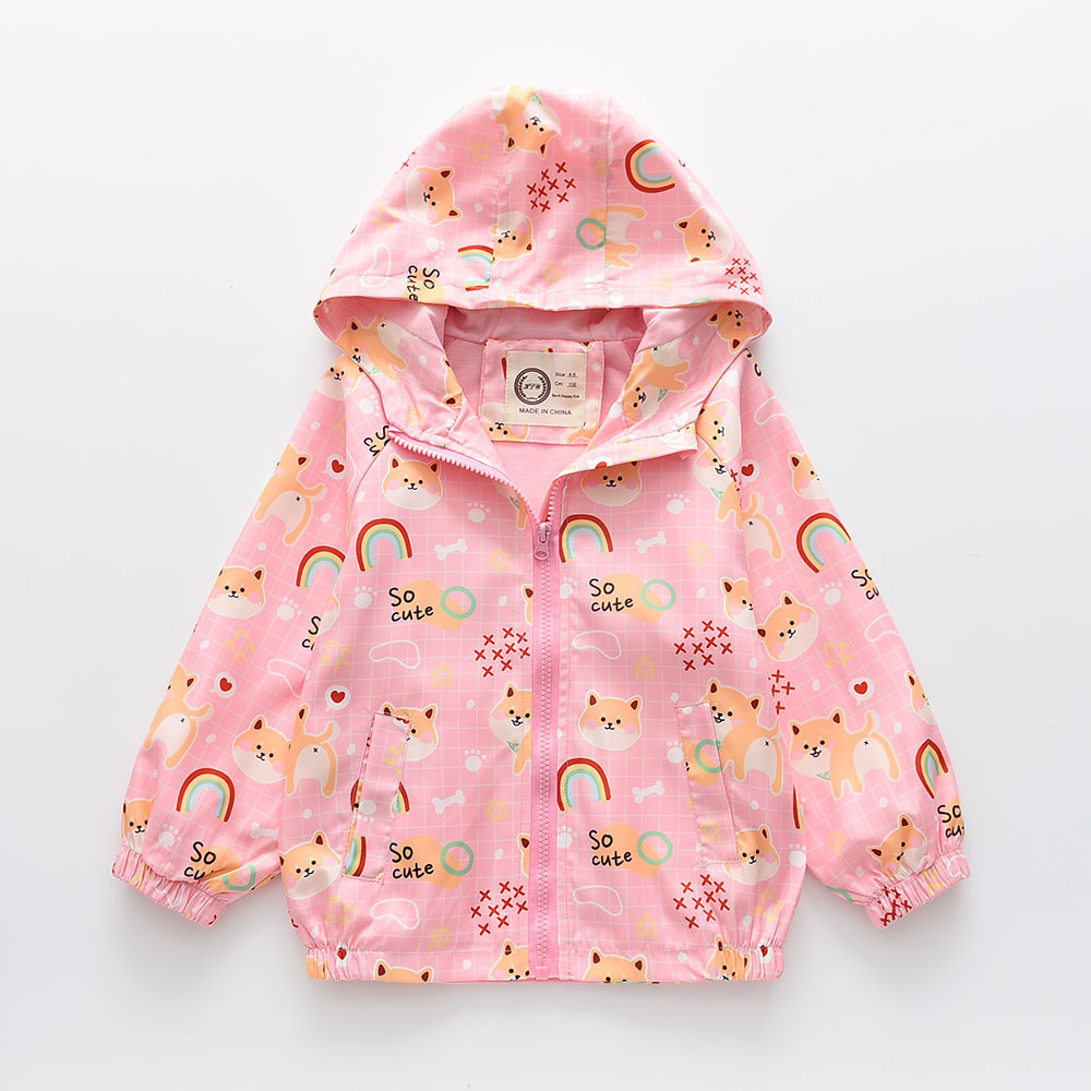 2025春季新款 卡通彩虹印花 女童连帽双层夹克防风外套