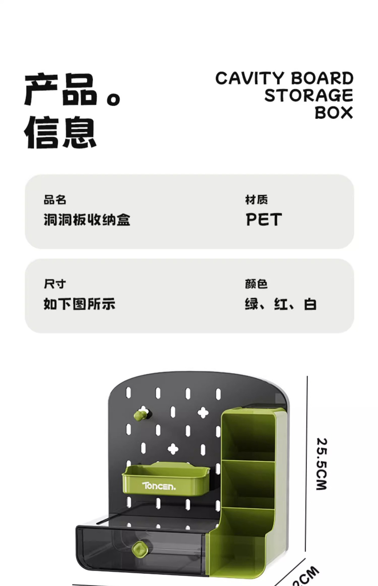 • 천공보드 수납박스-그린 [서랍/사선펜홀더]