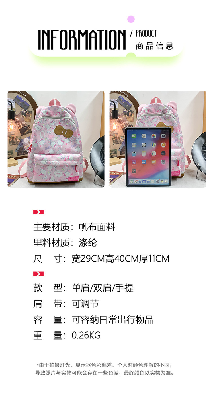 고교 고양이 활 대용량 배낭 KT 고색 귀여운 고양이 중학생 귀 스쿨백 백팩 여성